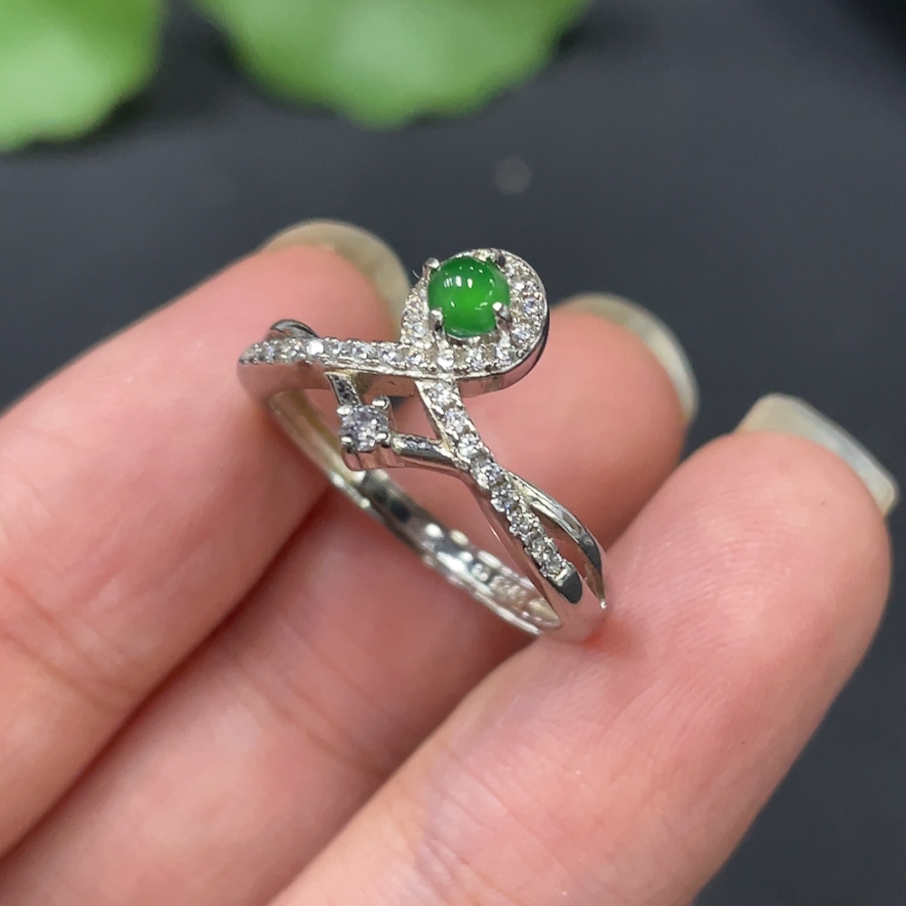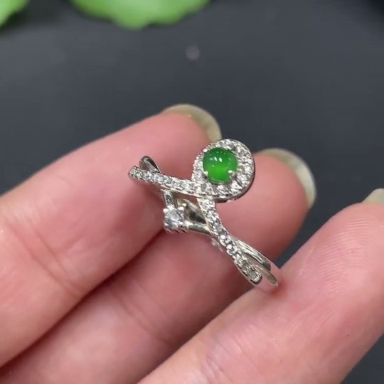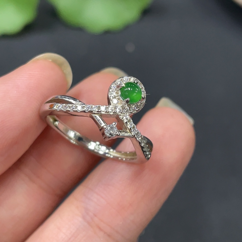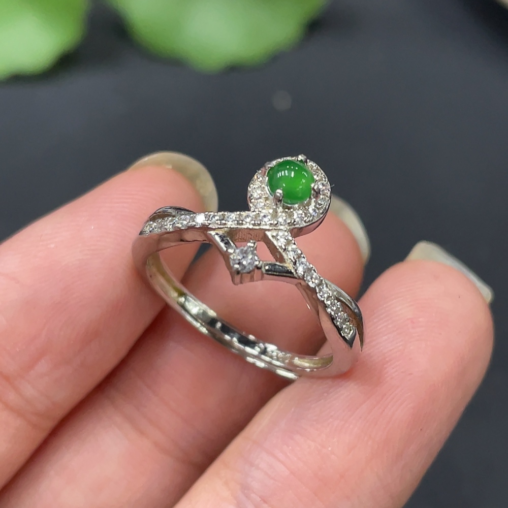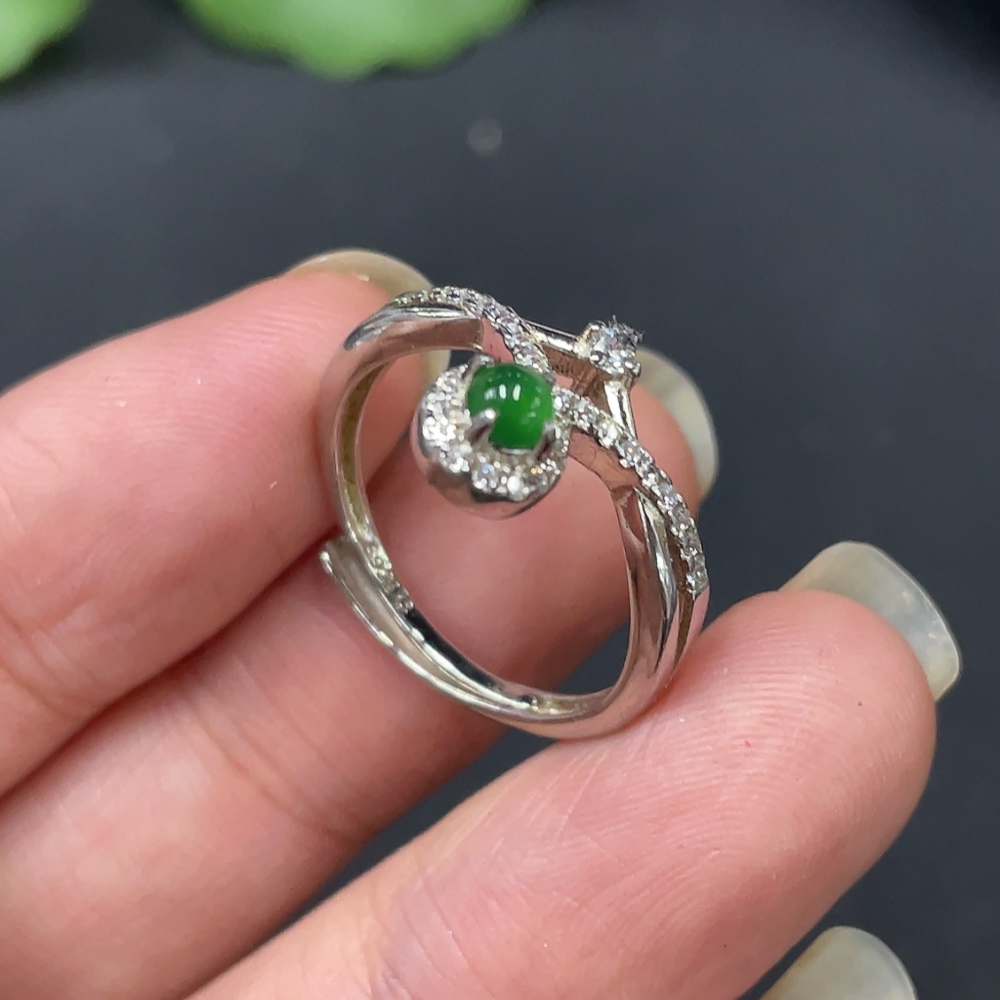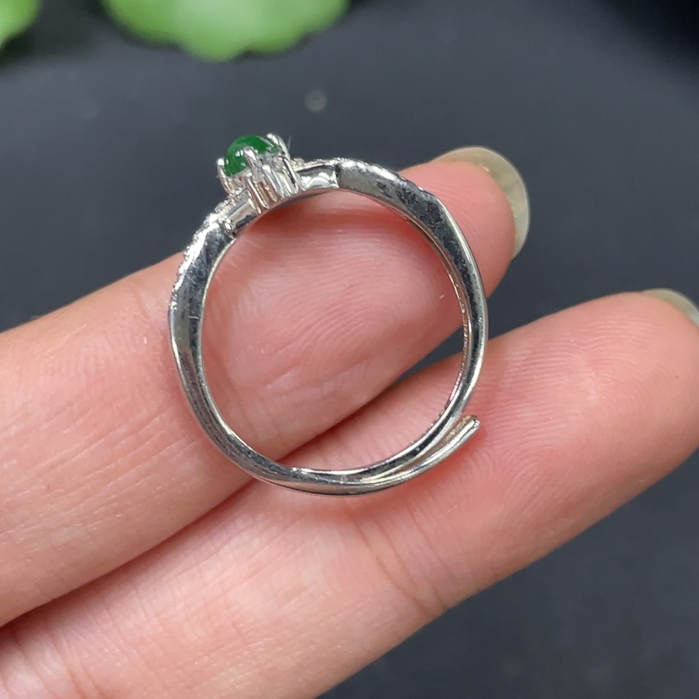 Jadeite Inlaid Ring, Non-Gold, Adjustable, Total Weight Approx. 2.01g