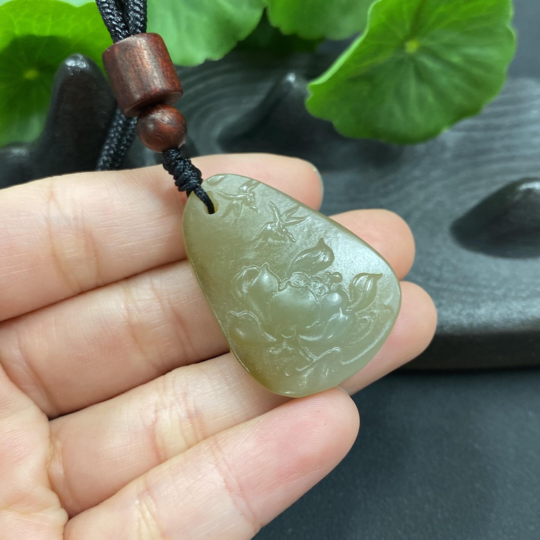 Hetian Jade Pendant - Lotus with Cracks - Total Weight 11.7g