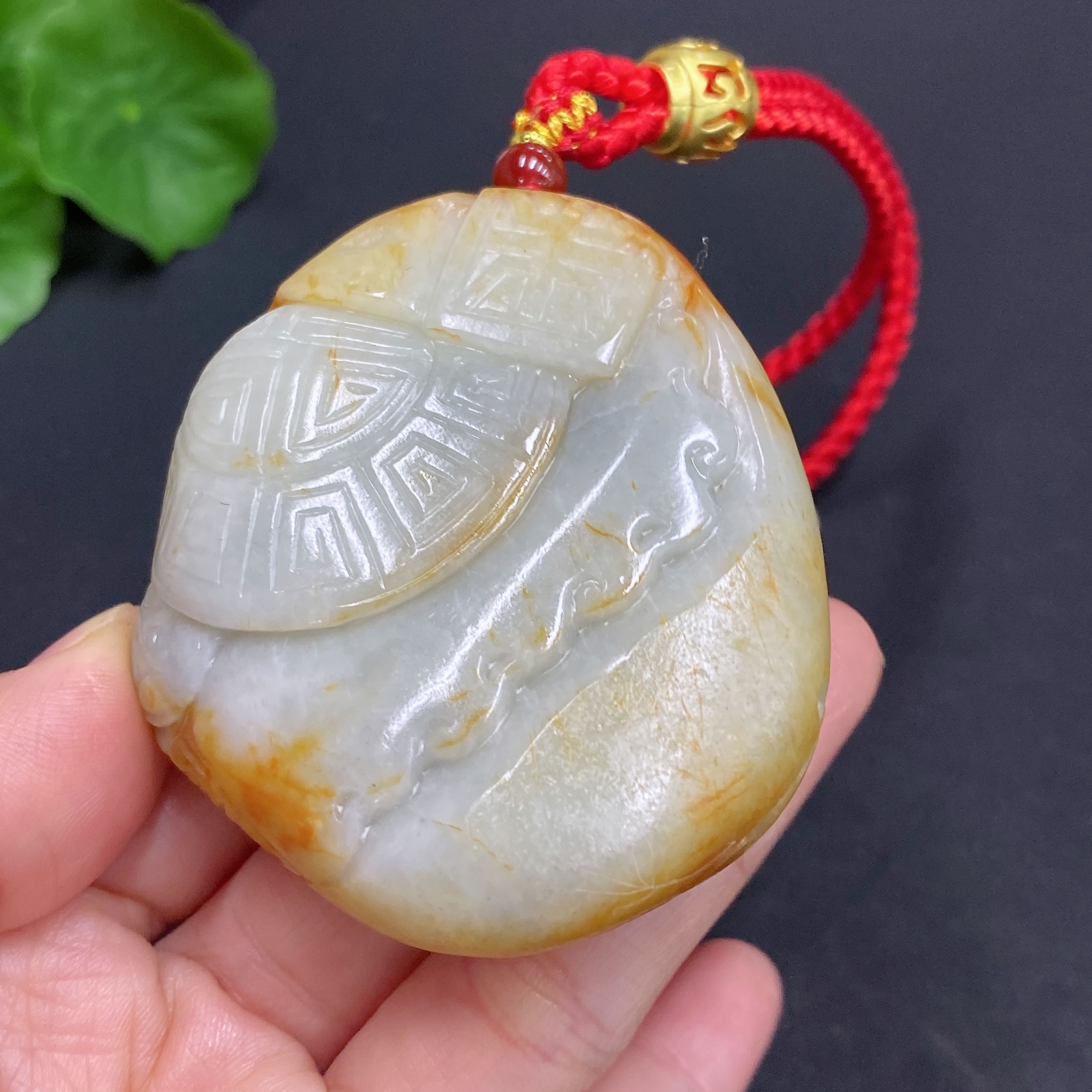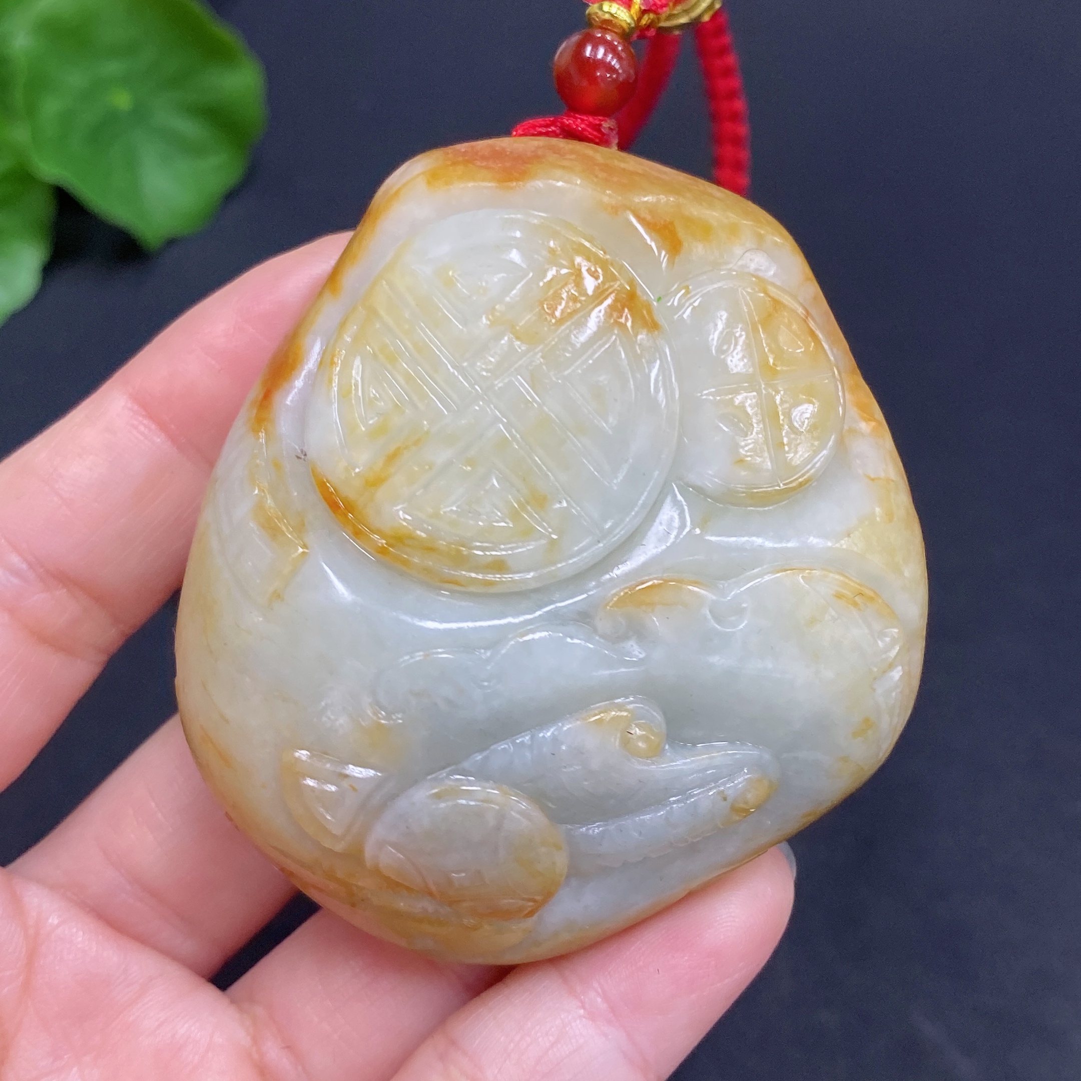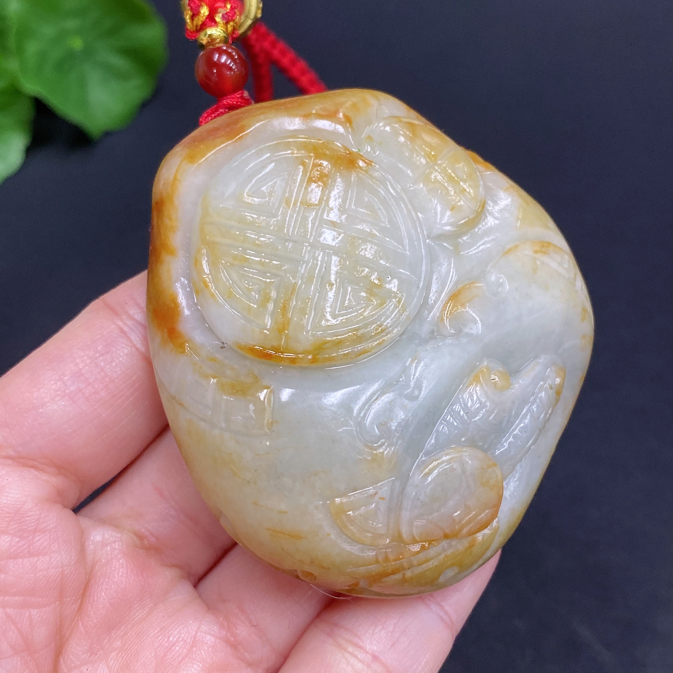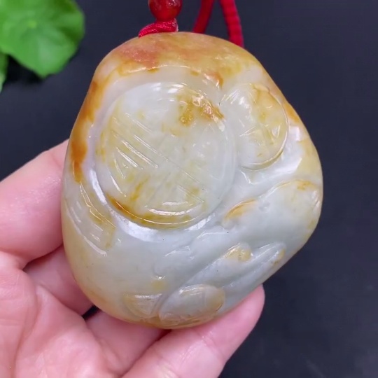 Hetian Jade Handheld Carving Antique-style Piece Total Weight Approx. (Including Cord) 124.2g Undetermined Skin Color Formation Containing Other Natural Mineral Components