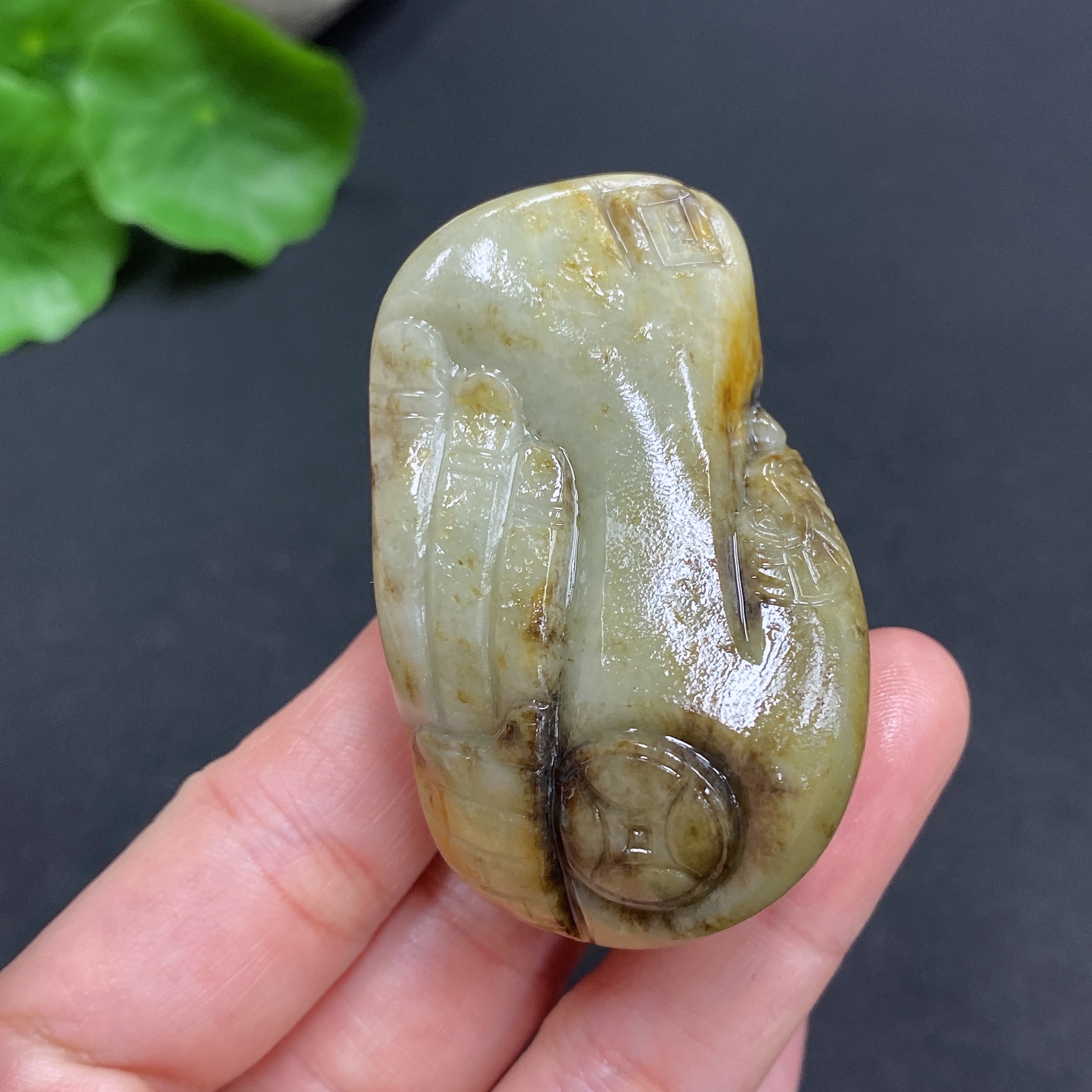 Hetian Jade Seed Material Pendant, Antique Style, Total Weight Approx. 71.3g, Undetermined Skin Color Origin, Contains Other Natural Mineral Components