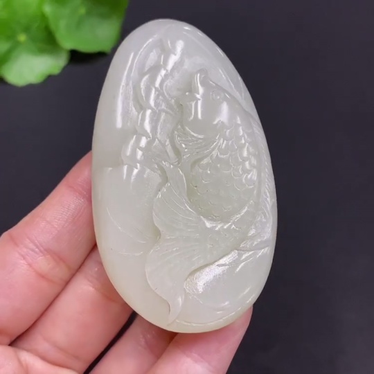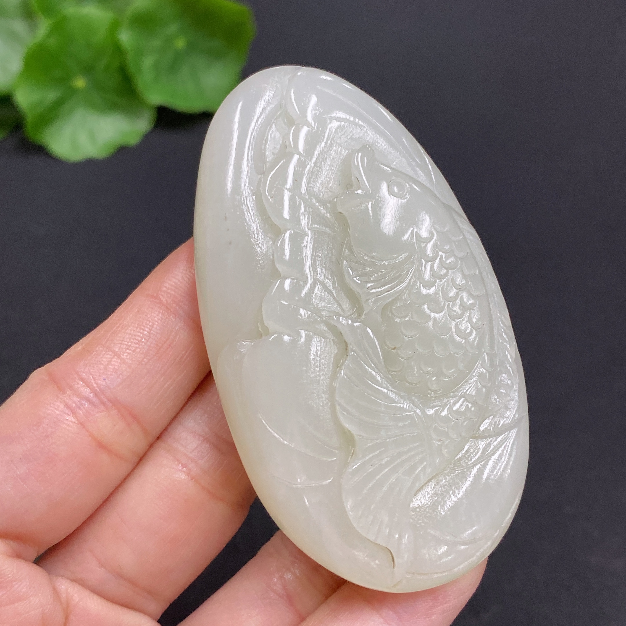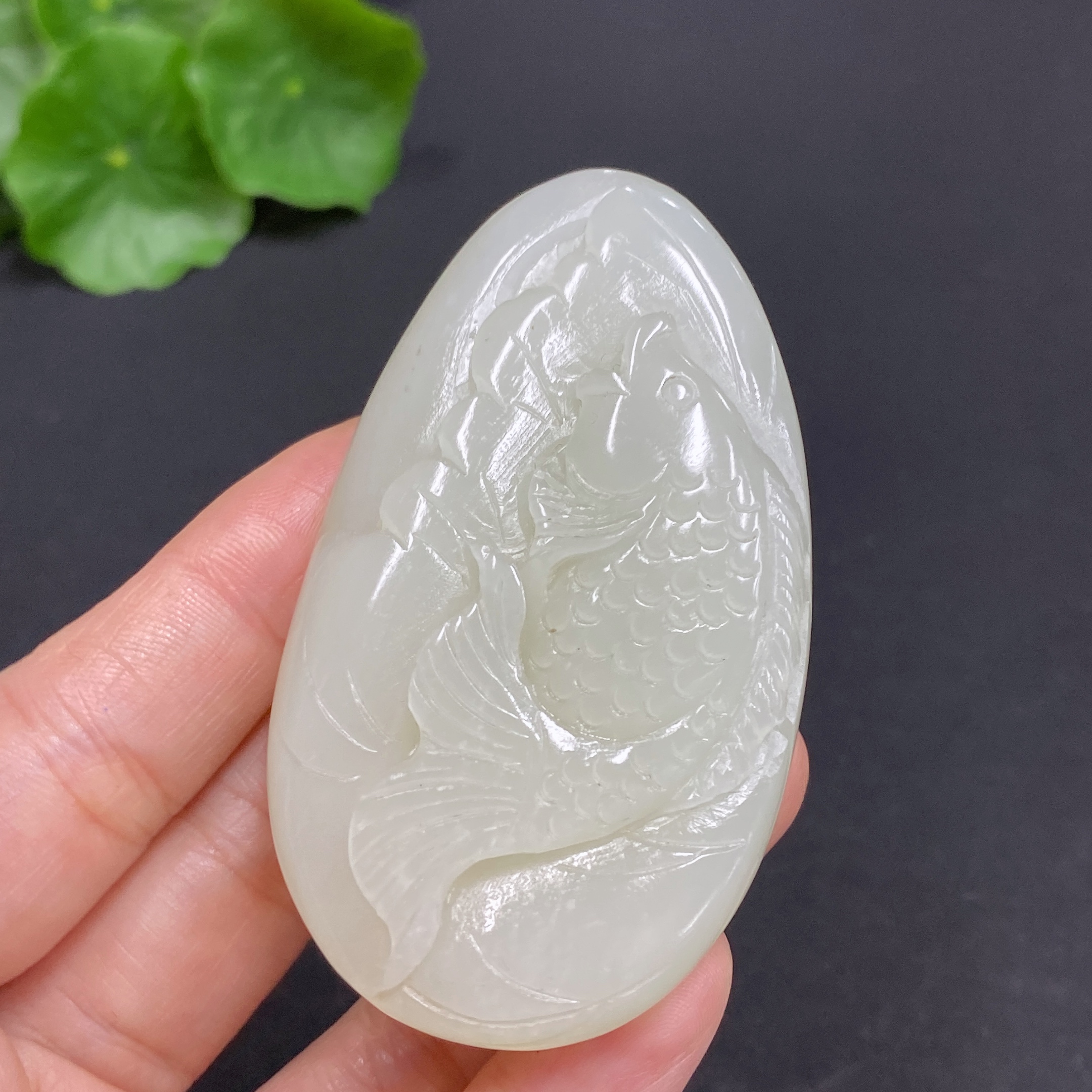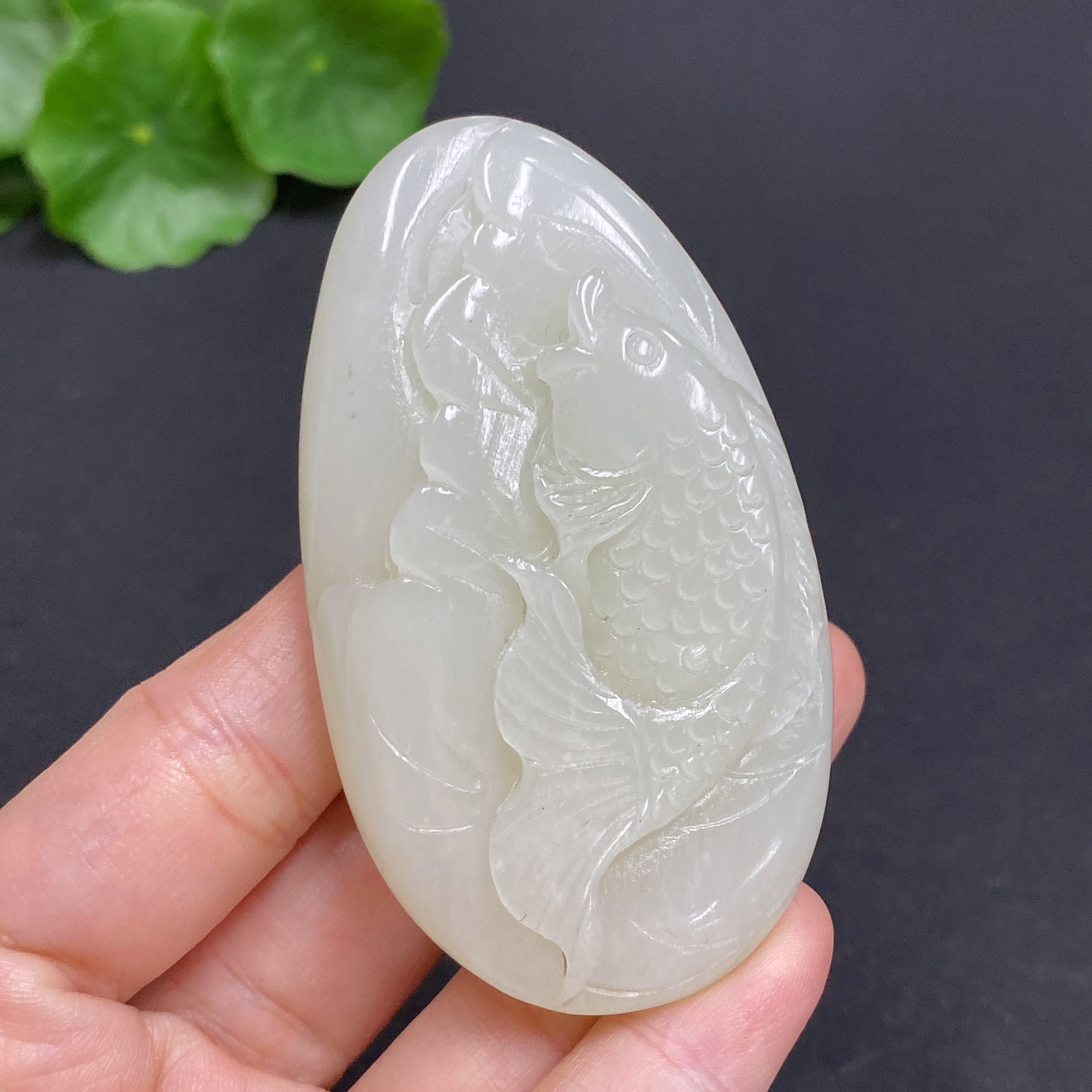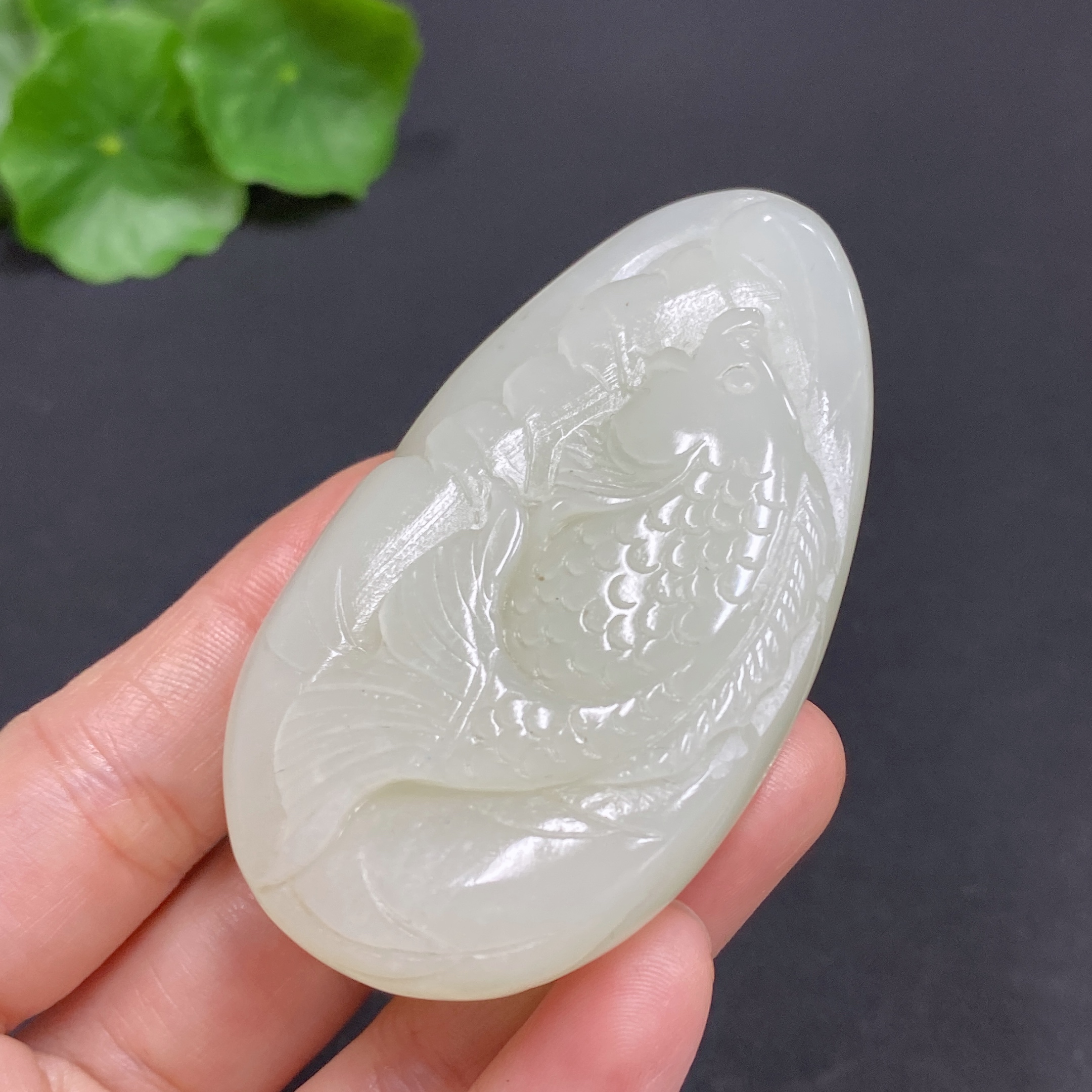 Hetian Jade Pendant - Lotus Leaf and Fish - Total Weight Approx. 78.4g