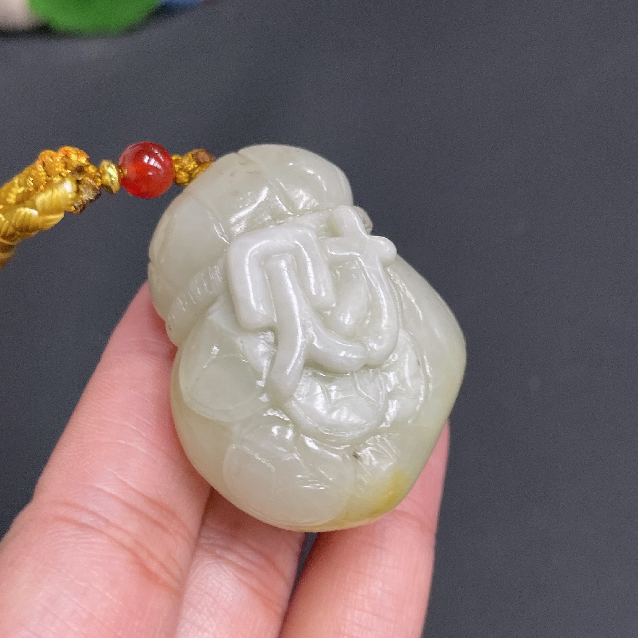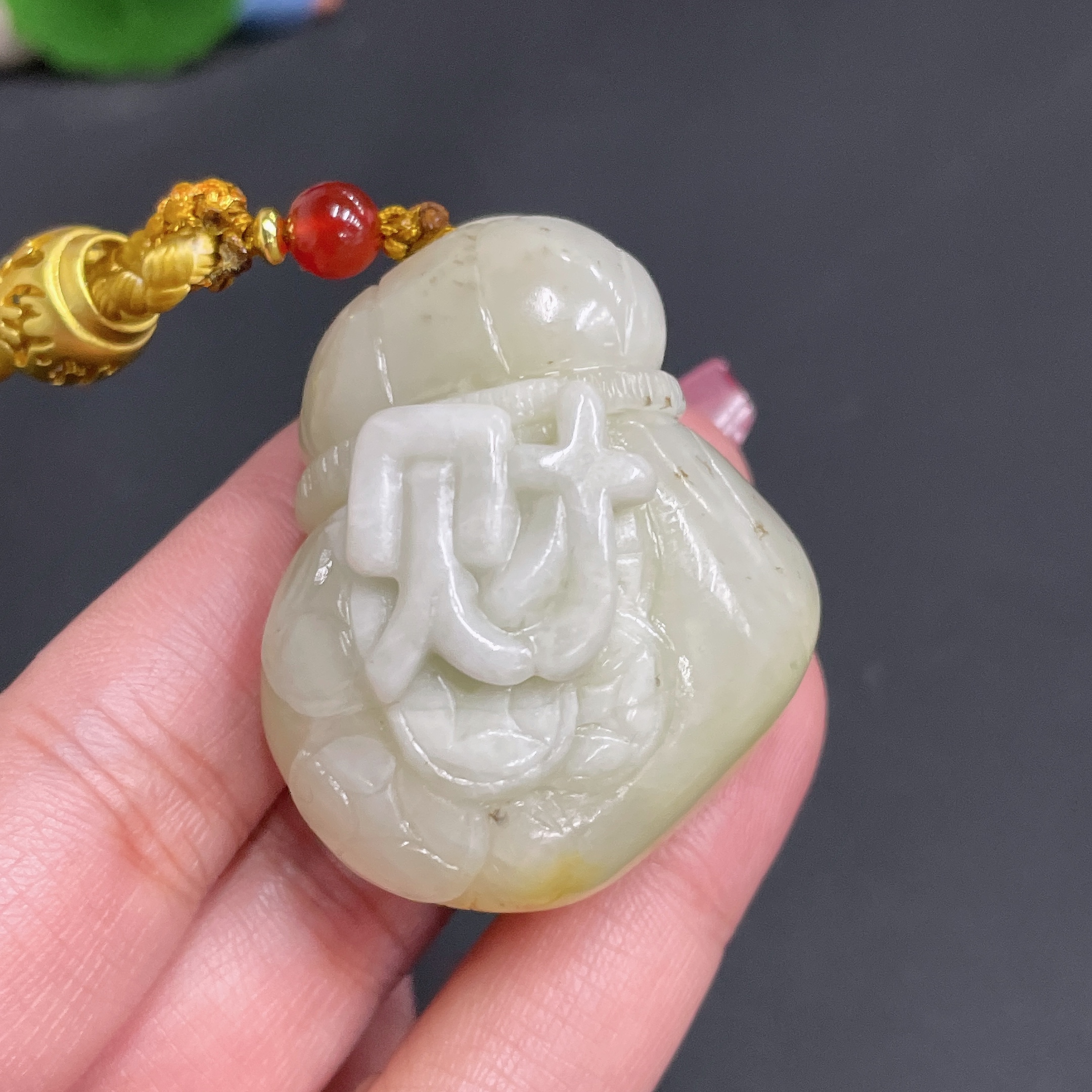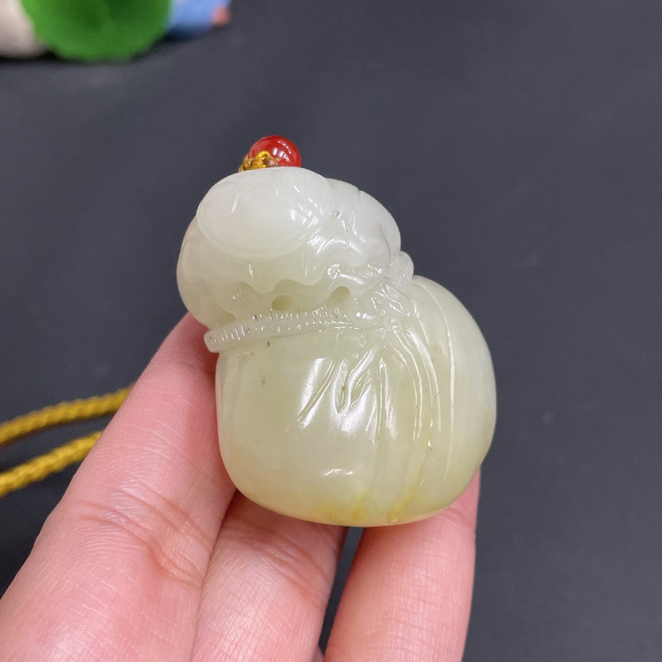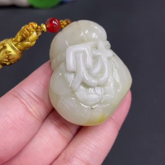 Hetian Jade Pendant - Money Bag with Undetermined Skin Color Origin Containing Other Mineral Components Total Weight Approximately (Including Rope) 60.7g