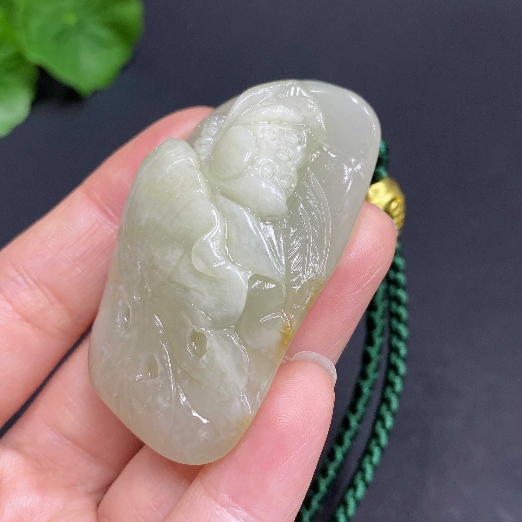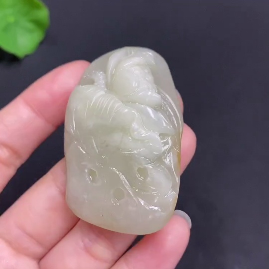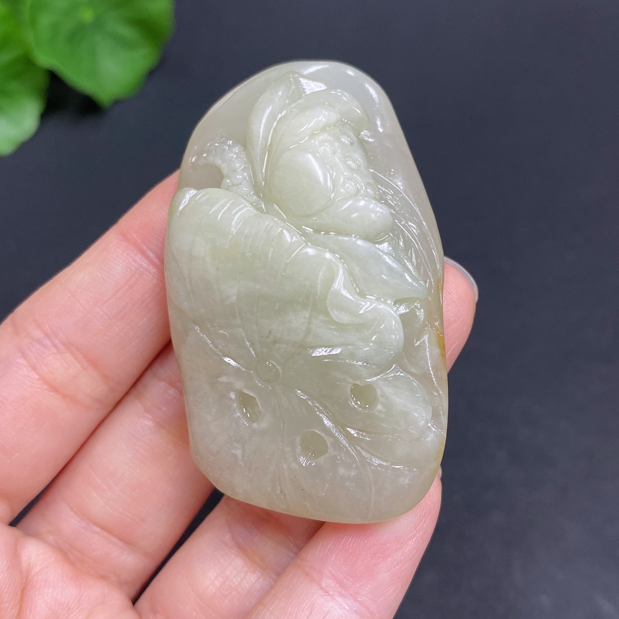 Hetian Jade Handheld Piece Lotus Total Weight Approx. (Including String) 46.3g Undetermined Skin Color Origin