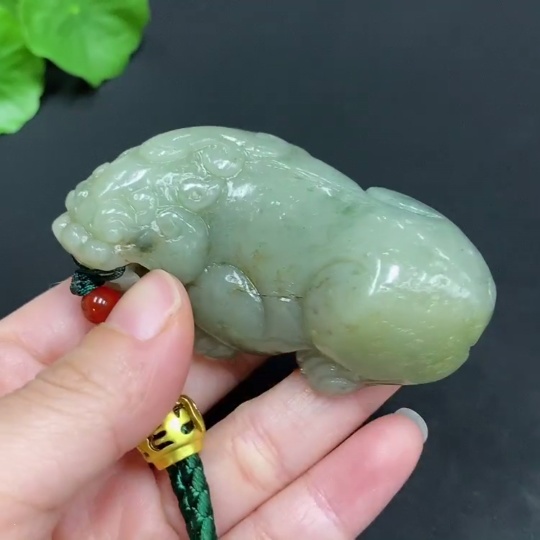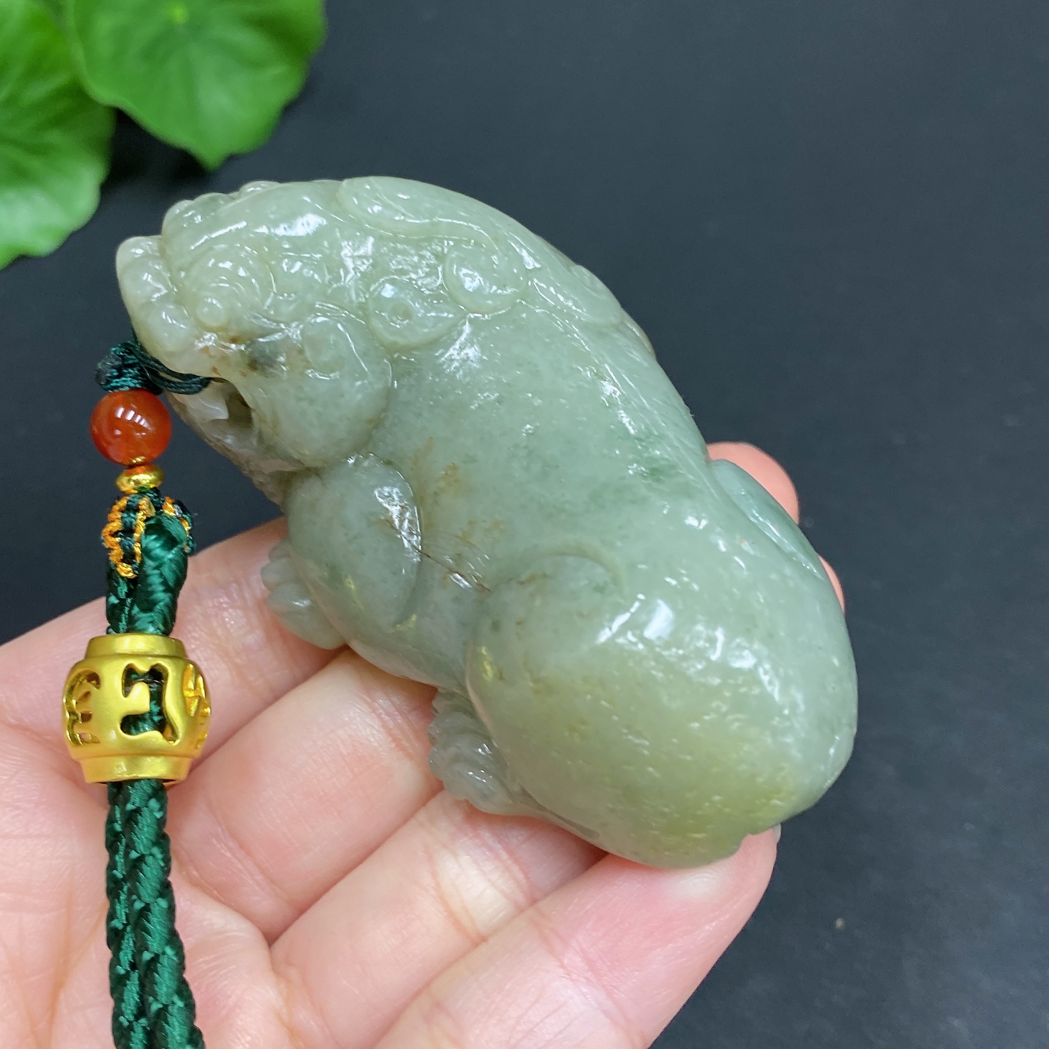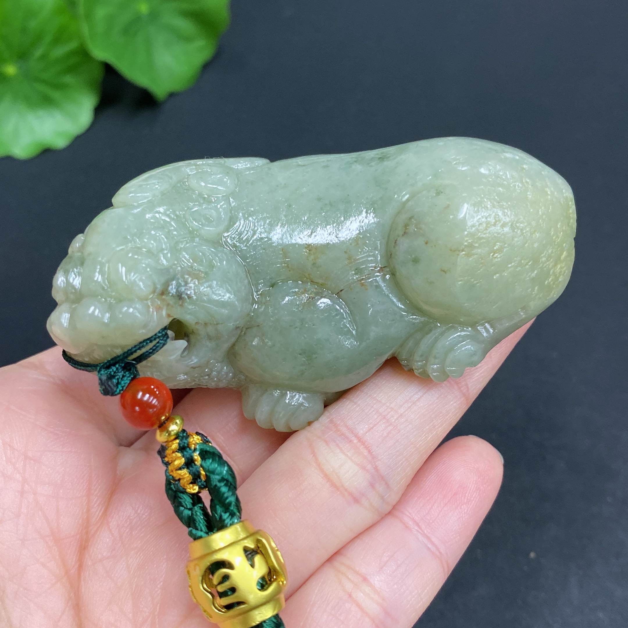 Hetian Jade Handheld Piece - Auspicious Beast, Total Weight (Including Rope) Approx. 99.7g, Undetermined Skin Color Origin