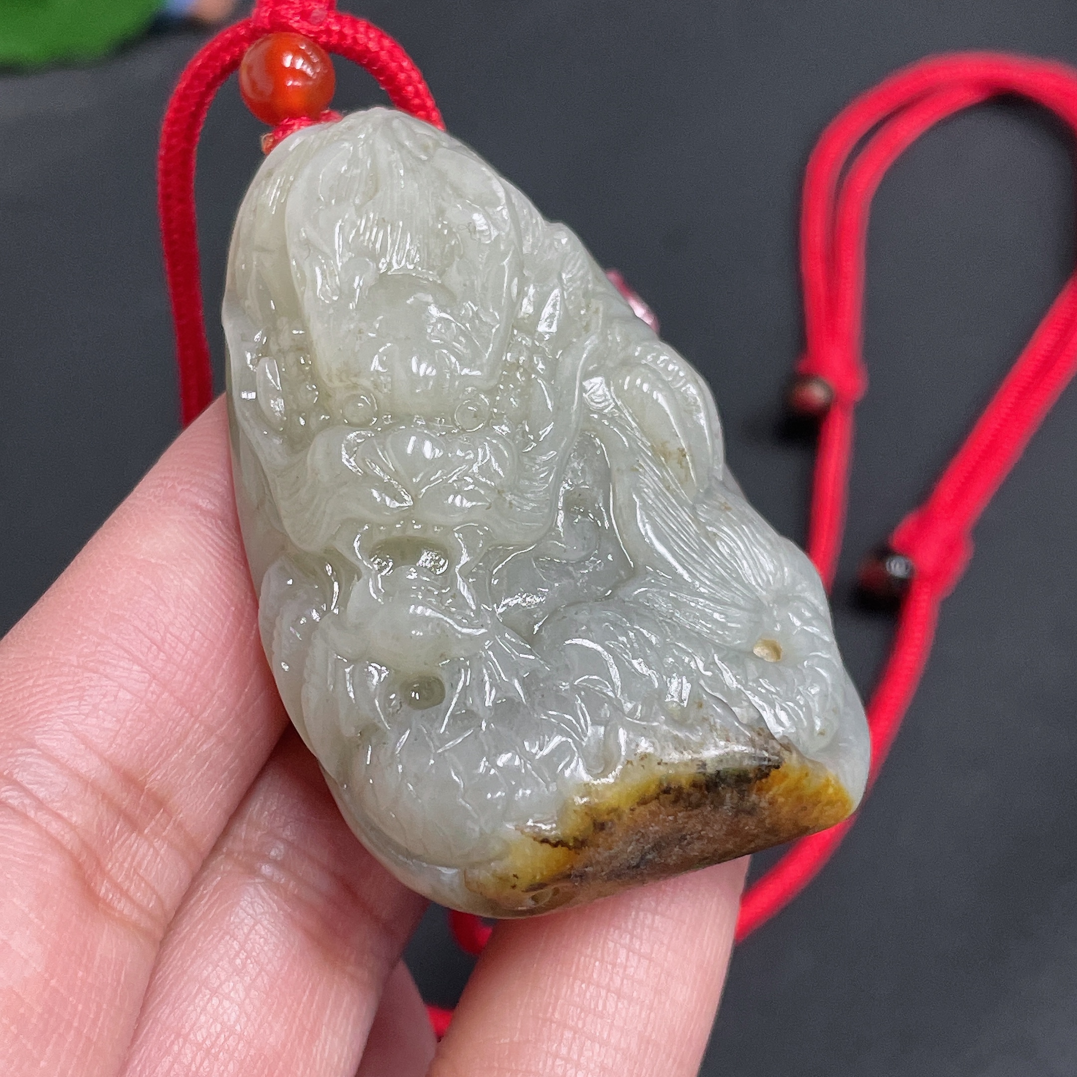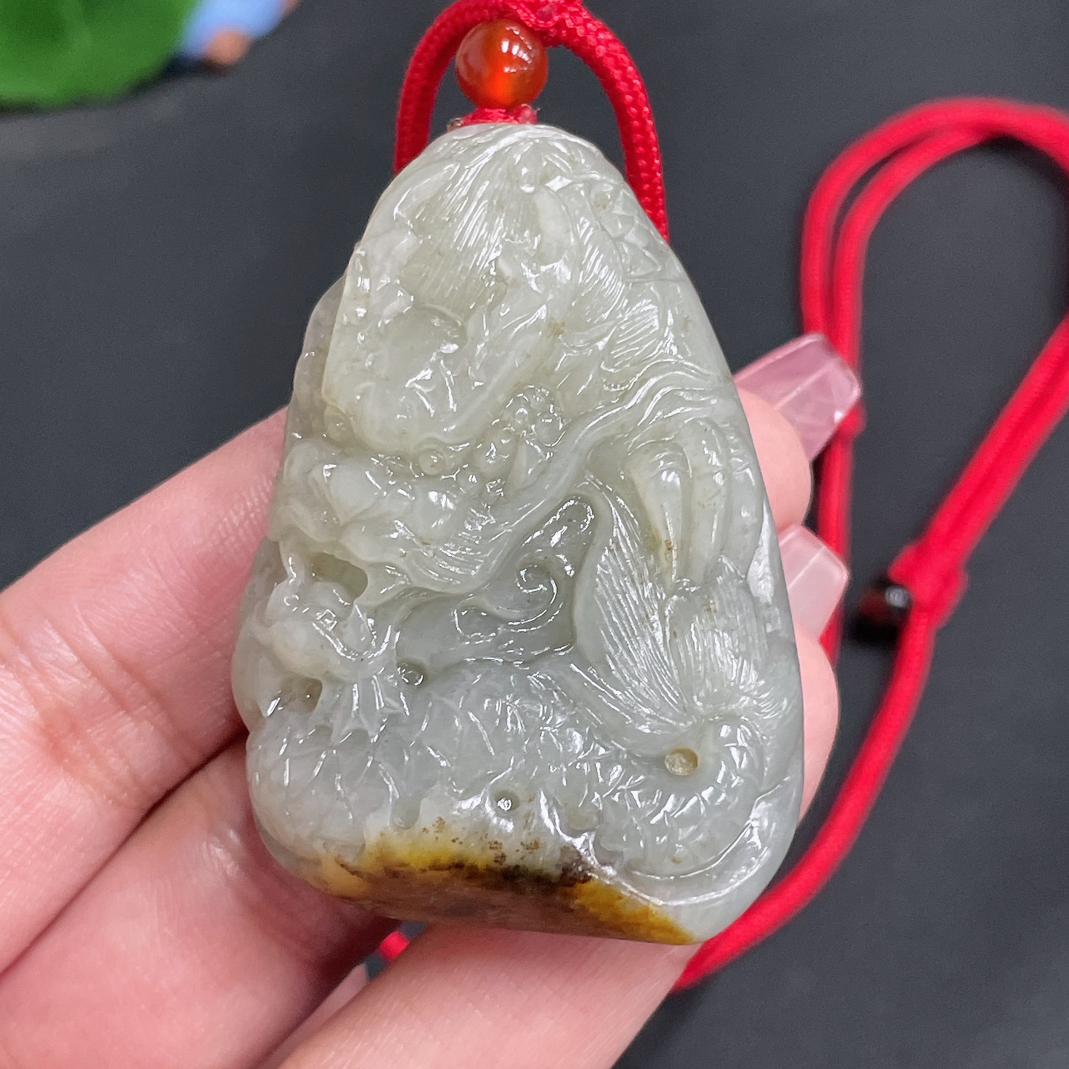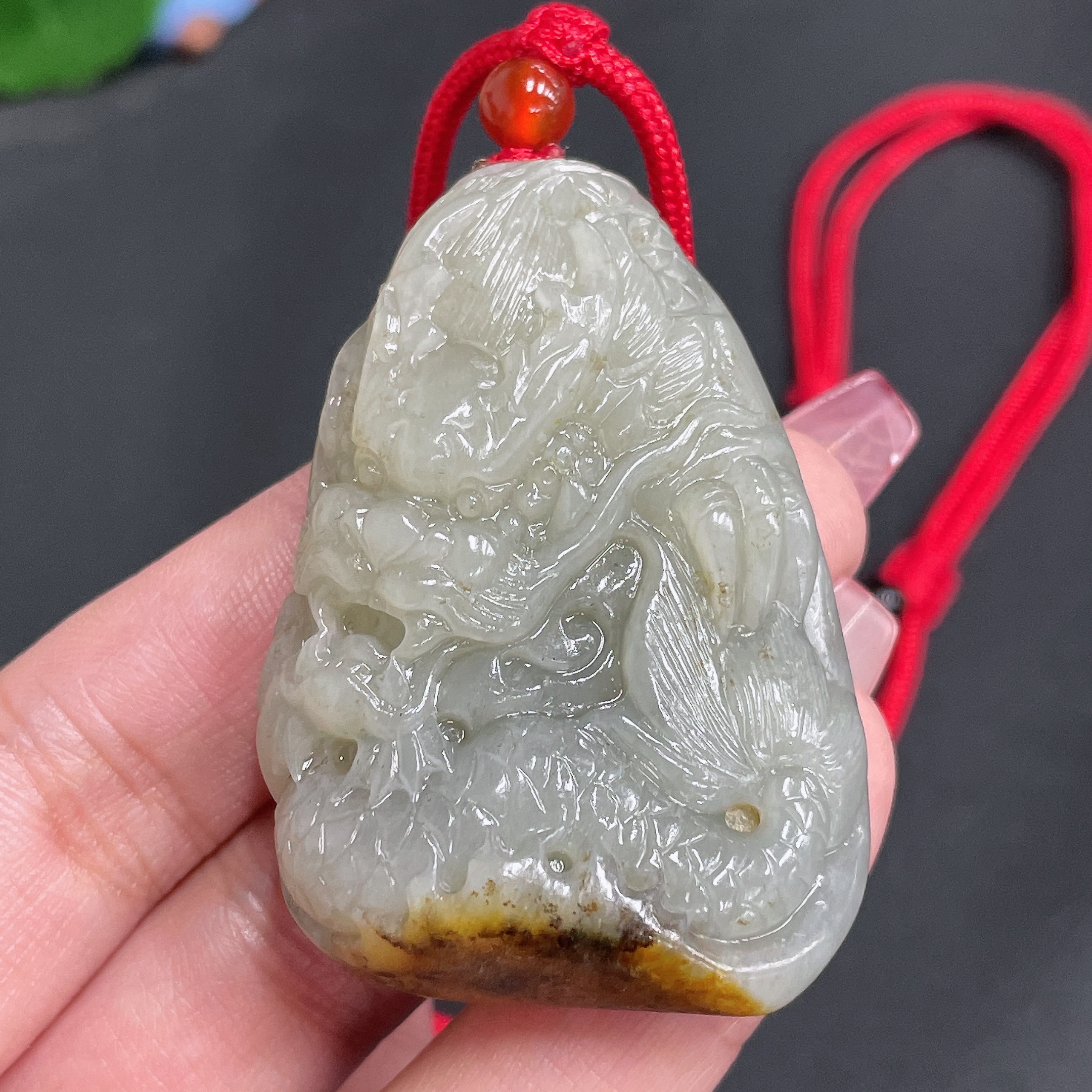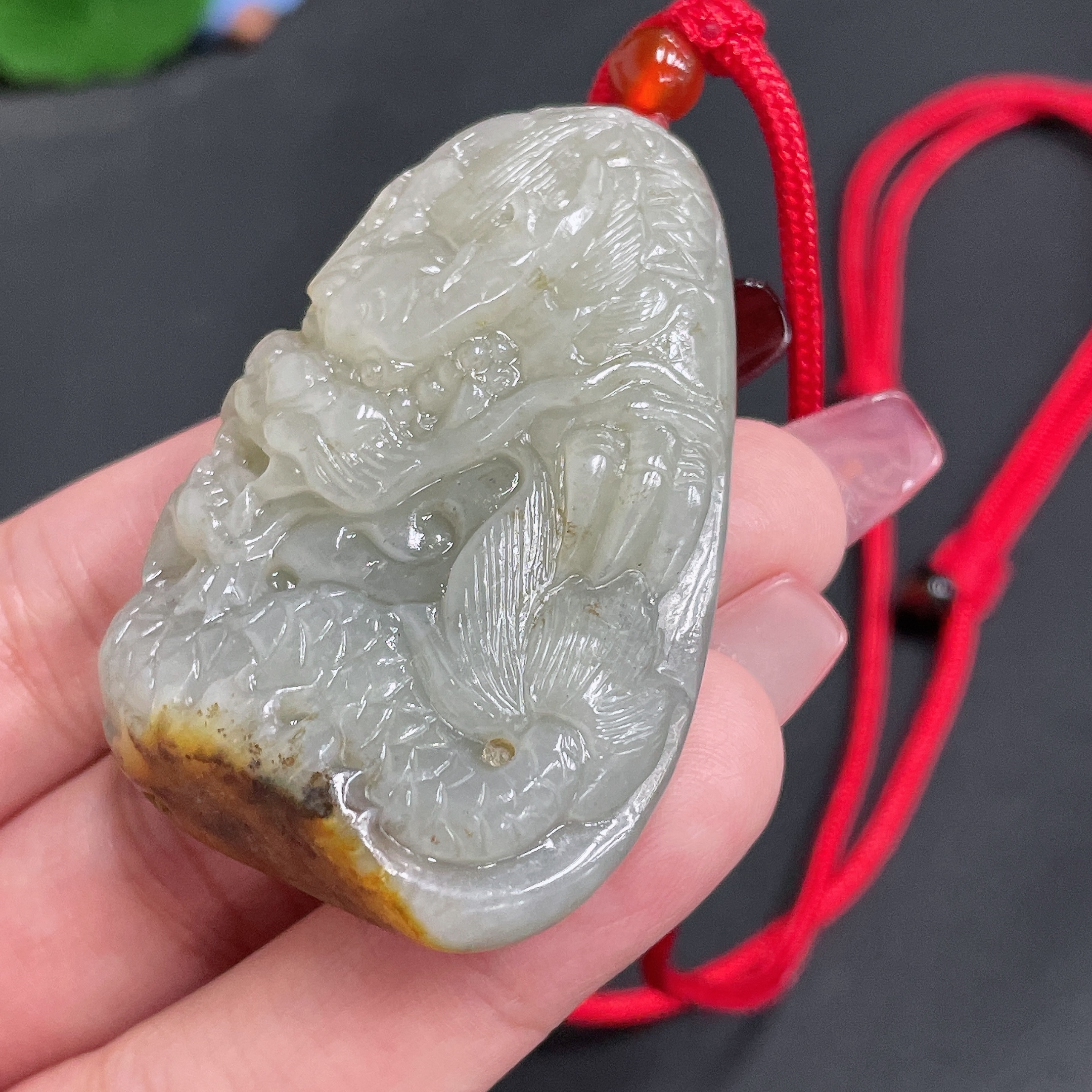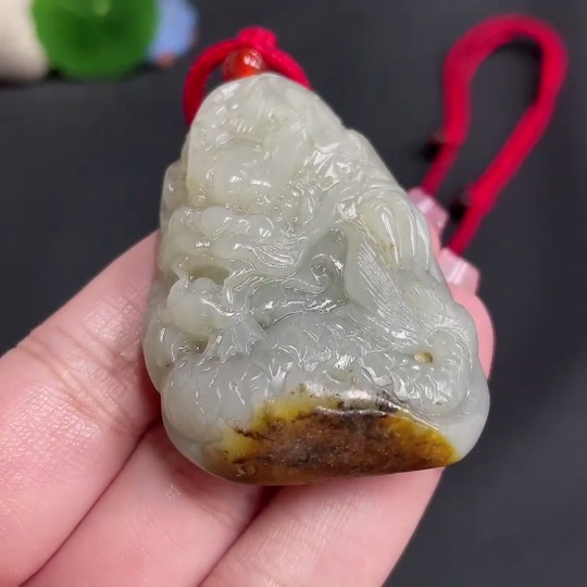 Hetian Jade Seed Material Pendant - Dragon Roaming the World - Undetermined Skin Color Origin - Total Weight (including rope) Approx. 54.8g