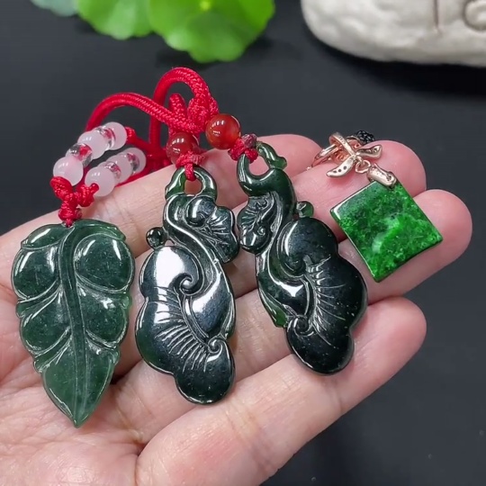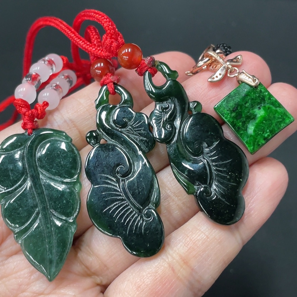 Jadeite Pendant Ruyi Leaf Non-Gold Bezel