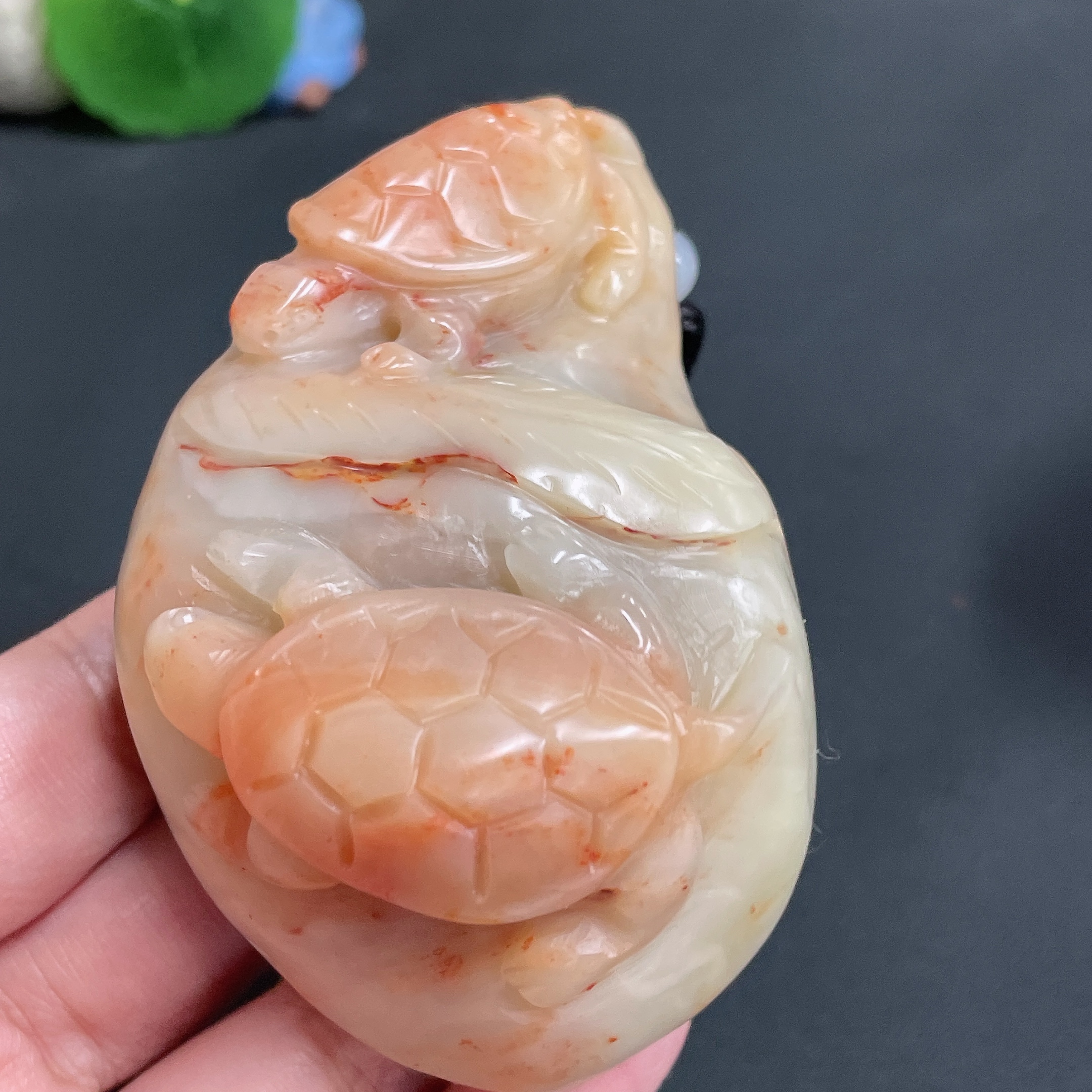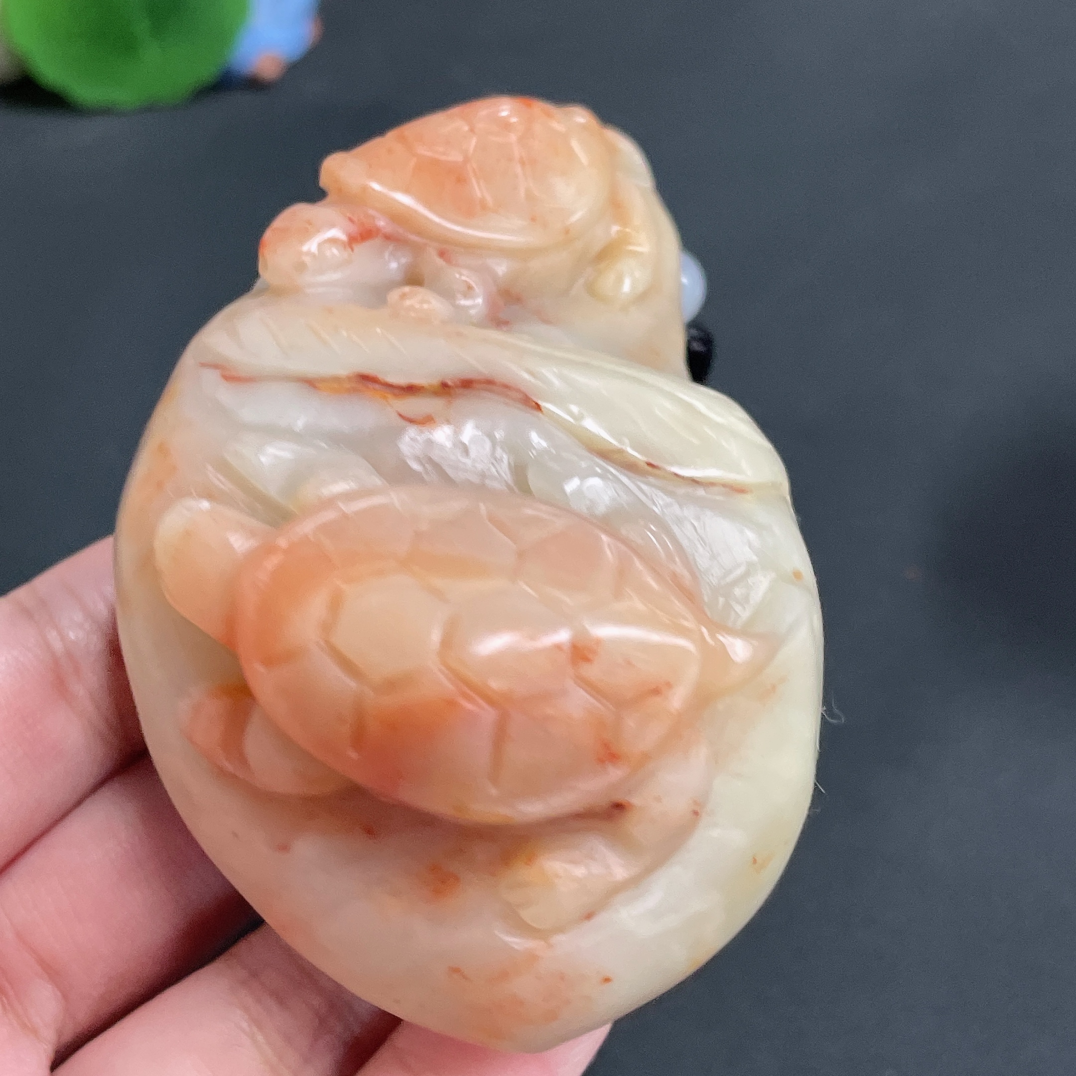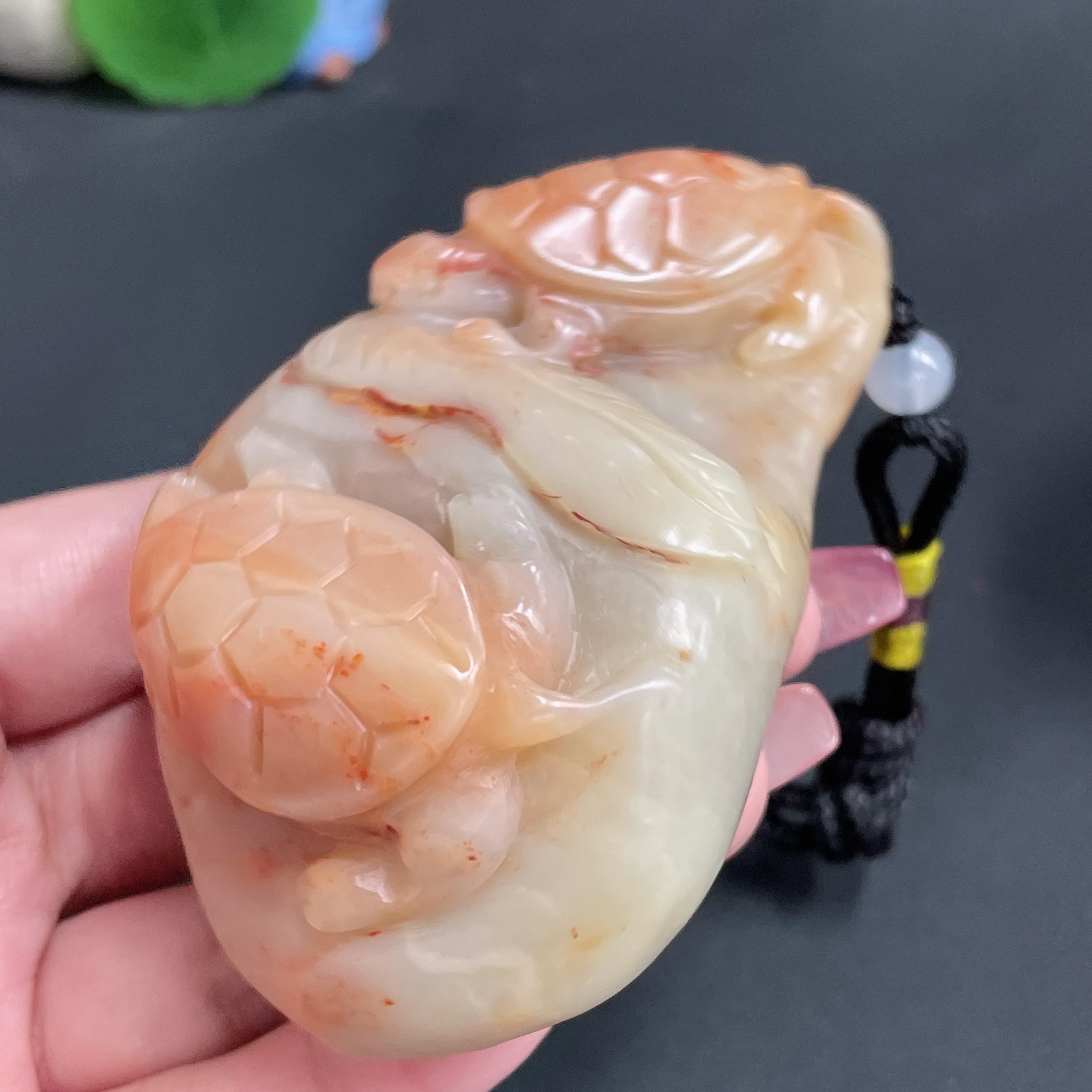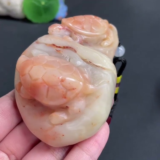 Shoushan Stone Handheld Piece Longevity Turtle Non-Natural Stone Consideration Total Weight Approx. (Including Rope) 200.7g