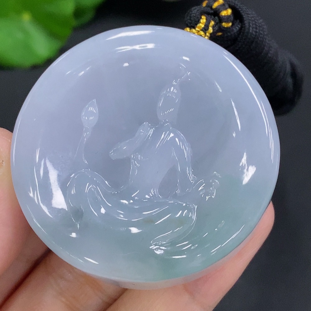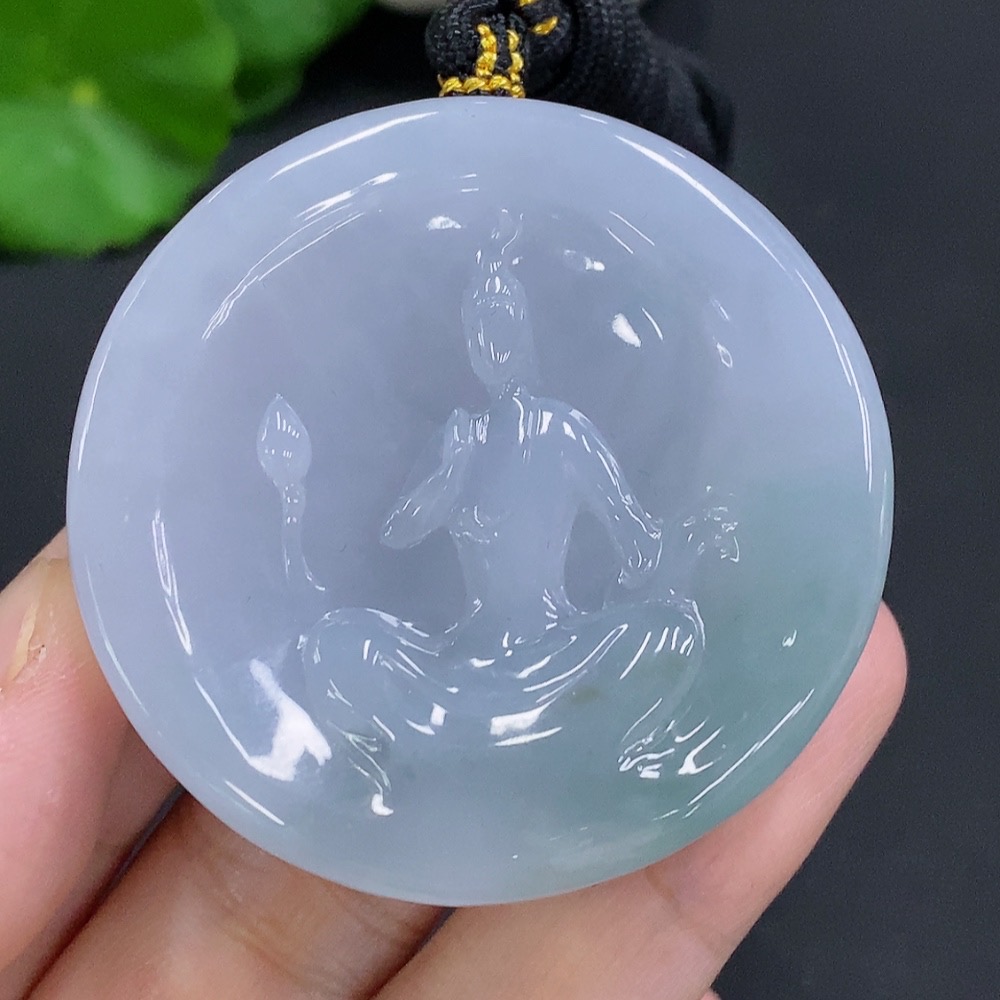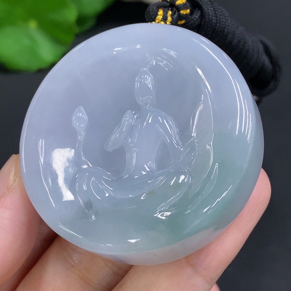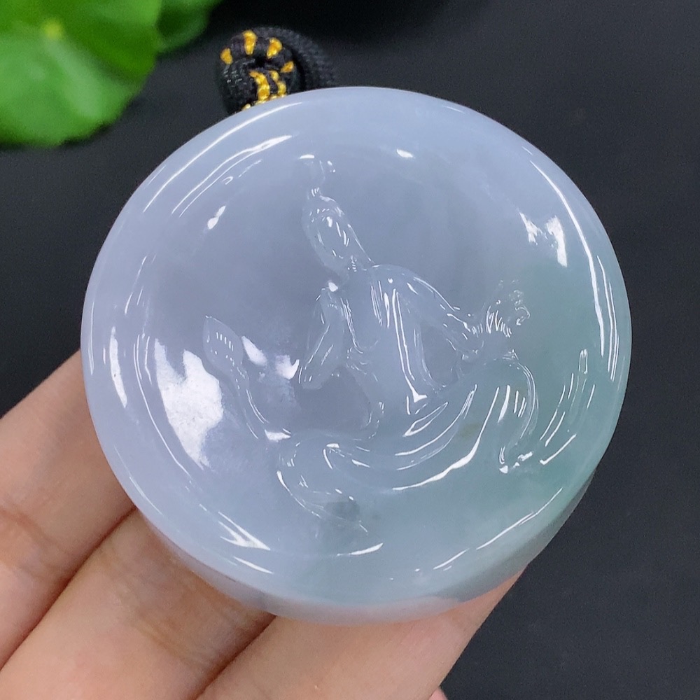 Jadeite Formless Guanyin Pendant with Cord, Total Weight Approx. 86.2g