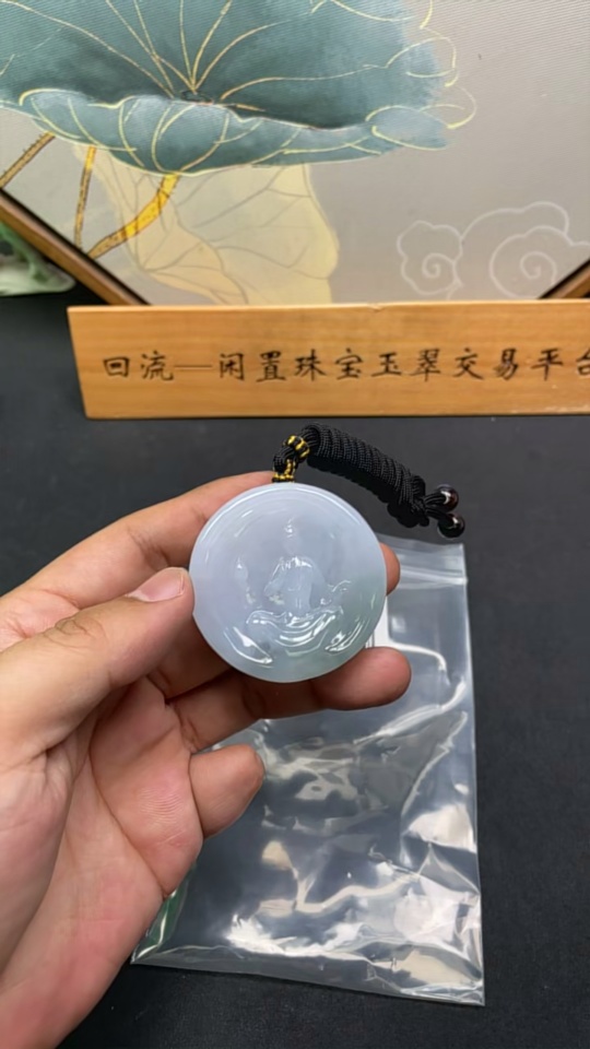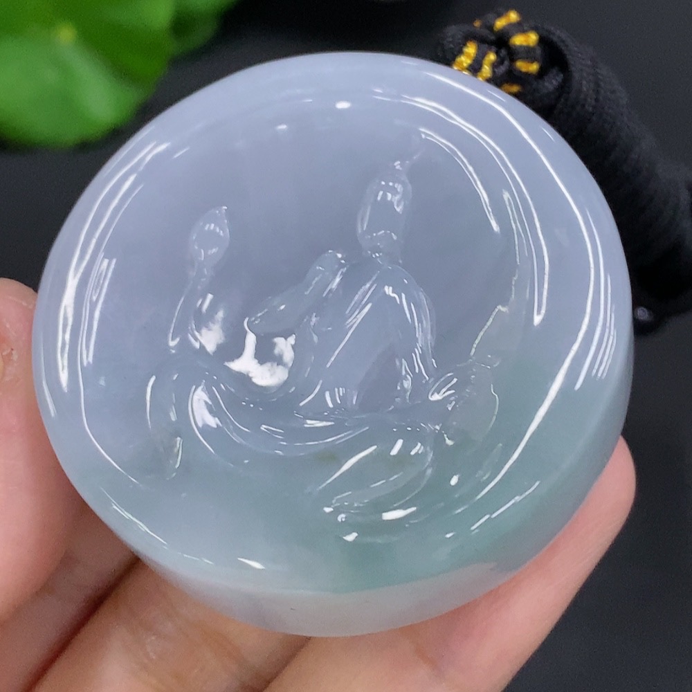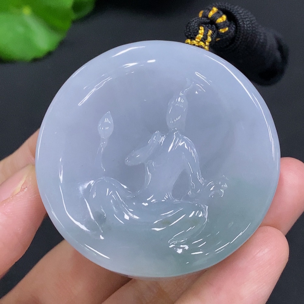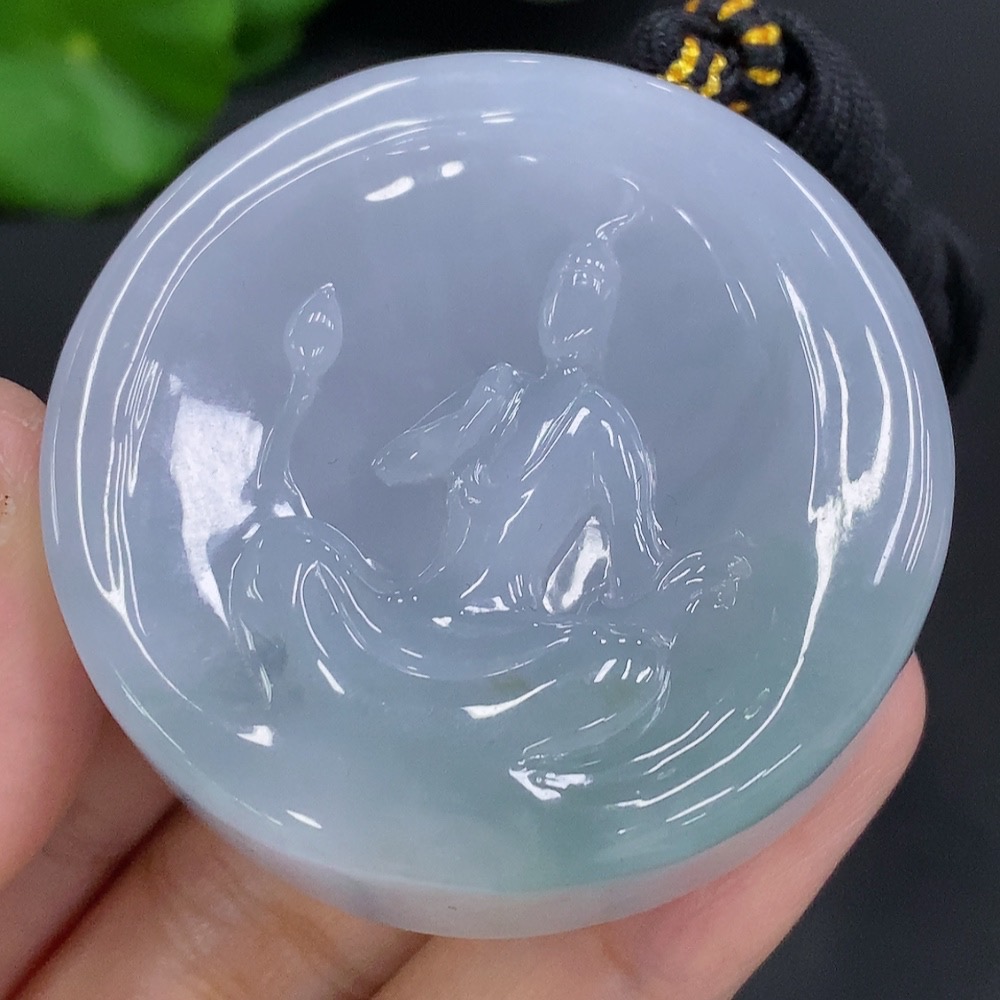 Jadeite Formless Guanyin Pendant with Cord, Total Weight Approx. 86.2g