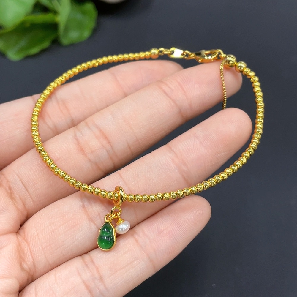 Jadeite Gourd Bracelet Small Round Beads Gold Content 99% Others Non-Gold Total Weight Approx. 2.23g