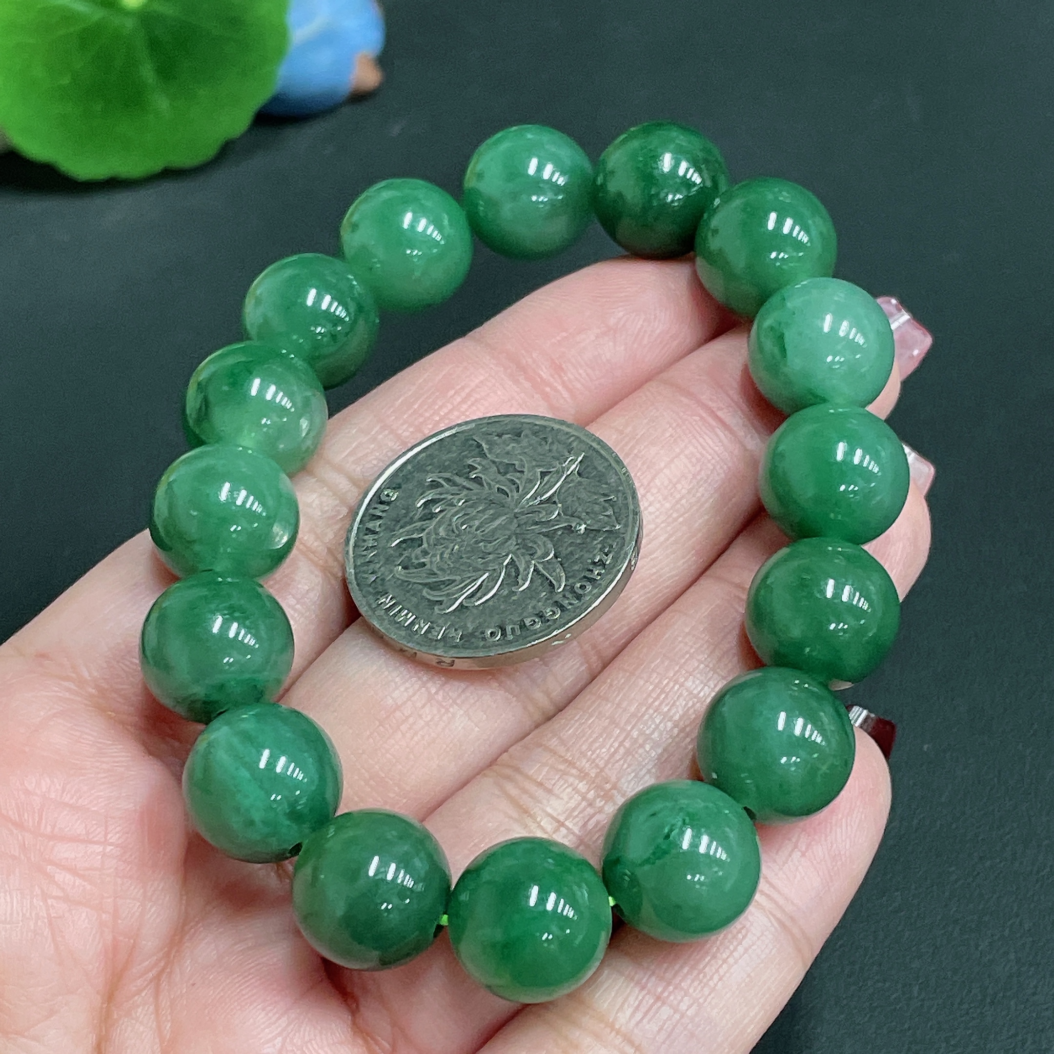 Dulong Jade Bracelet, approx. 12.1mm beads, total weight approx. 40.4g
