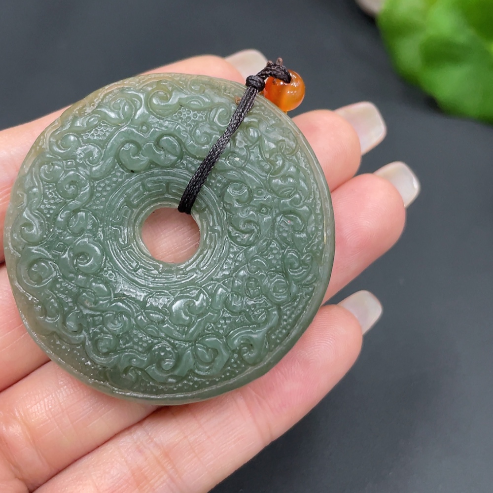 Hetian Jade Pendant, Antique-style Toggle, Total Weight Approx. (including rope) 32.8g