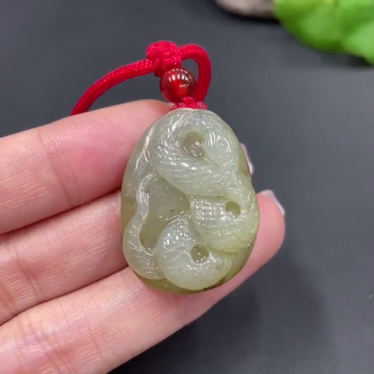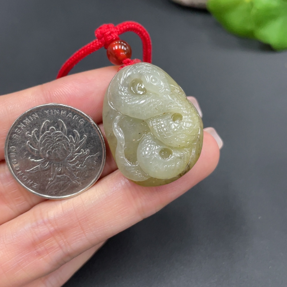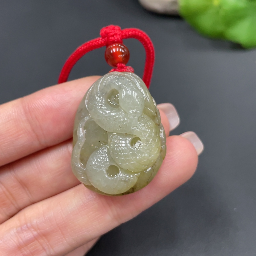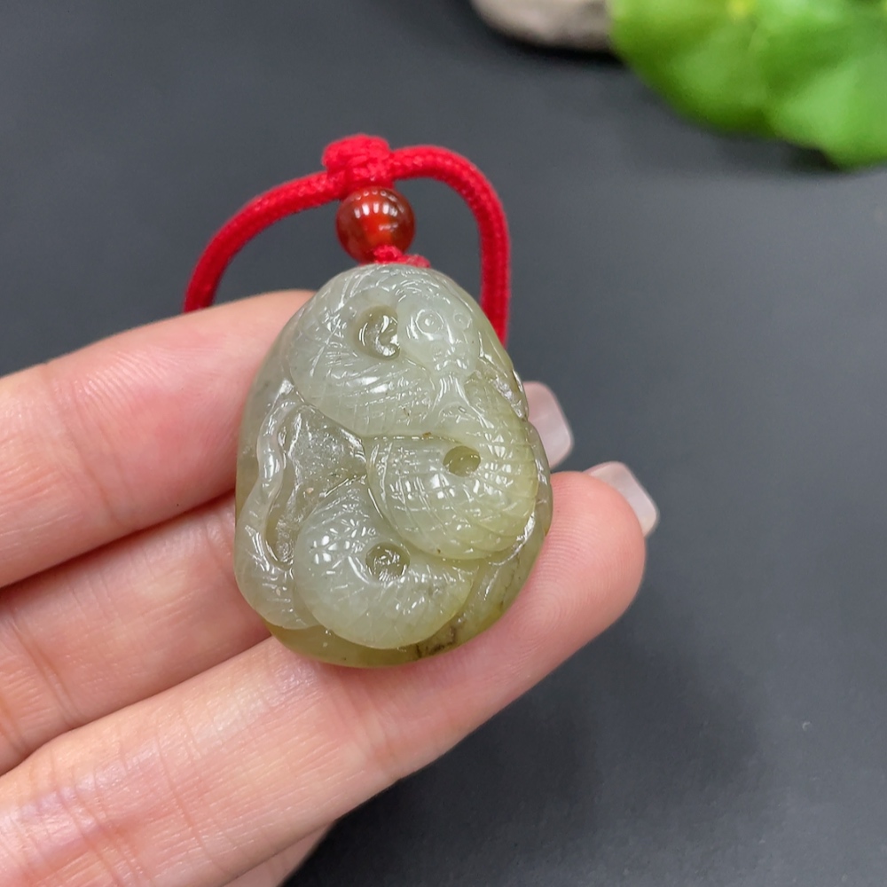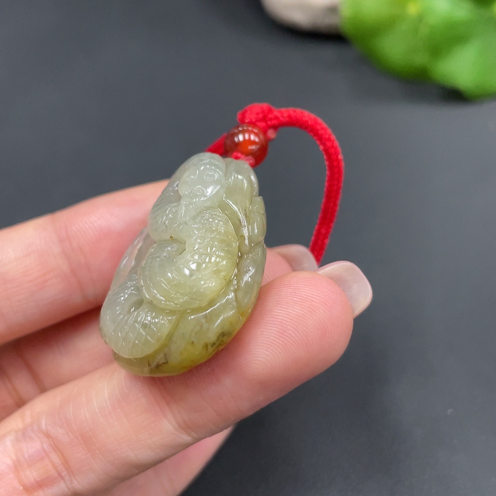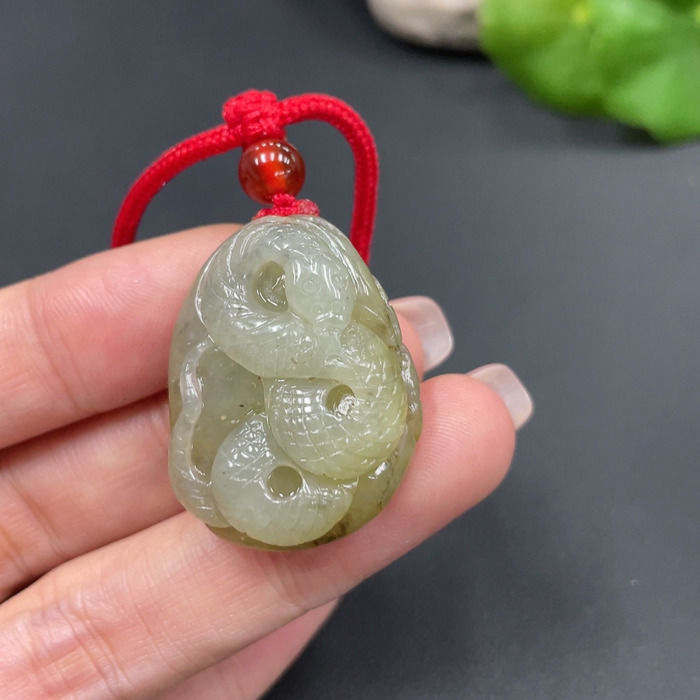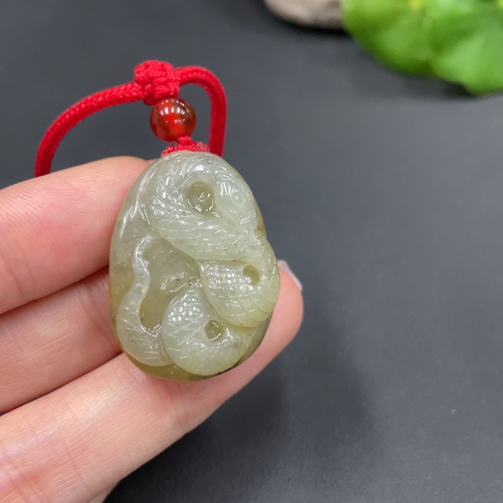 Hetian Jade Seed Material Pendant - Snake - Undetermined Skin Color Origin - Total Weight (including rope) Approx. 16.6g