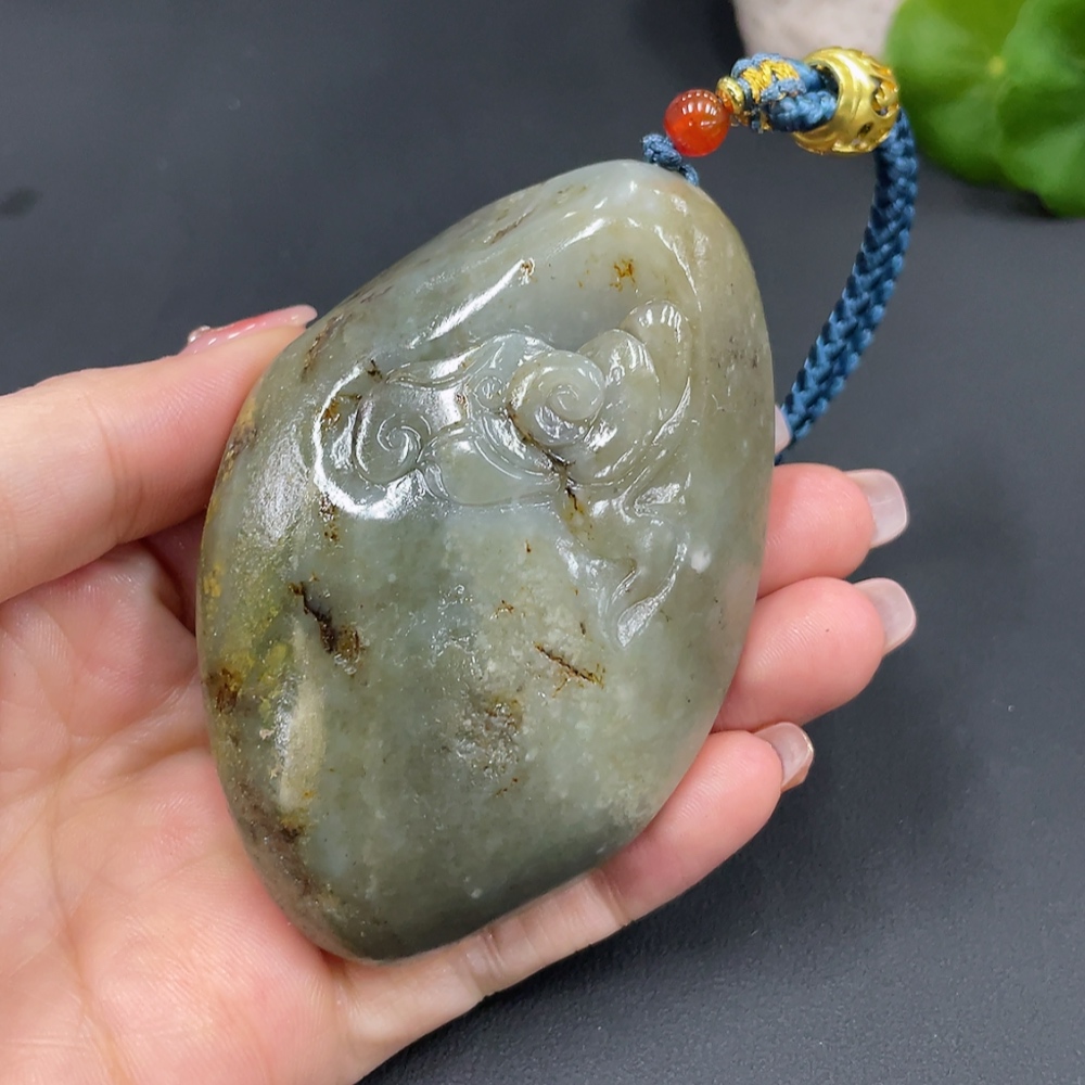 Trezaar - Hetian Jade Seed Material Handheld Piece - Wealth from All Directions