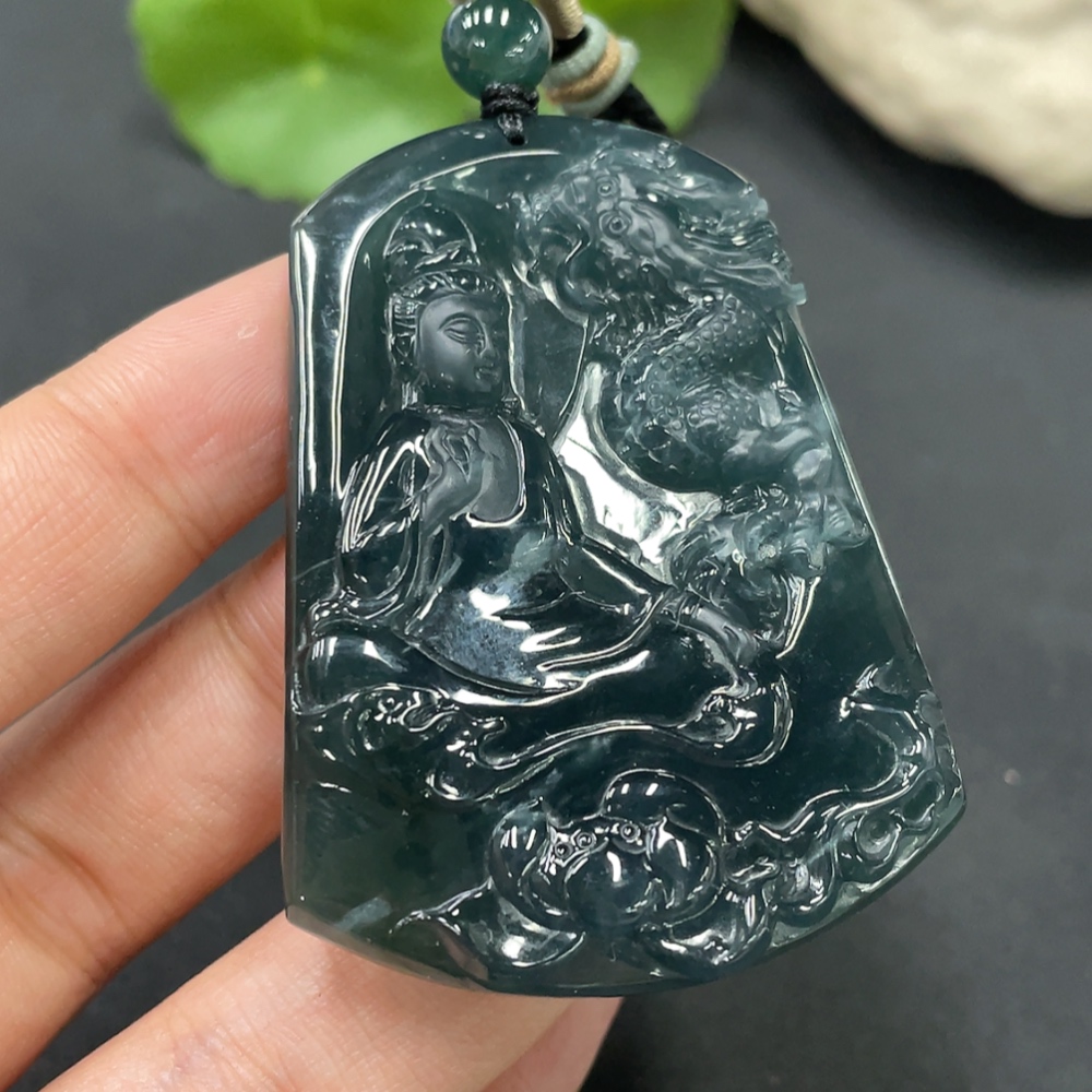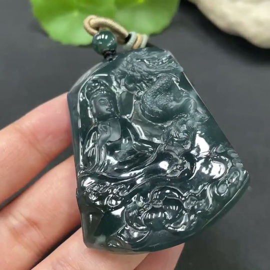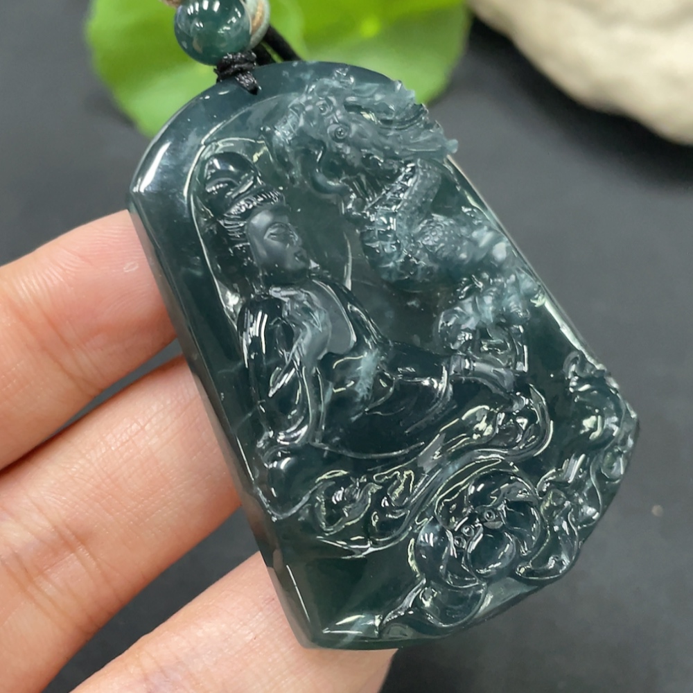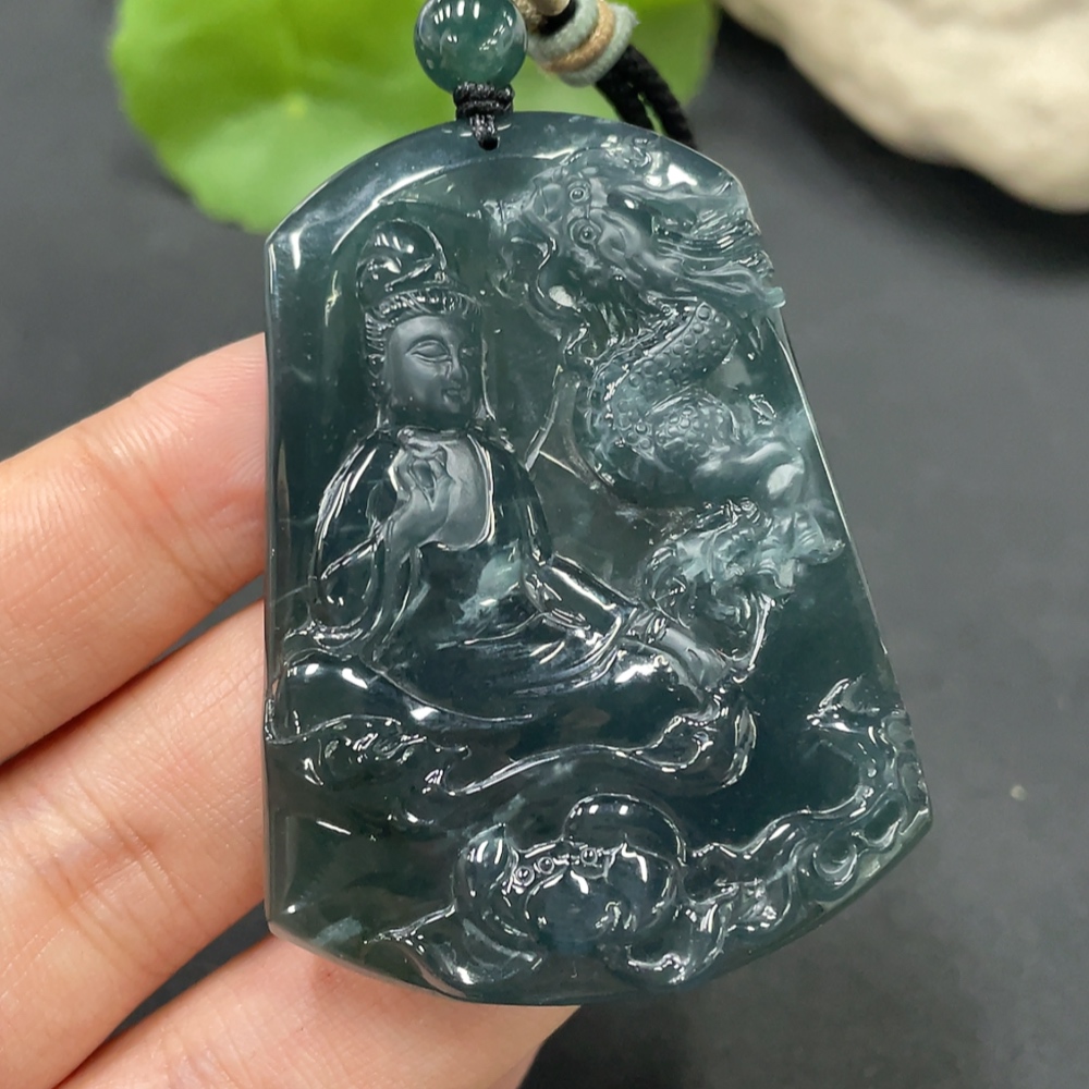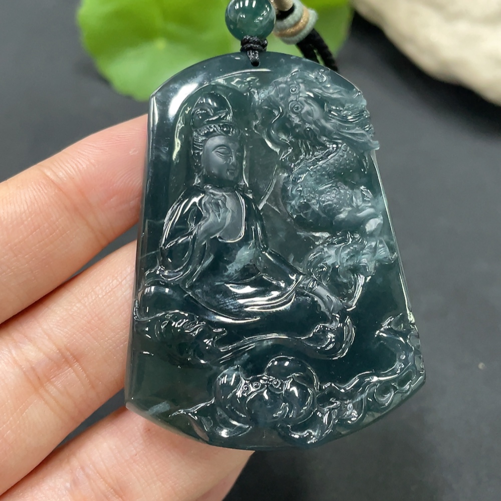 Jadeite Dragon-Guarding Guanyin Pendant, Total Weight Approx. 33.22g