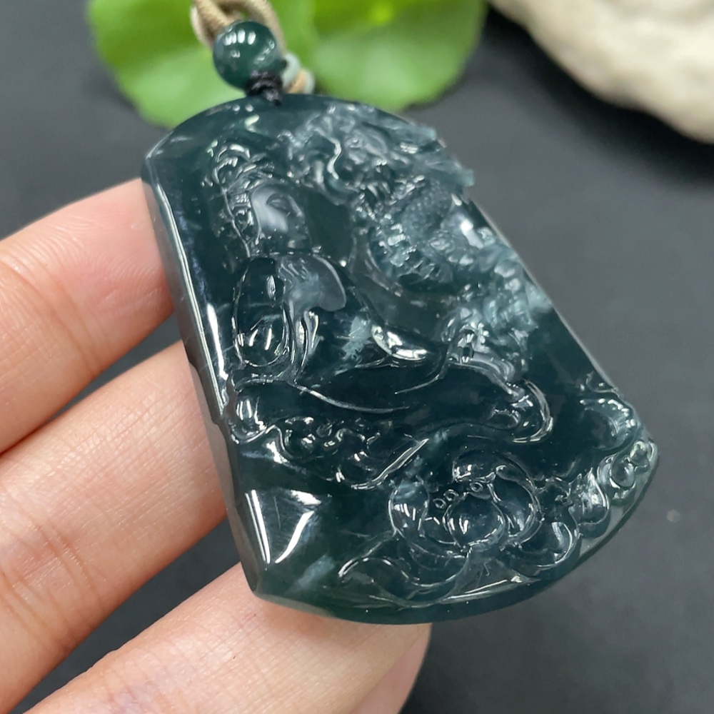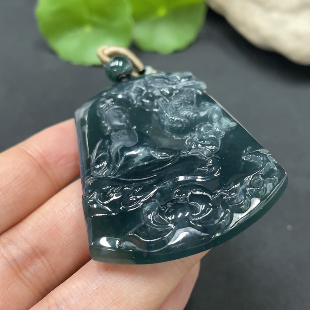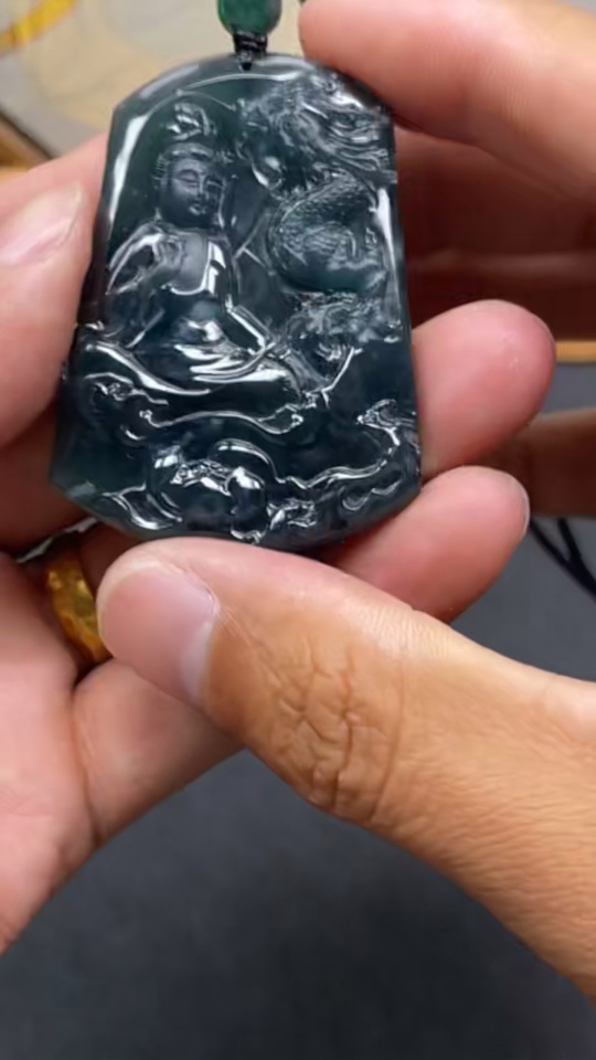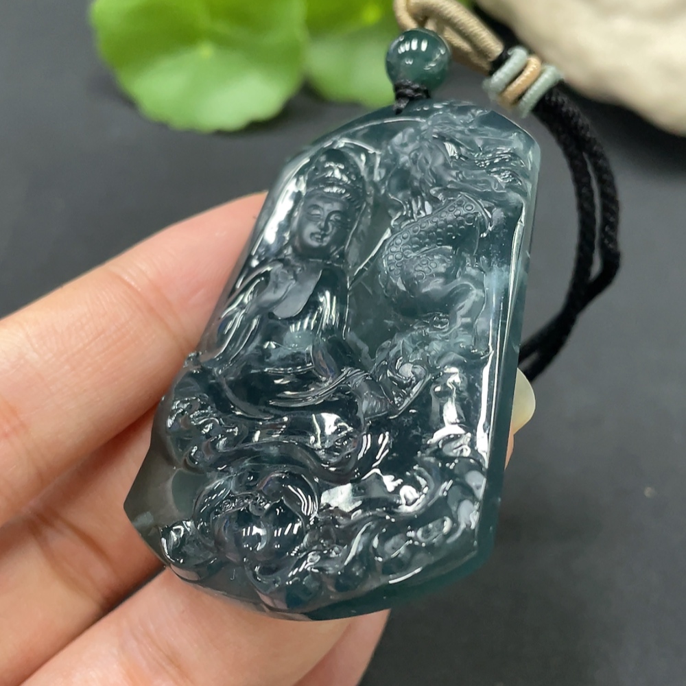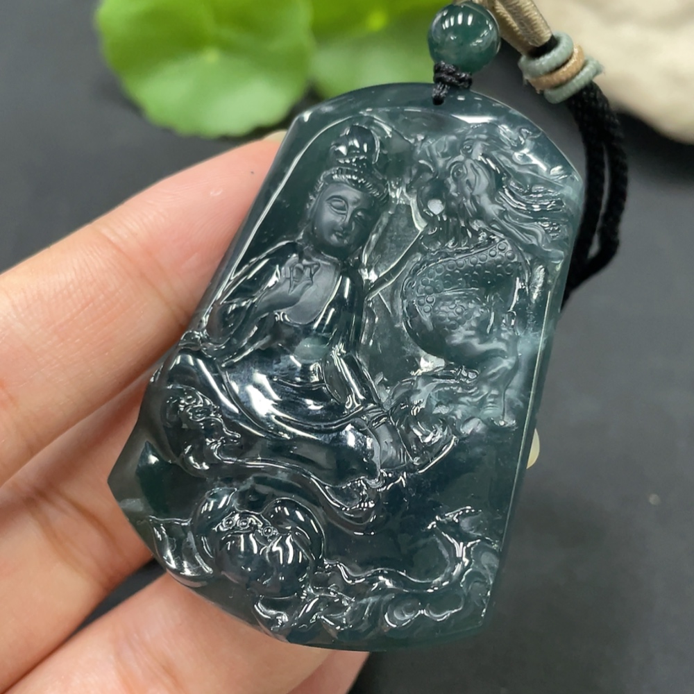 Jadeite Dragon-Guarding Guanyin Pendant, Total Weight Approx. 33.22g