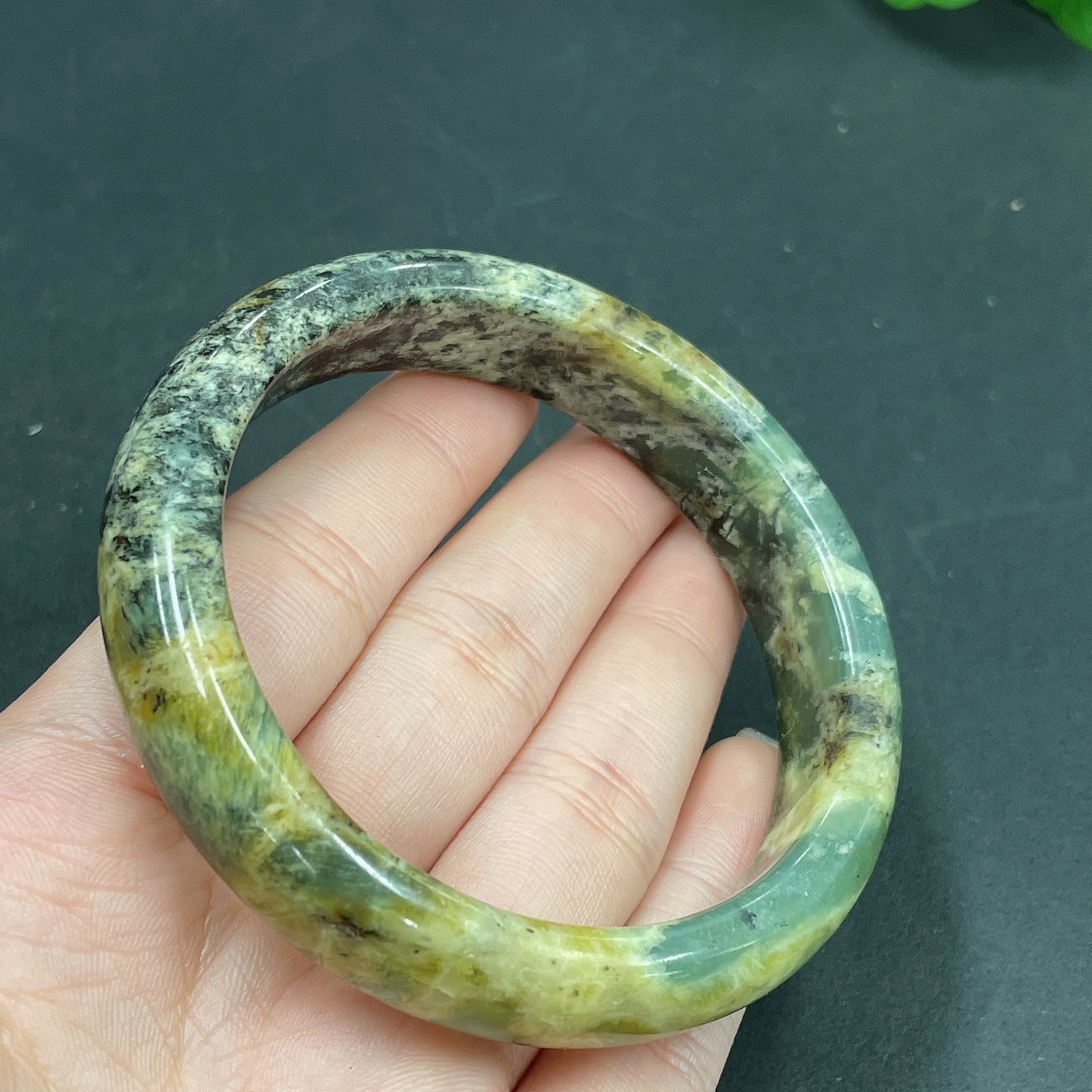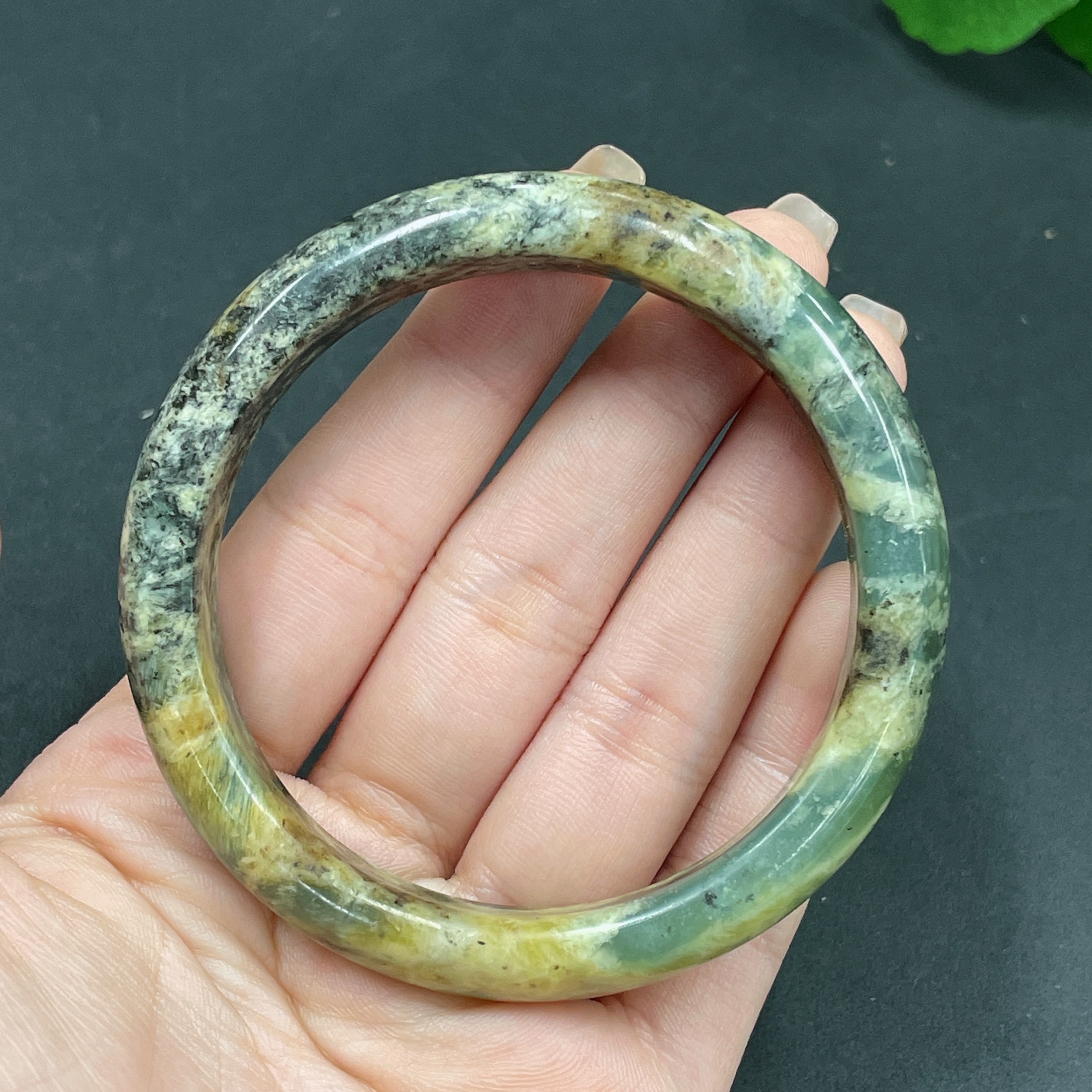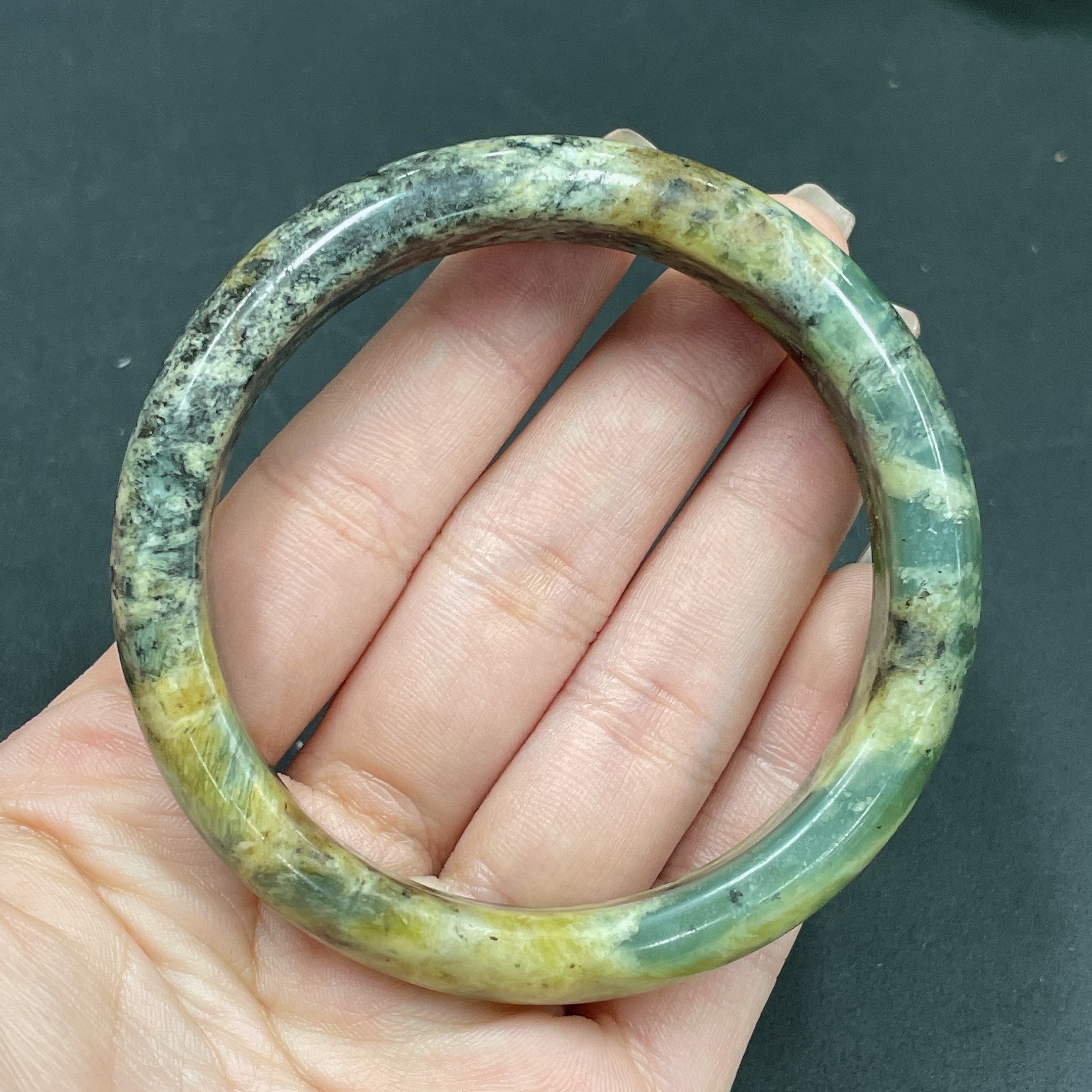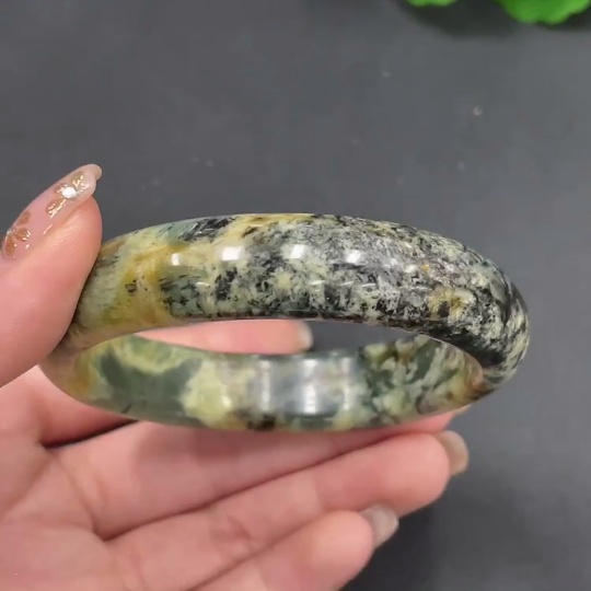 Xiuyan jade (serpentine jade) round bracelet Size 58 Total weight about 50.3g