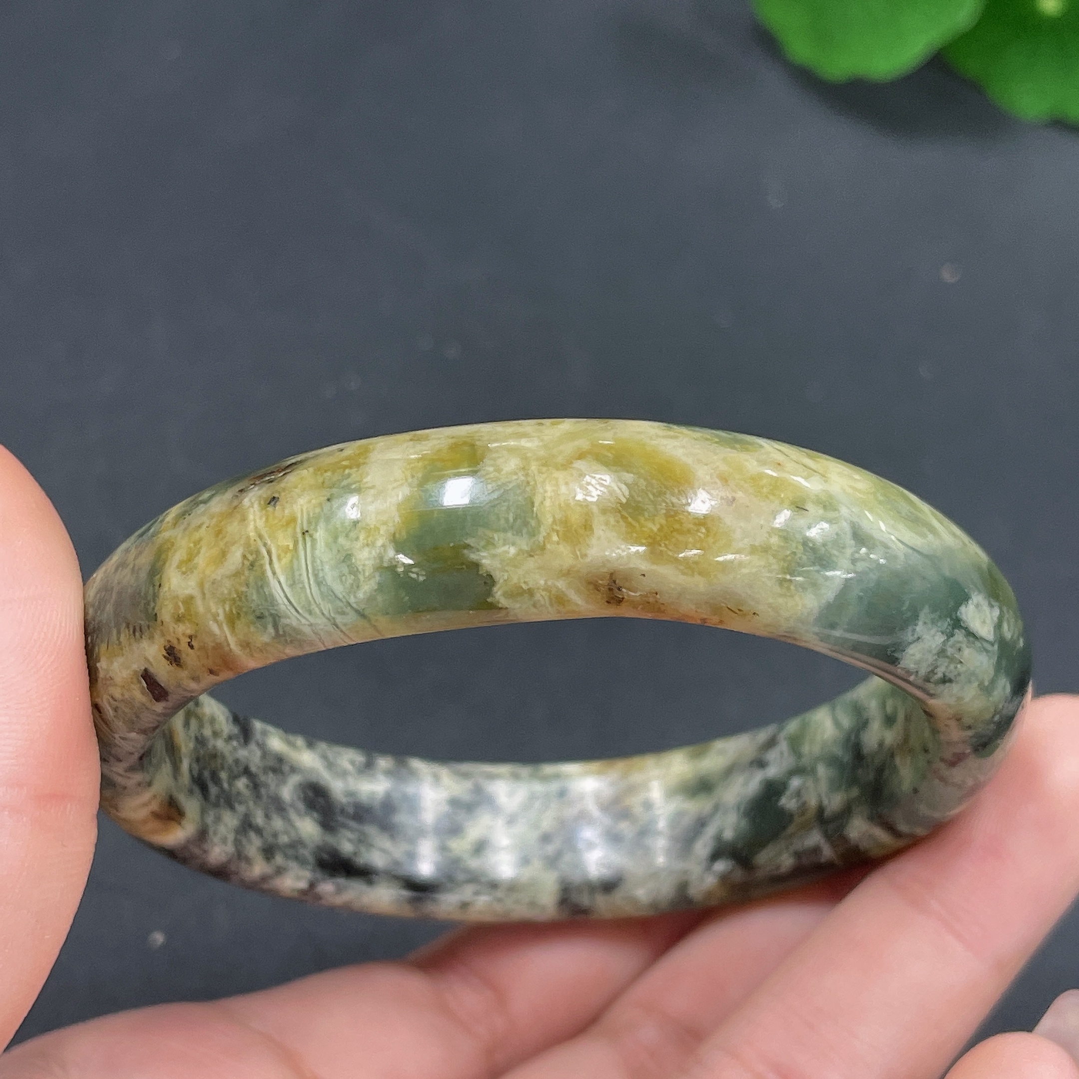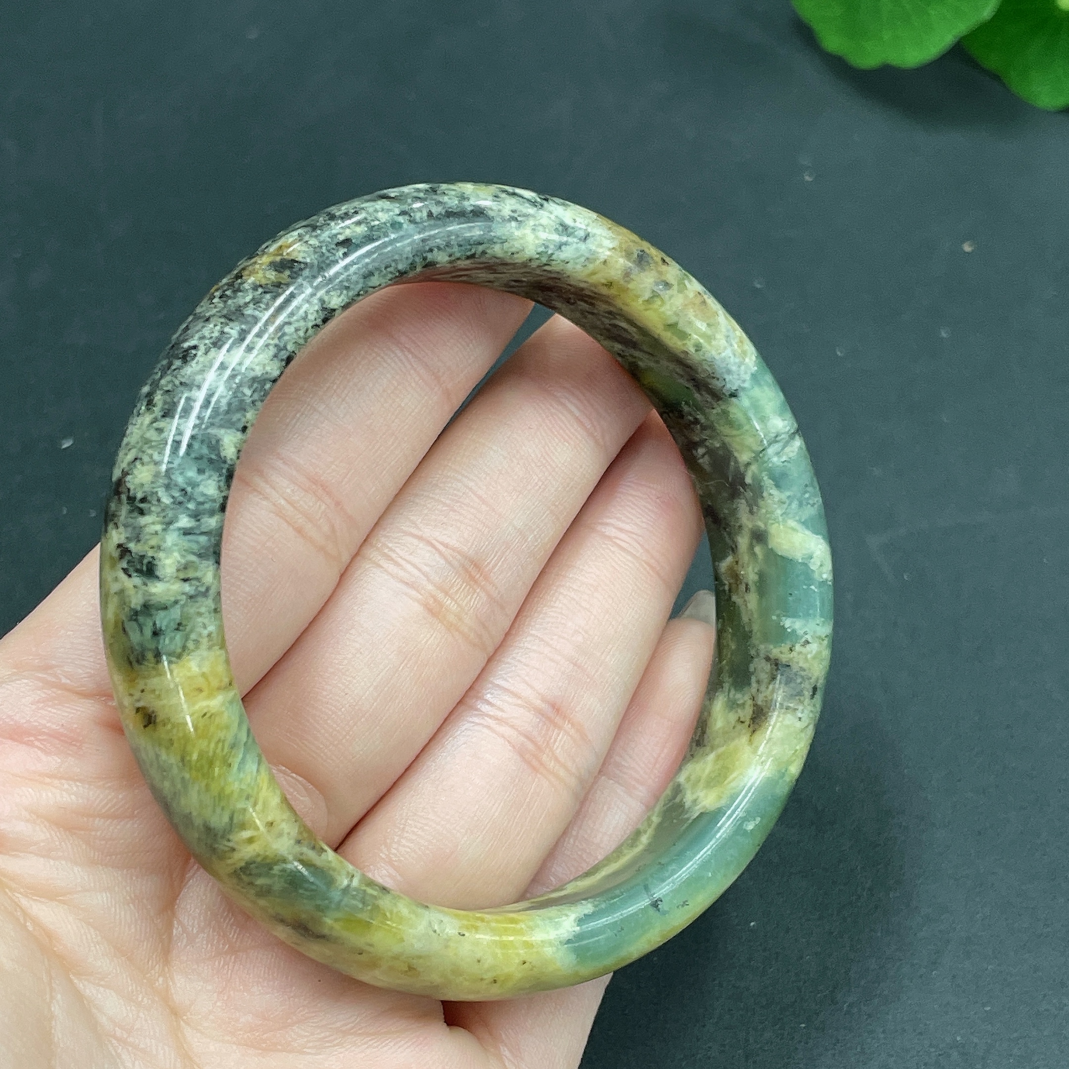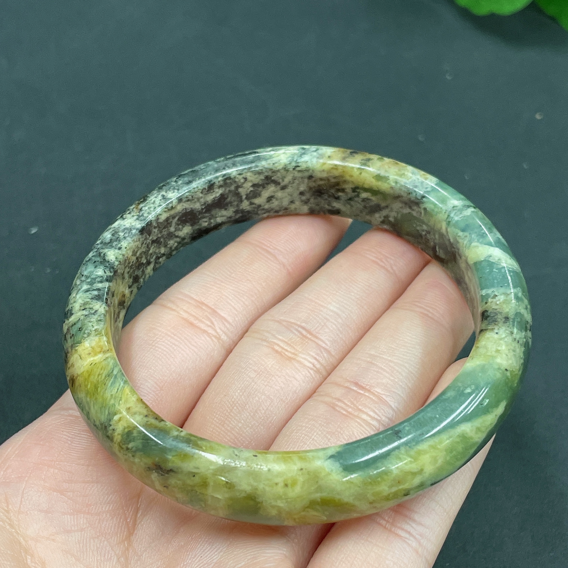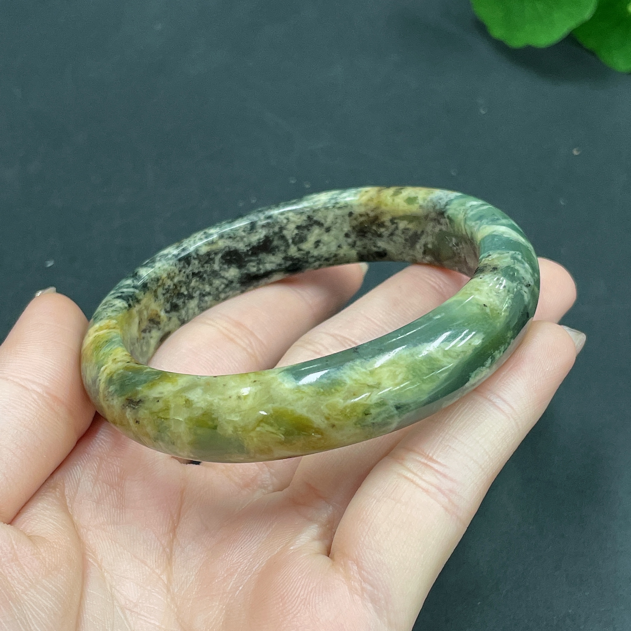 Xiuyan jade (serpentine jade) round bracelet Size 58 Total weight about 50.3g