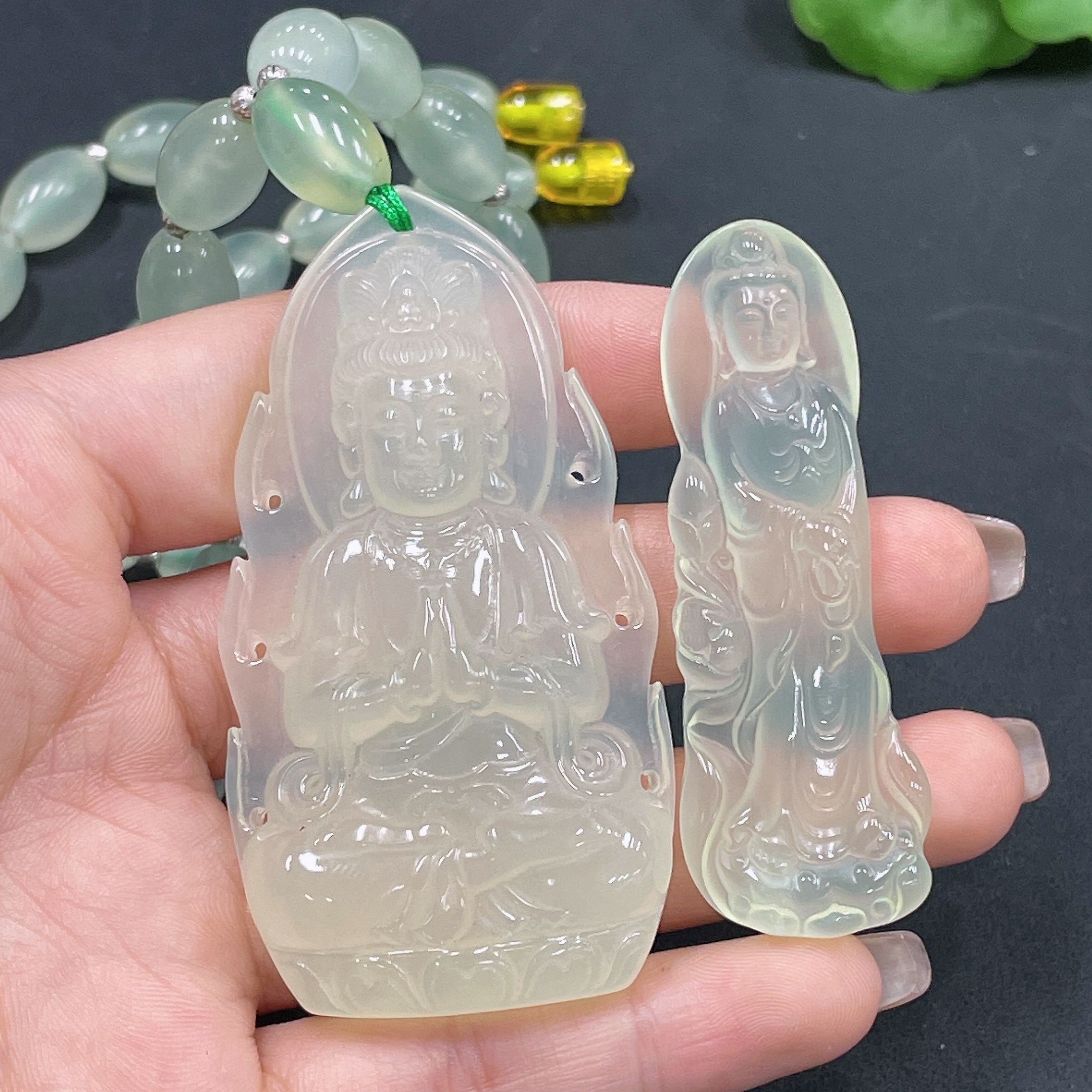 Xiuyan Jade (Serpentine Jade) Pendant Guanyin Total Weight Approx. (Including Chain) 110.1g