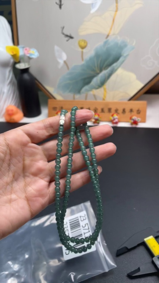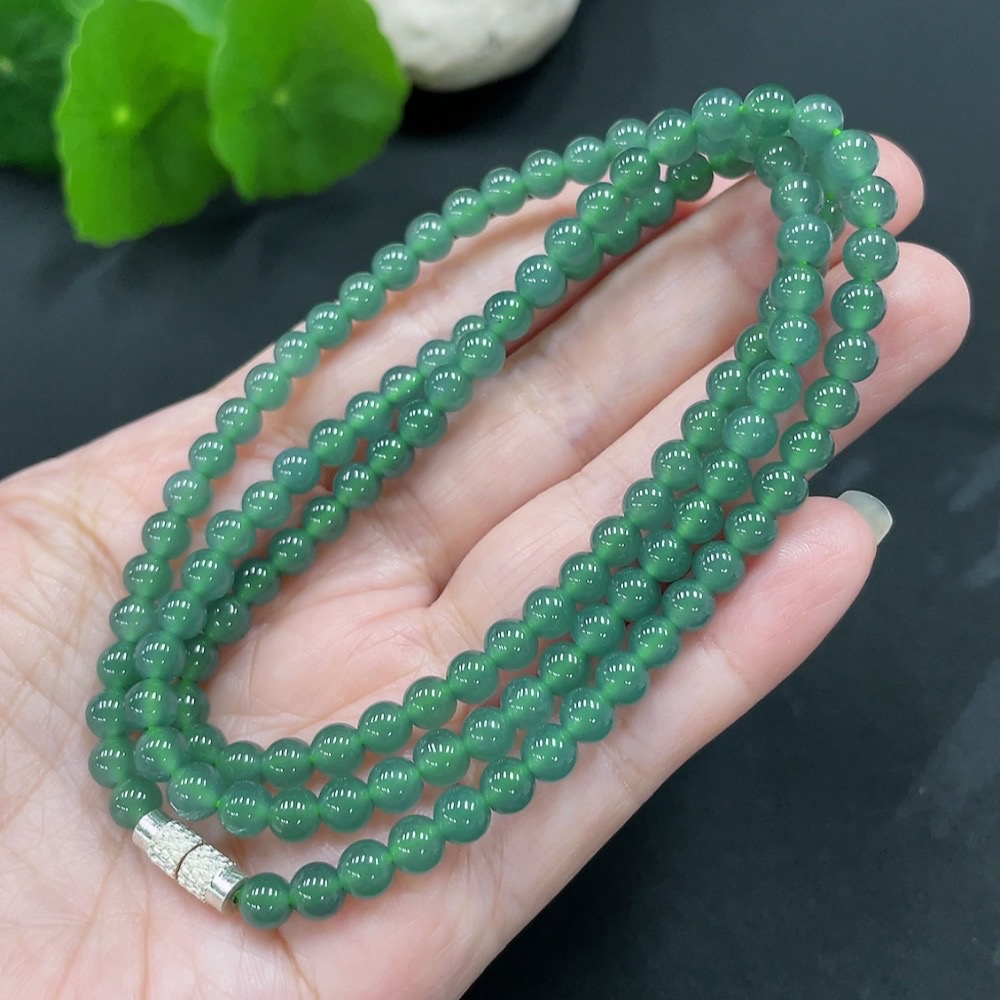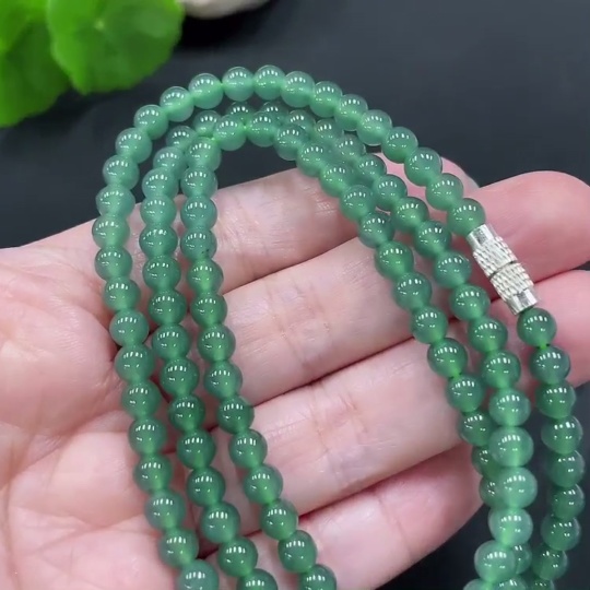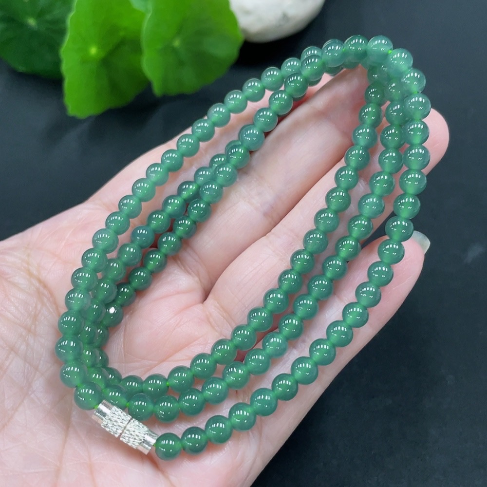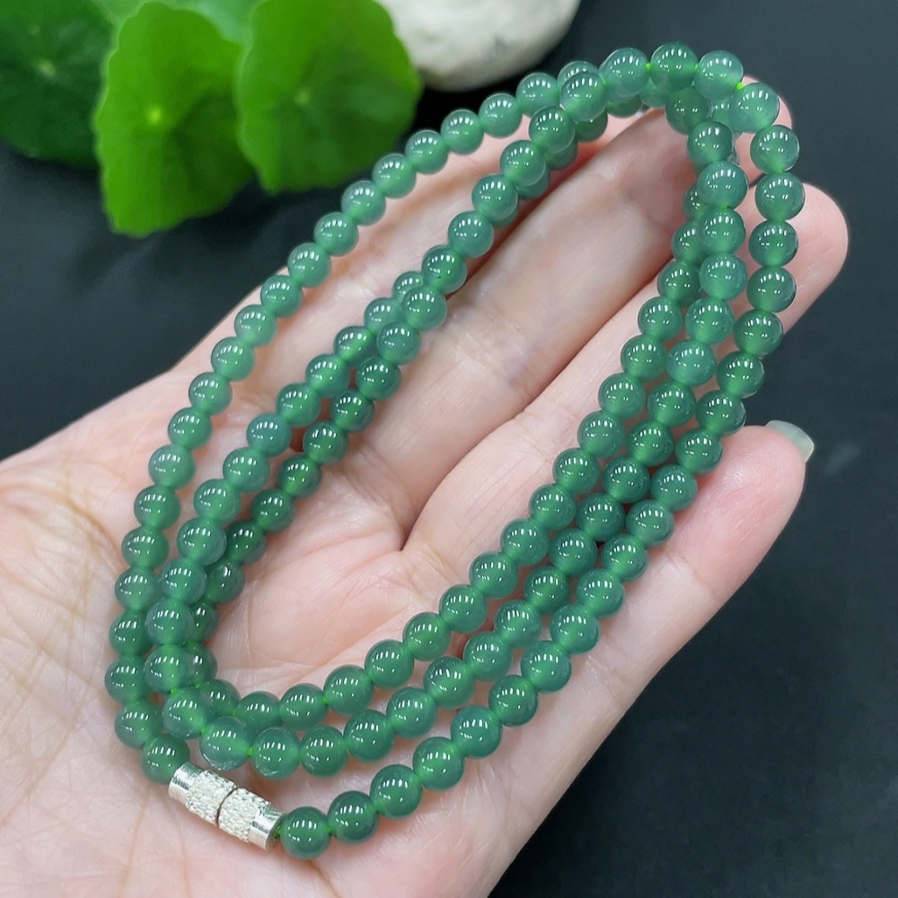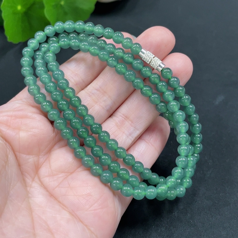 Jadeite bead necklace approx. 4.8mm (non-gold inlaid) total weight 26.340g
