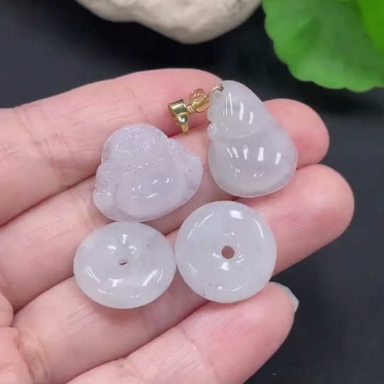 Jadeite Pendants Sell as a Lot (Non-Gold Inlaid)