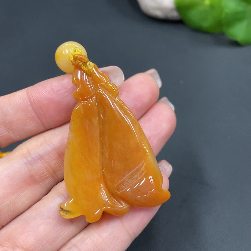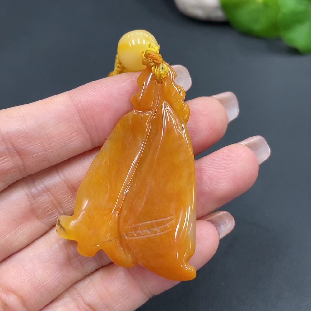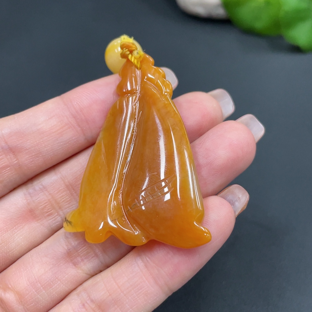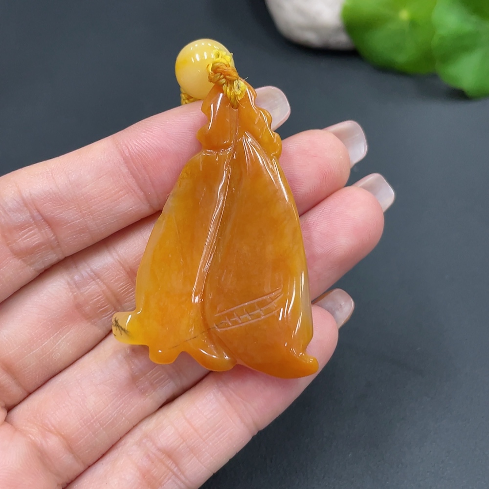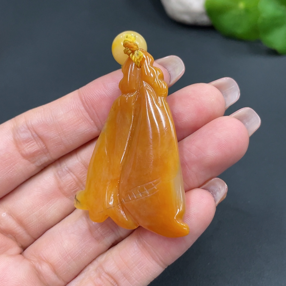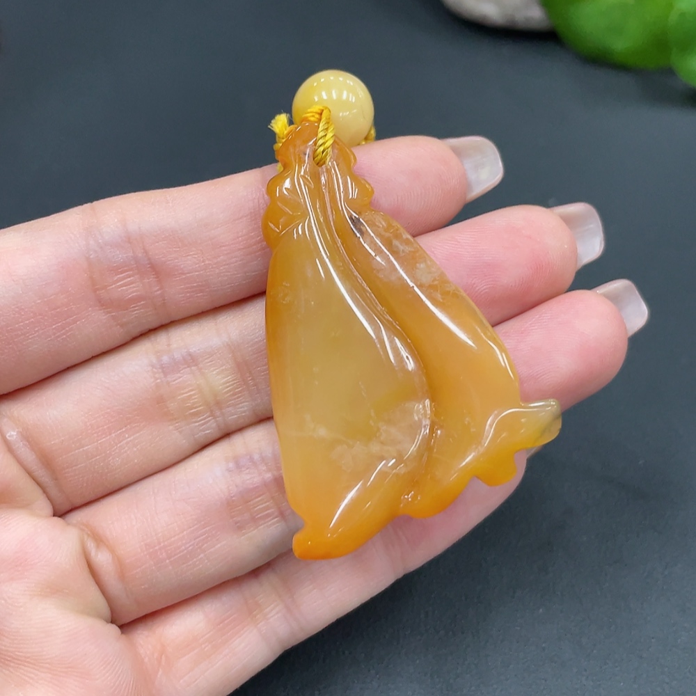 Yellow Dragon Jade Pendant - Magnolia Flower