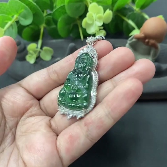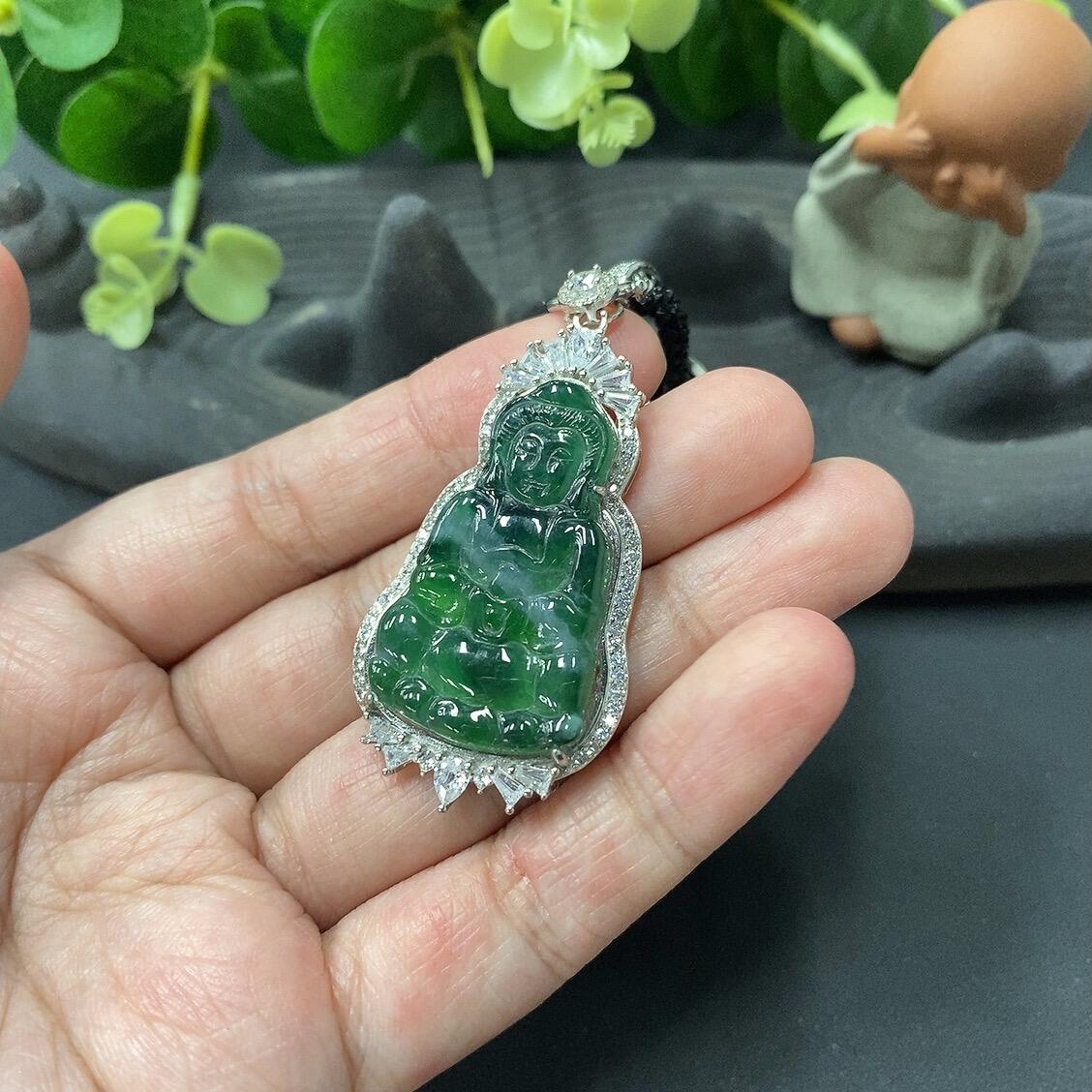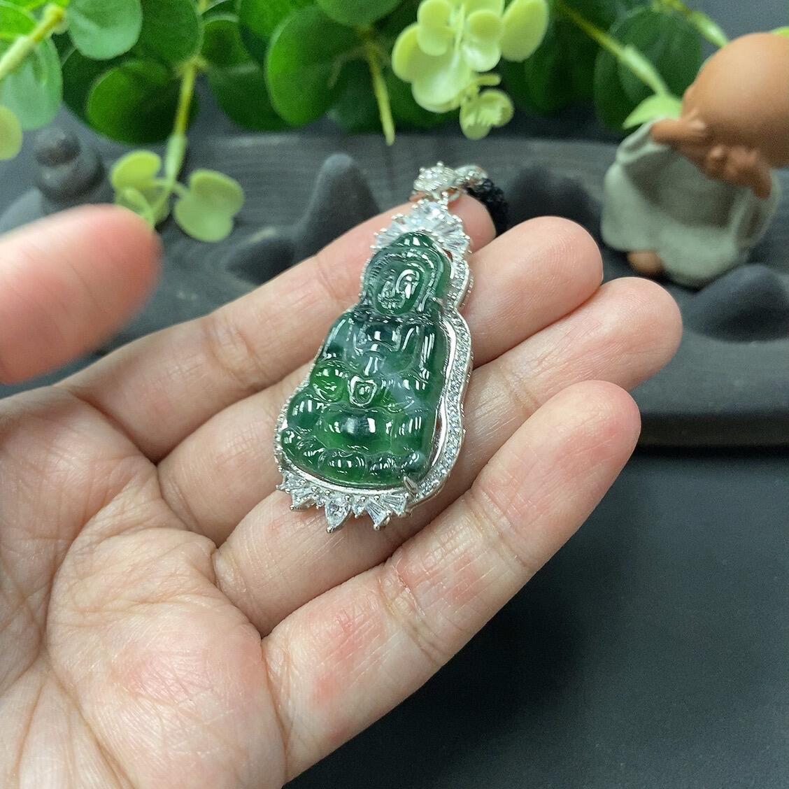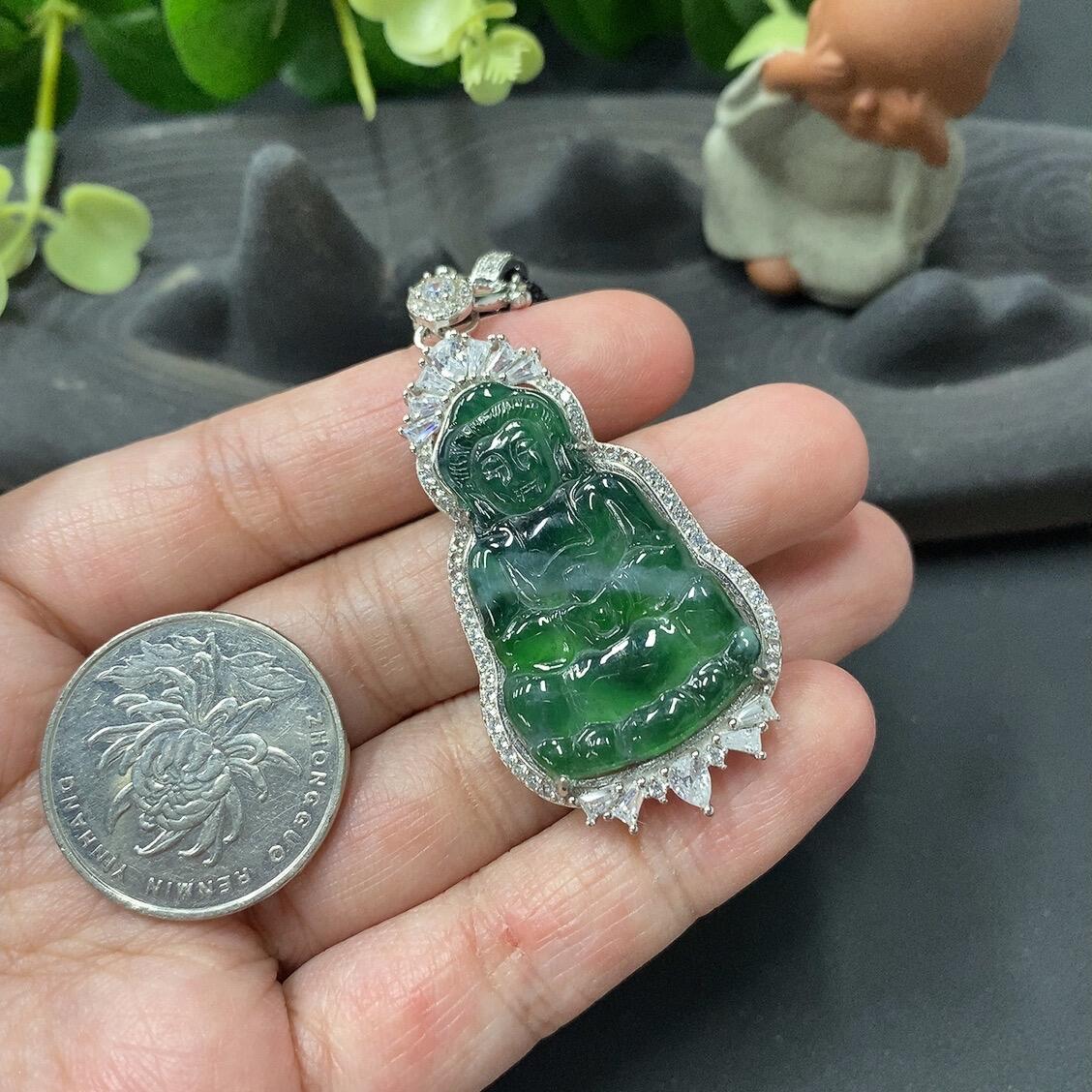 Jadeite Guanyin Pendant with Cracks (Non-Gold Inlaid)