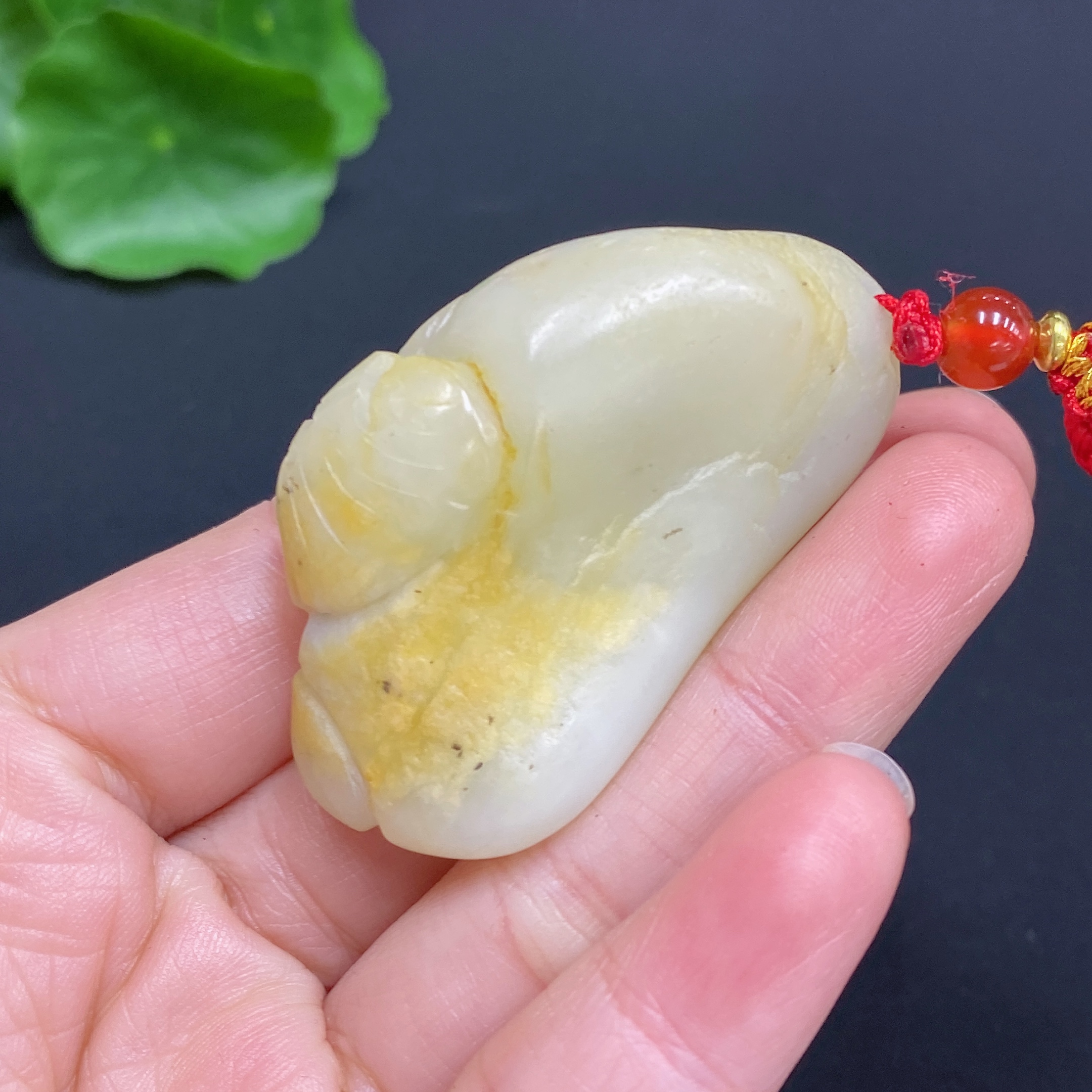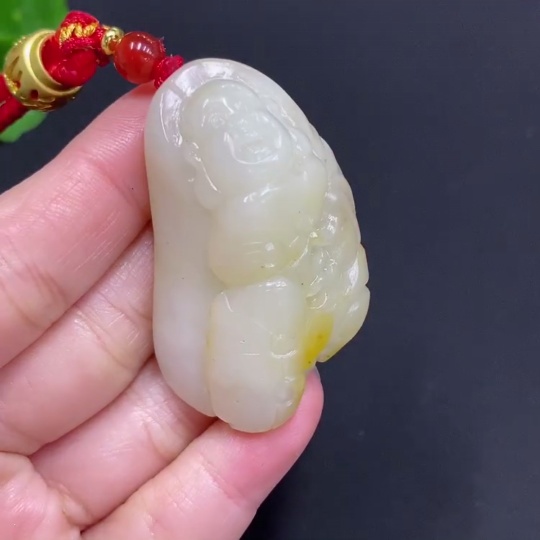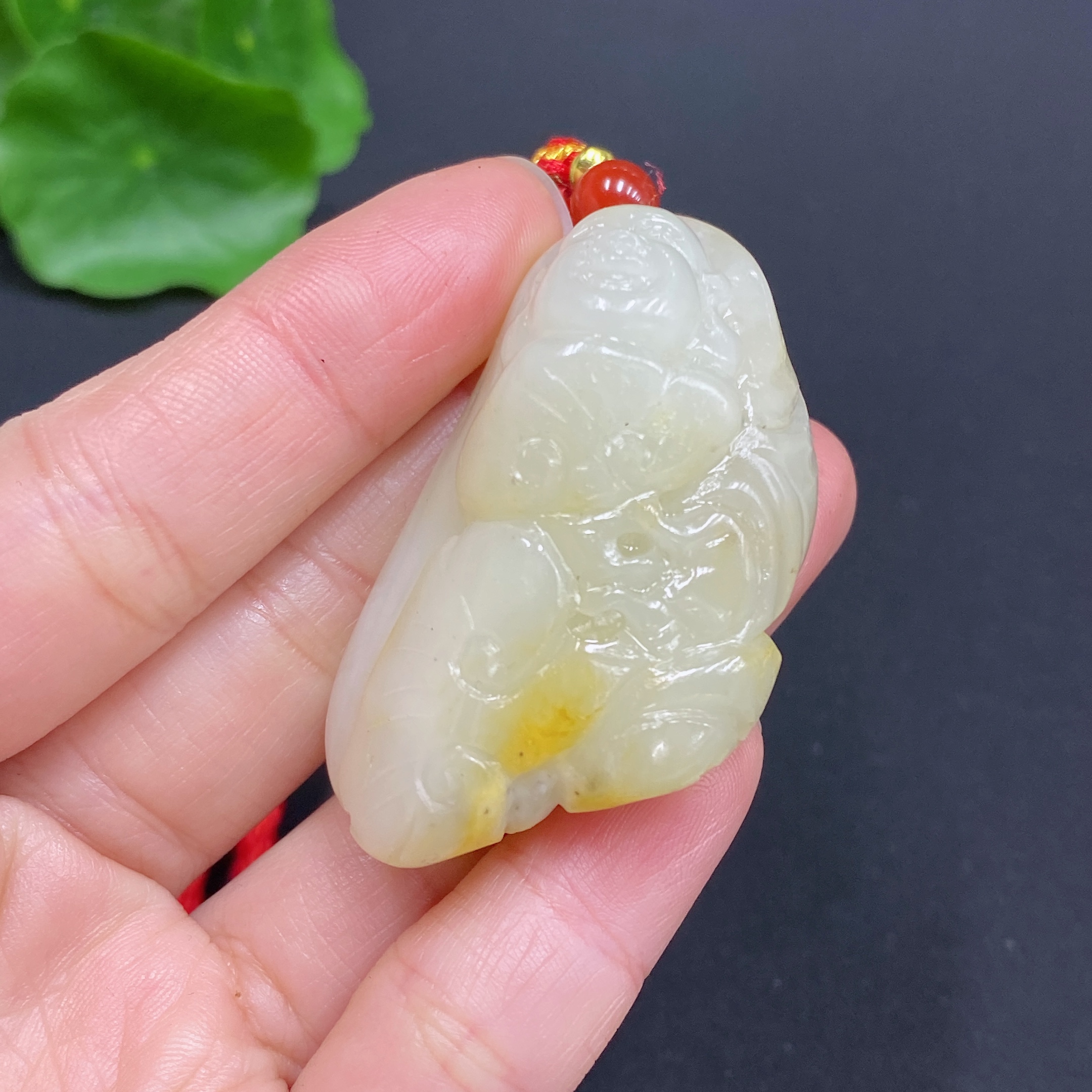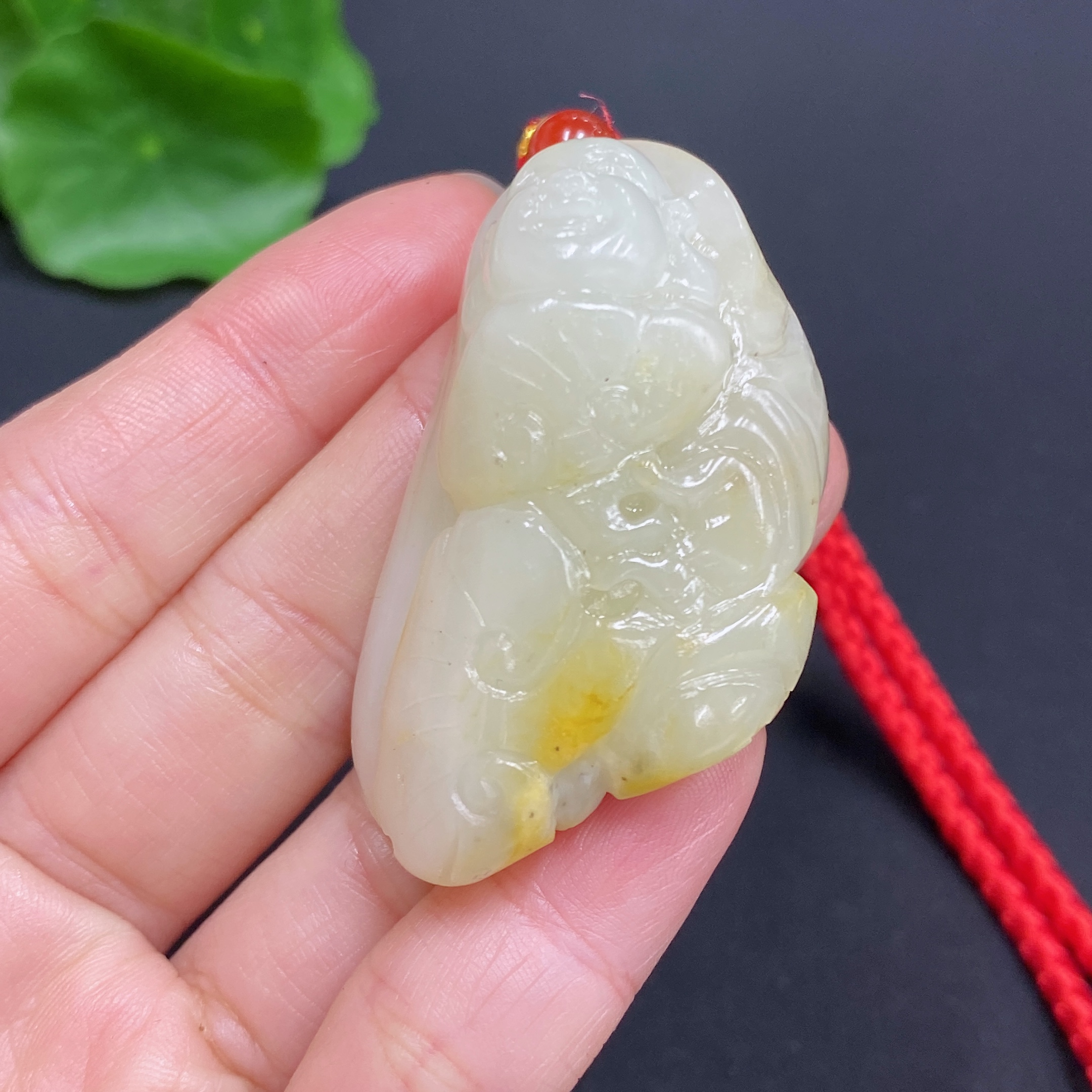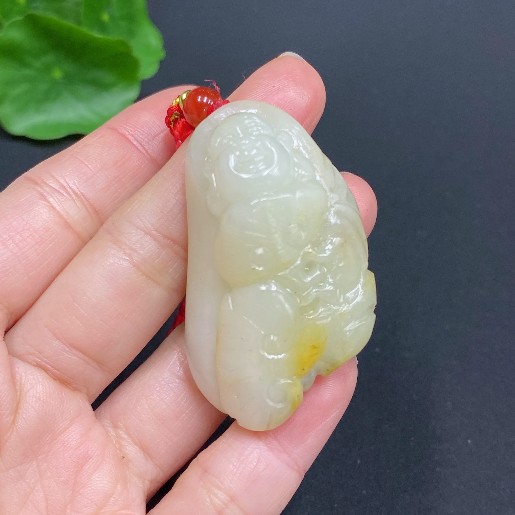 Hetian Jade Handheld Piece Buddha Total Weight (including rope) Approx. 39.5g Undetermined Skin Color Origin