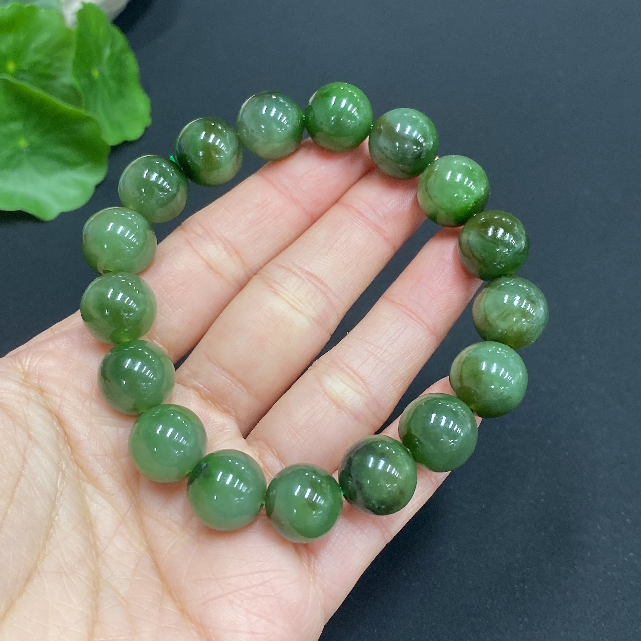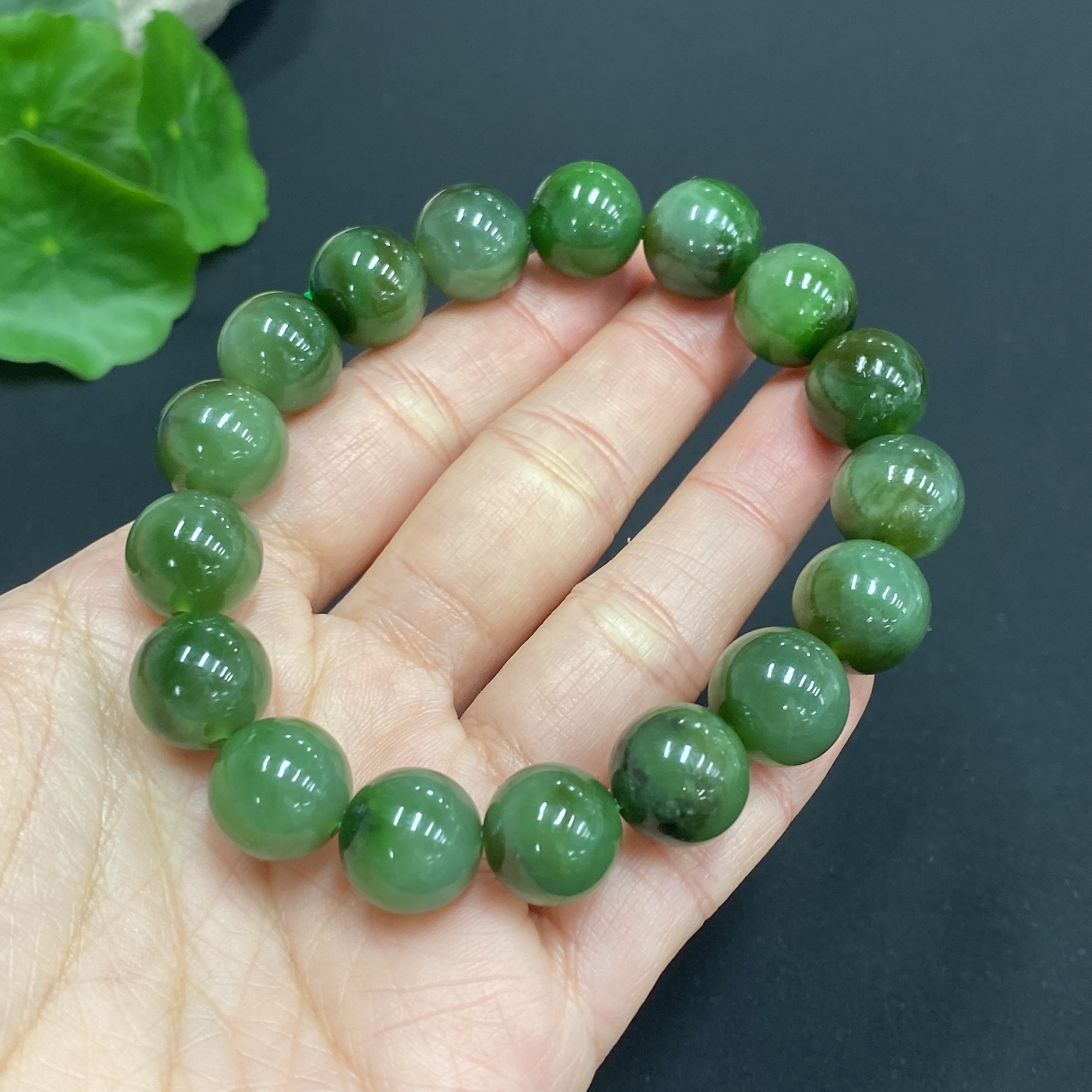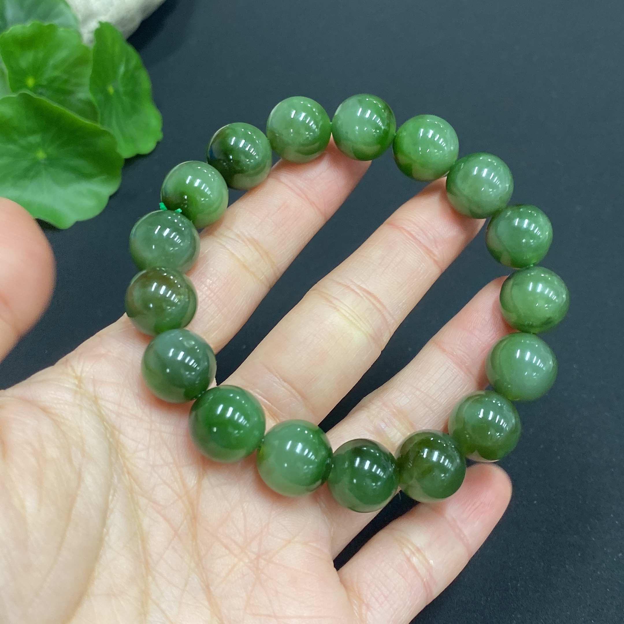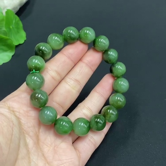 Hetian Jade Bracelet, Approx. 11.8mm Beads, Total Weight About 45.2g