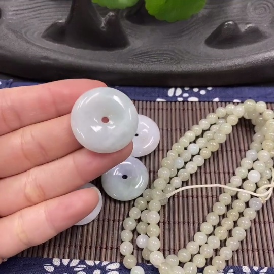 Jadeitependant, peace buckle, with cracks, bead chain, some beads have cracks, approximately 5.8mm