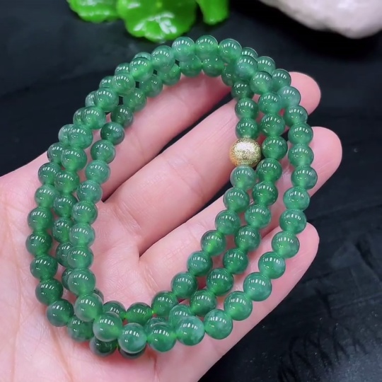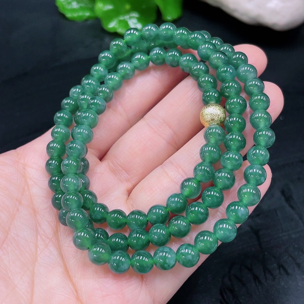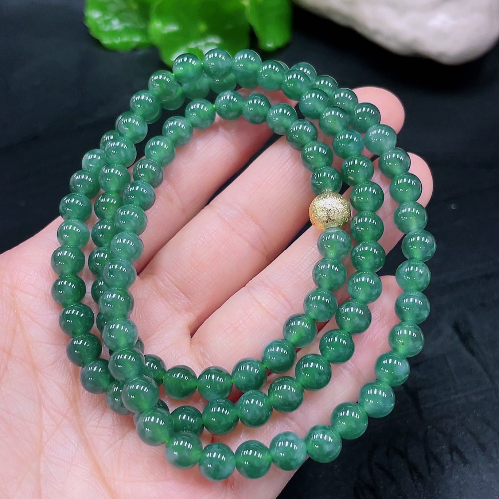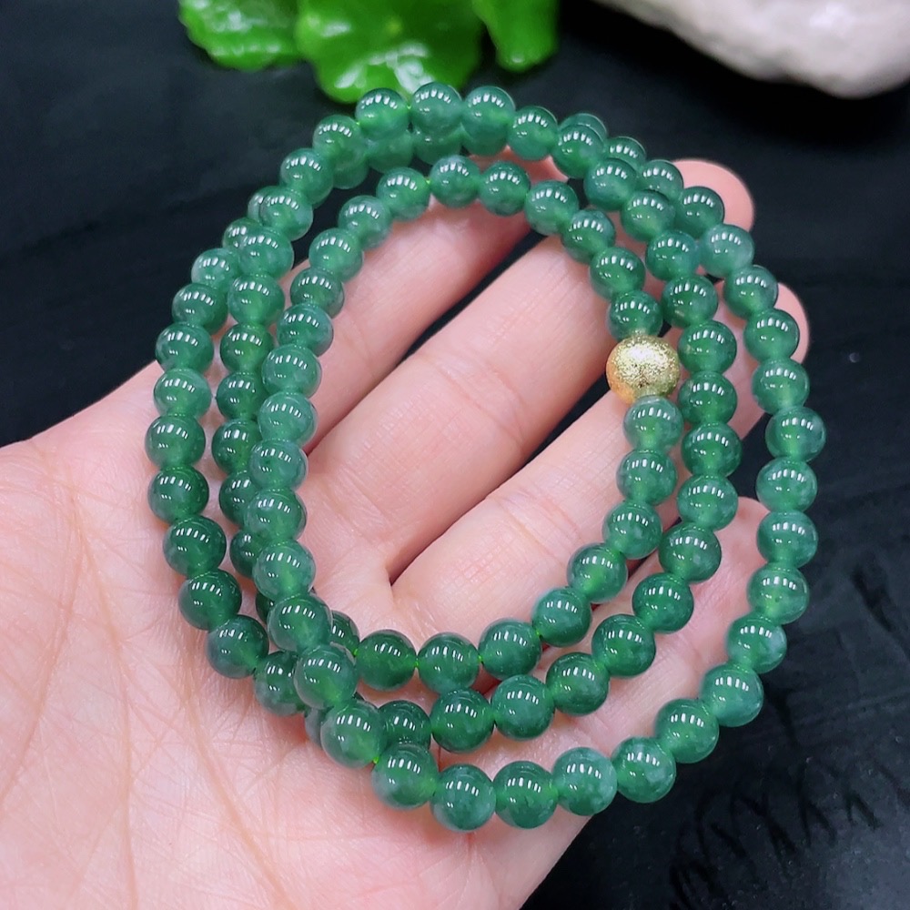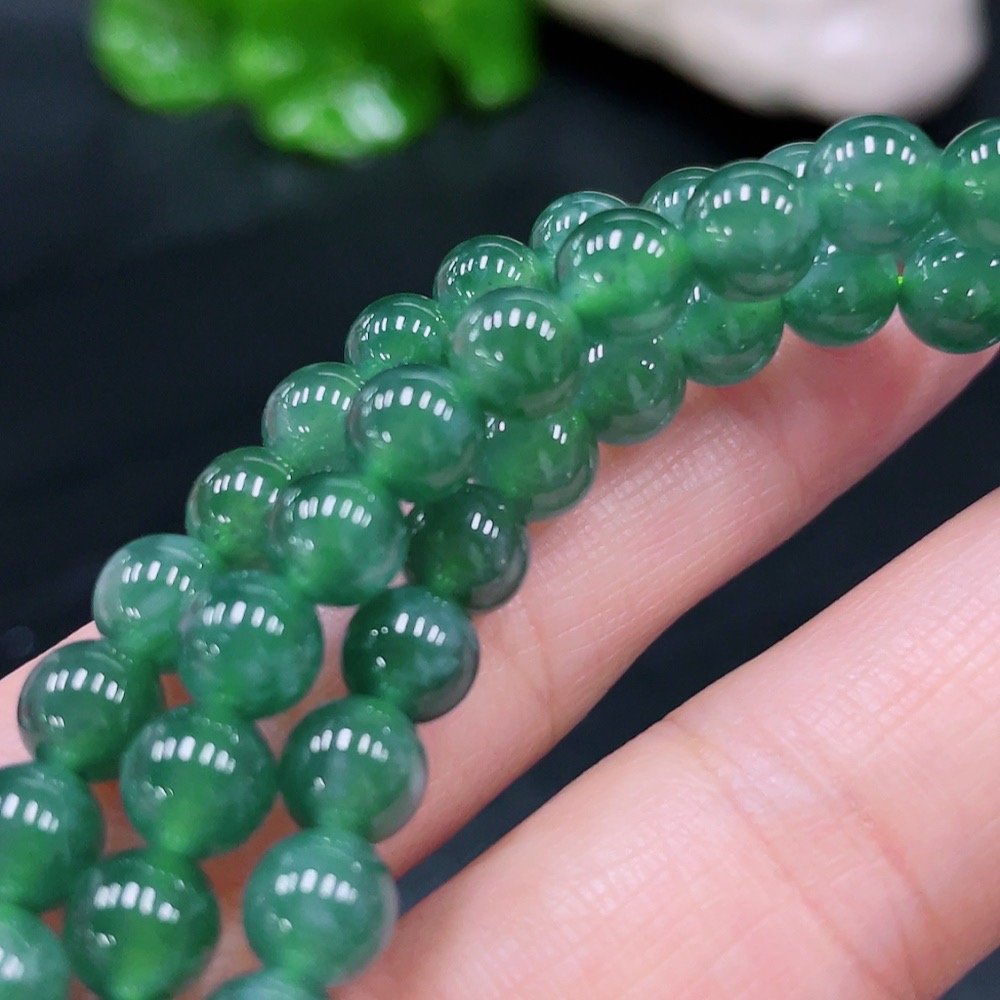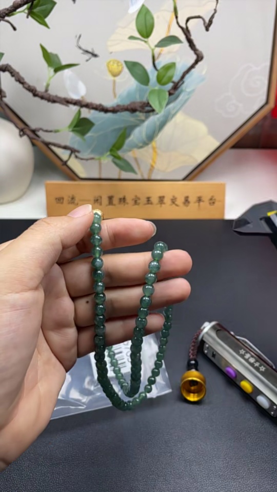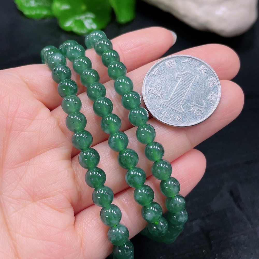 Jadeite Beaded Necklace Approx. 6.3mm Non-gold Inlaid Total Weight Approx. 43.8g