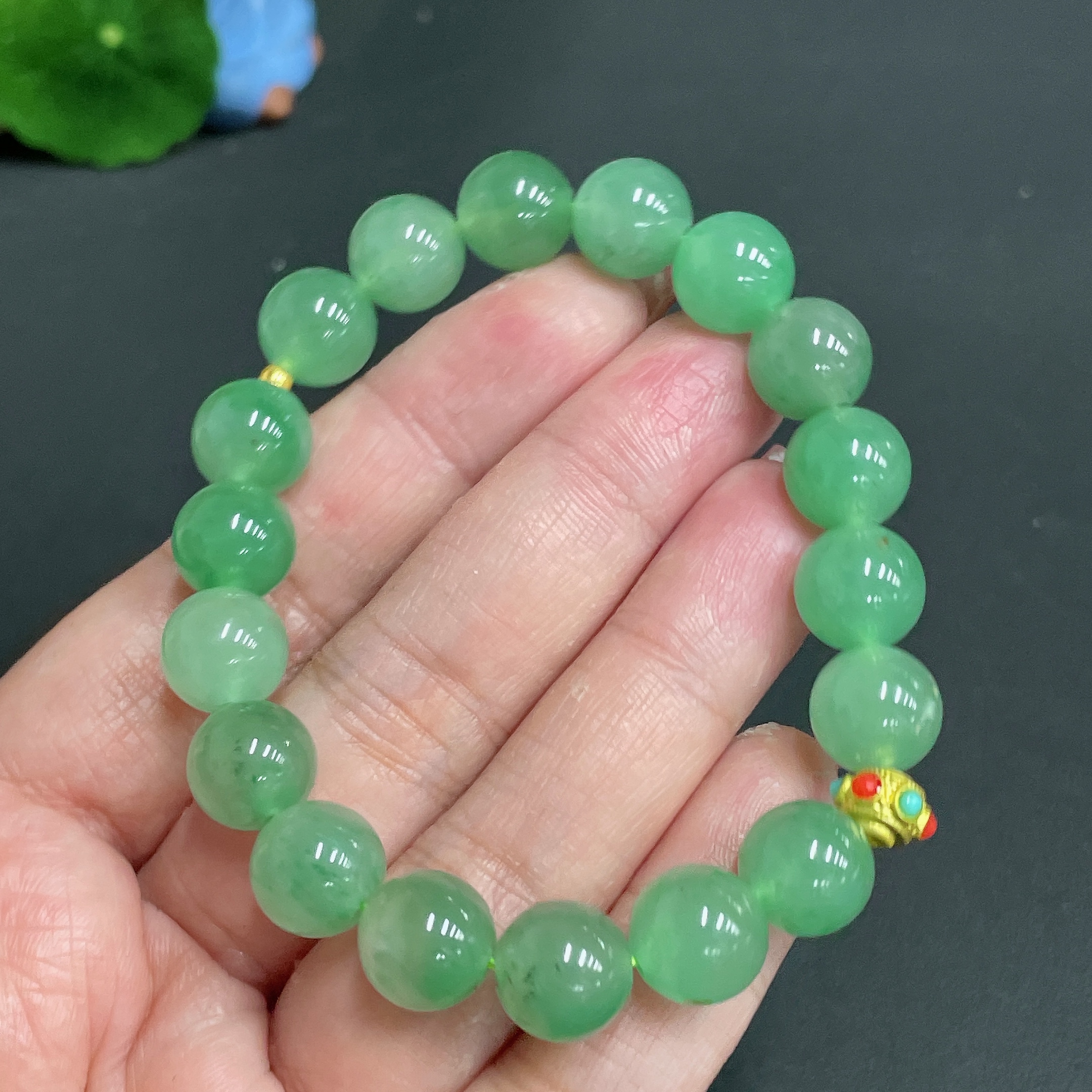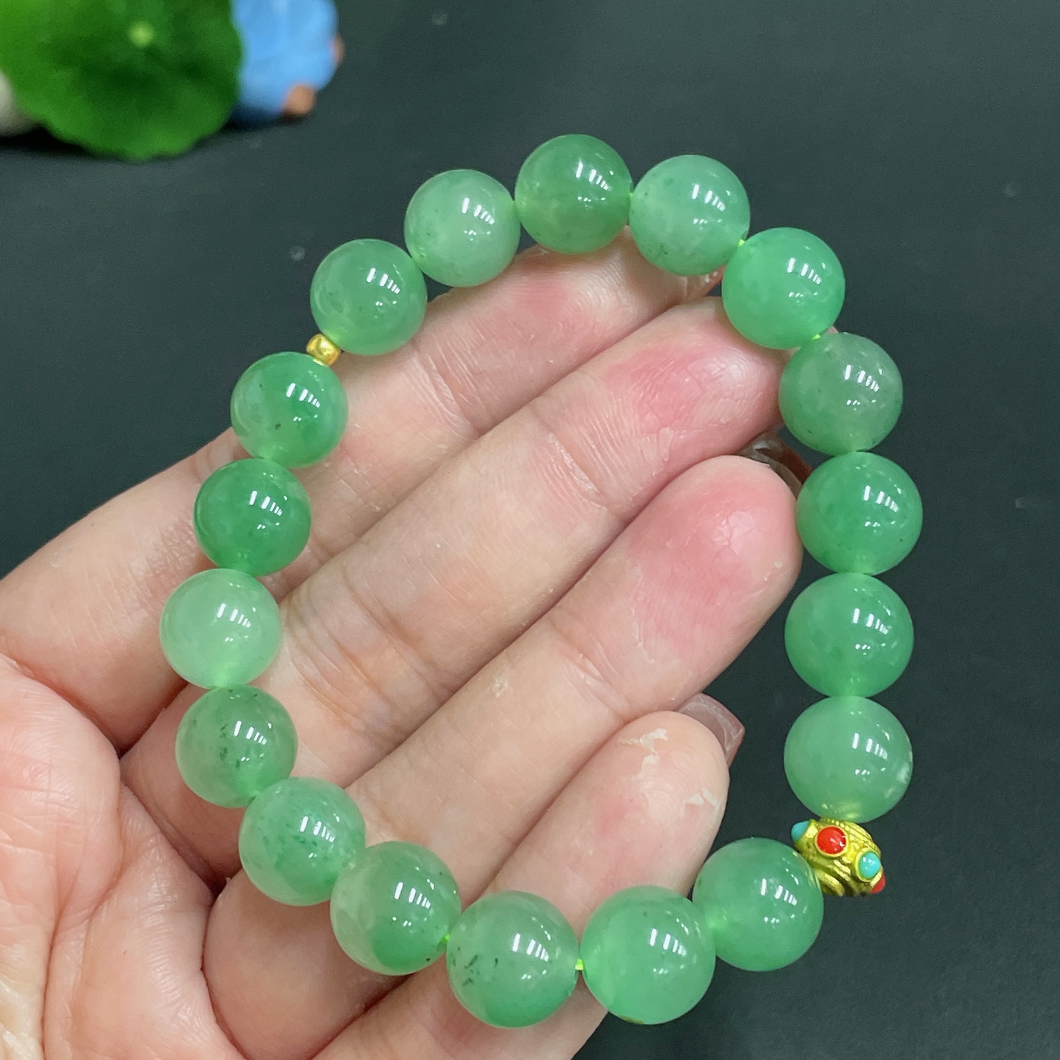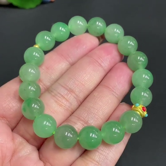 Dulong Jade Bracelet, approx. 10.1mm, total weight approx. 28.1g, round beads with 99% gold content, the rest non-gold