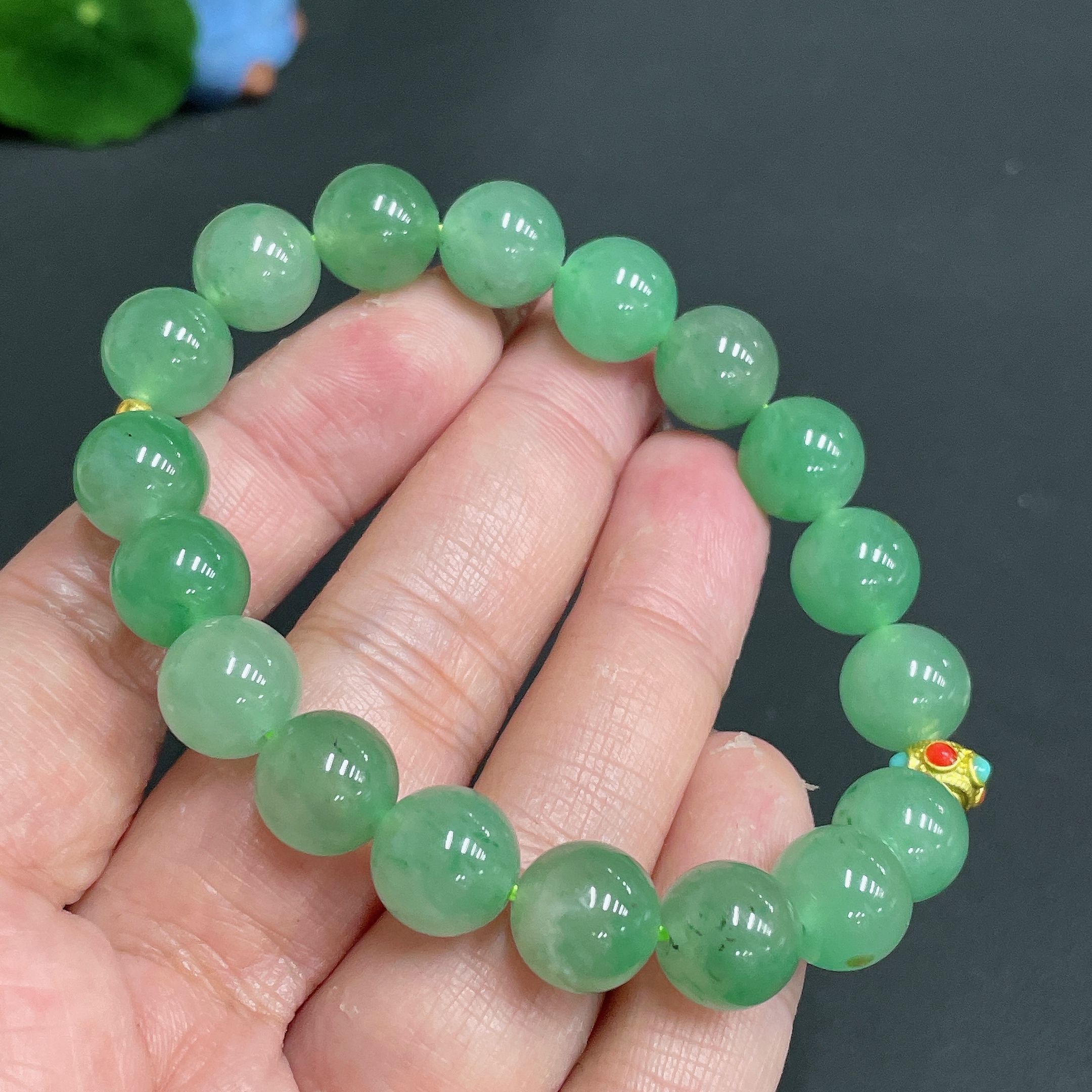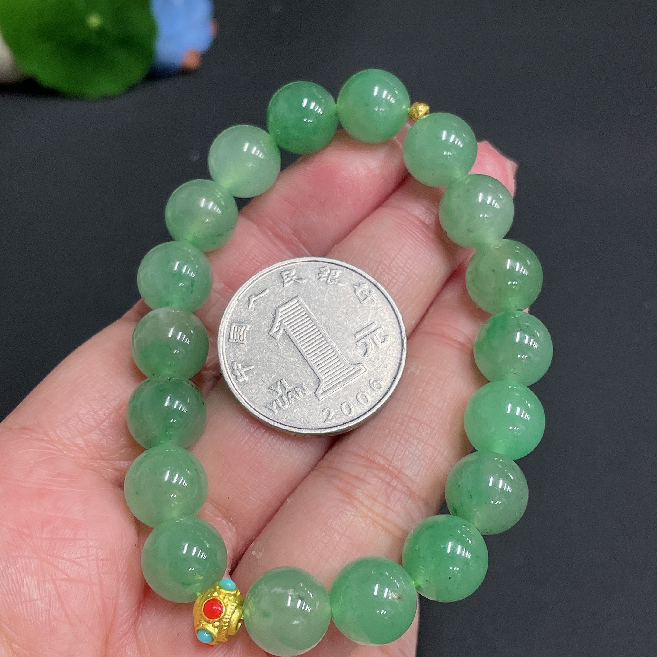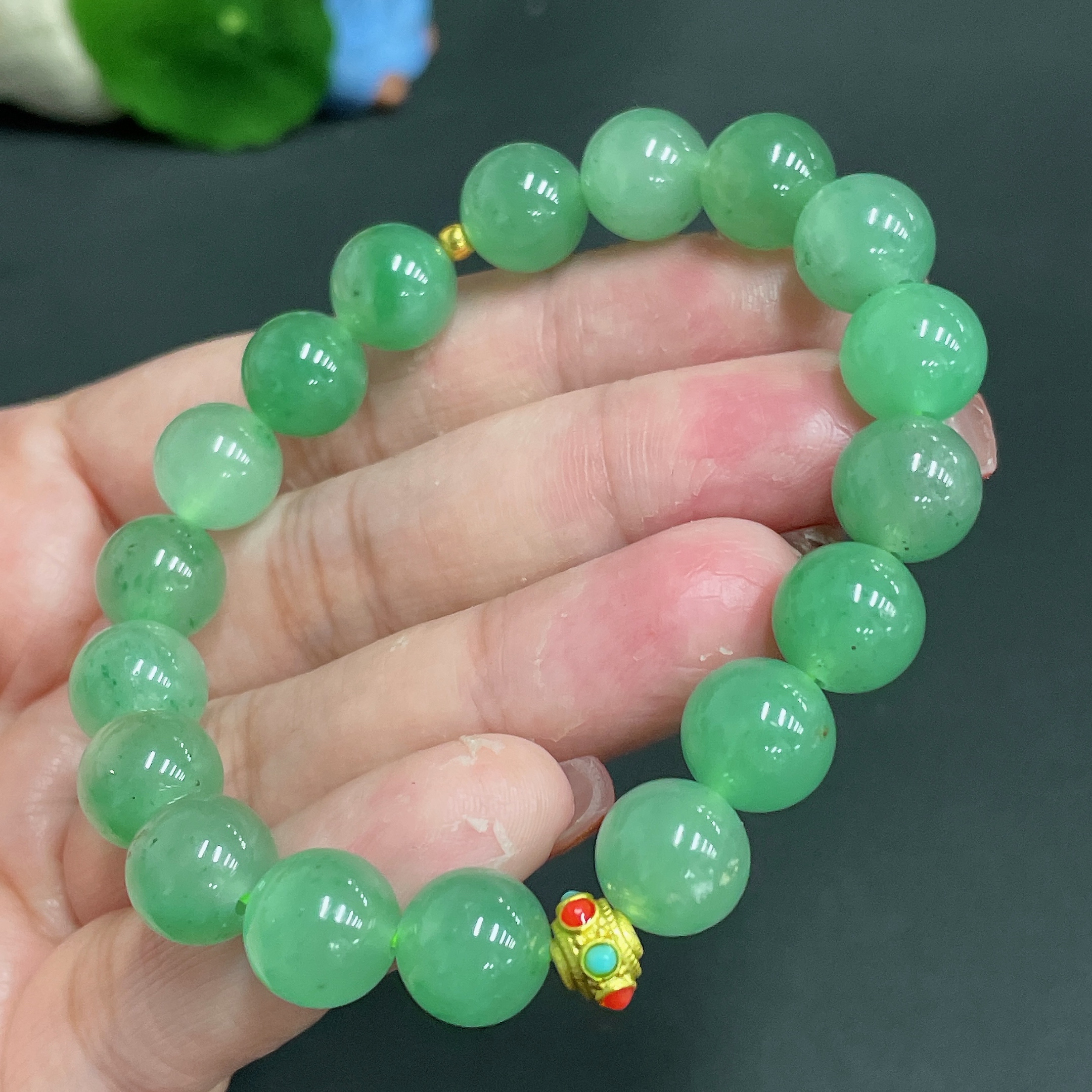 Dulong Jade Bracelet, approx. 10.1mm, total weight approx. 28.1g, round beads with 99% gold content, the rest non-gold