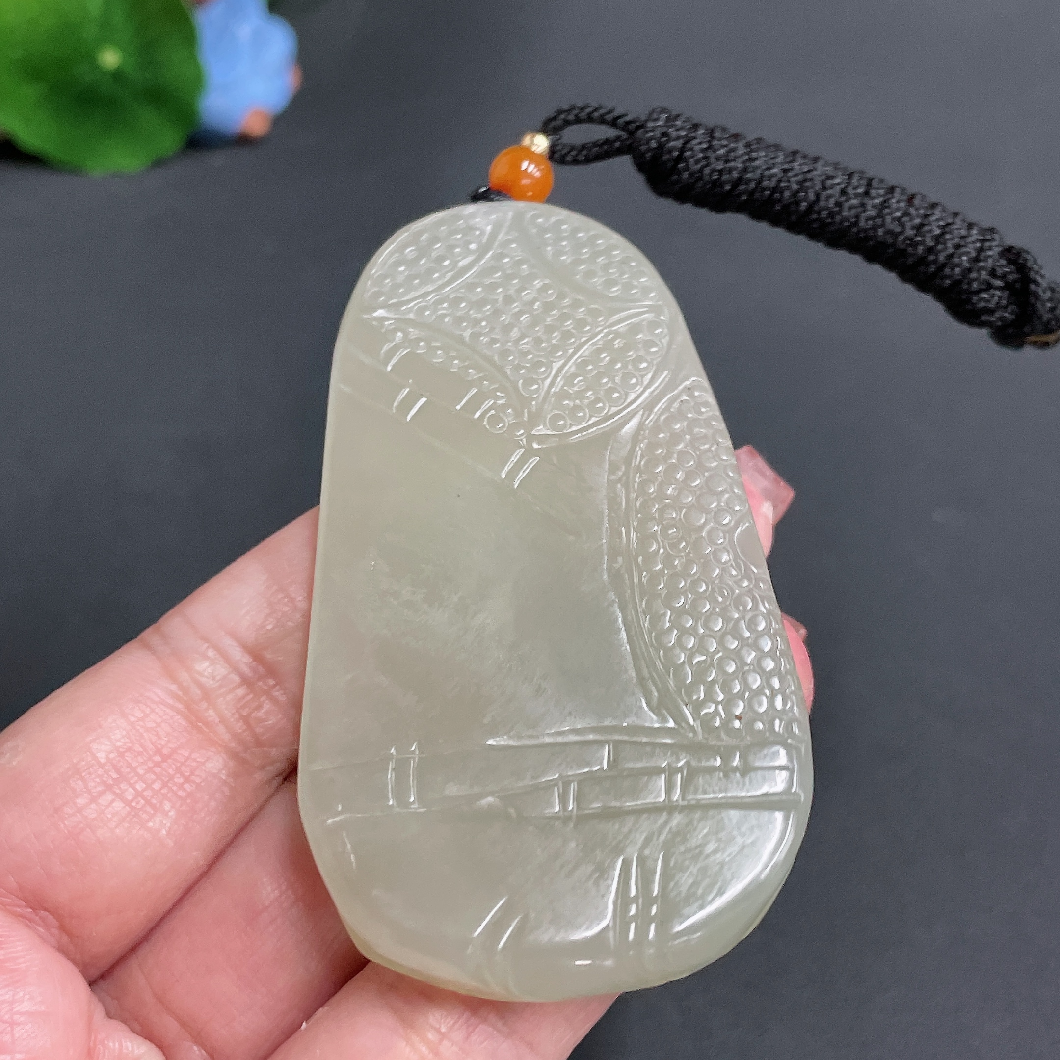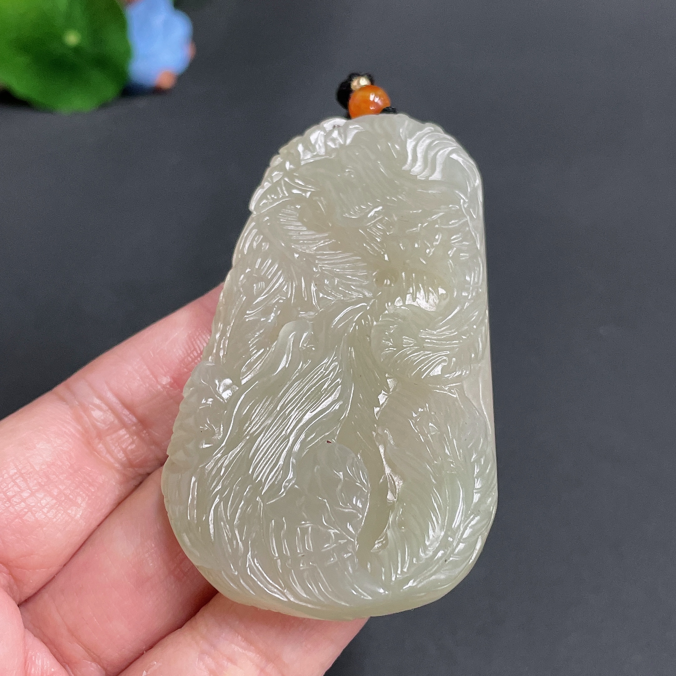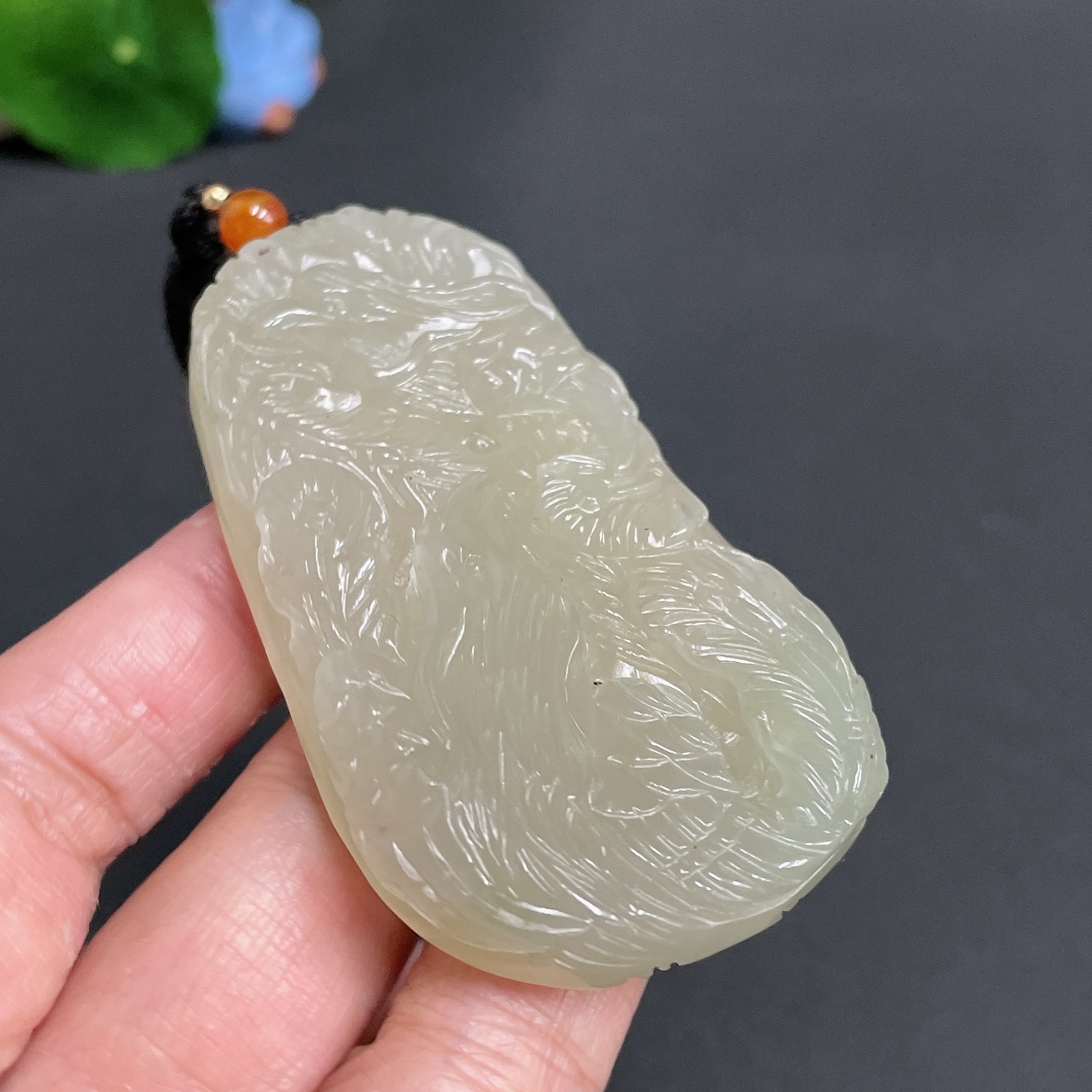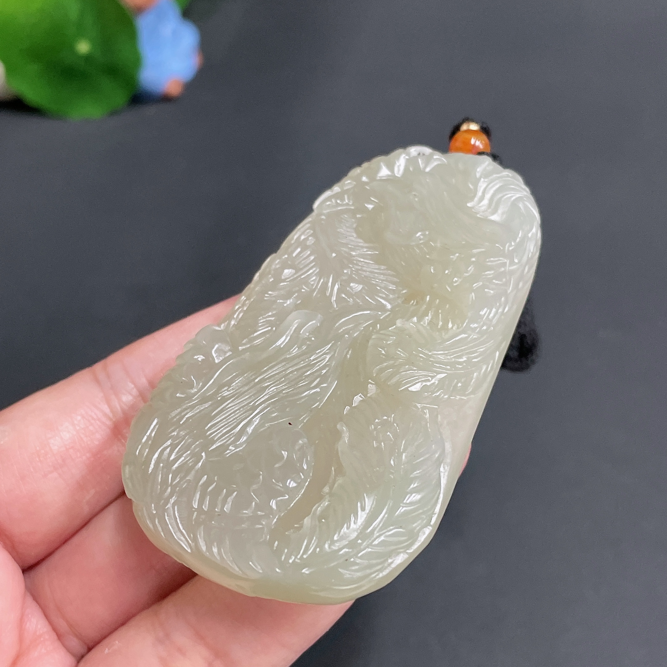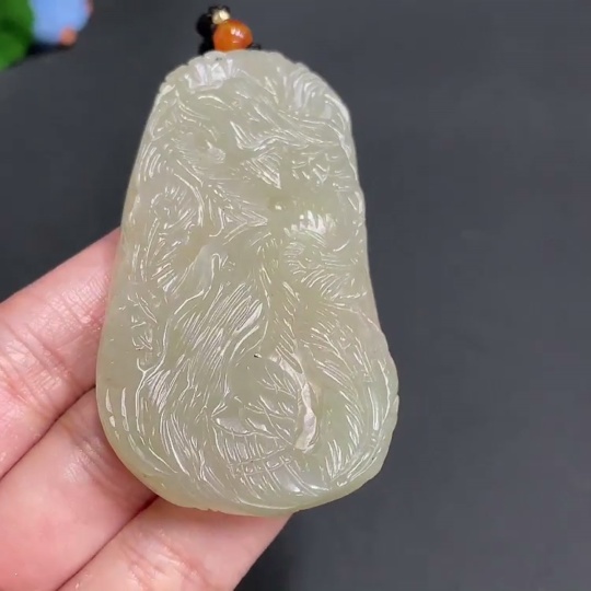 Hetian Jade Pendant, Phoenix, Total Weight Approx. (Including Rope) 55.7g