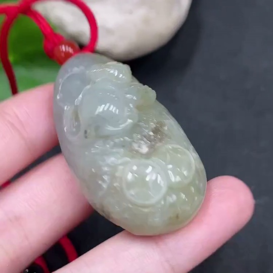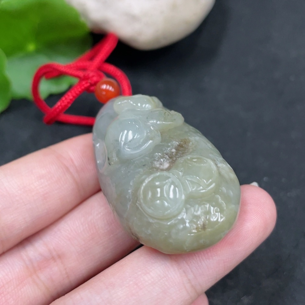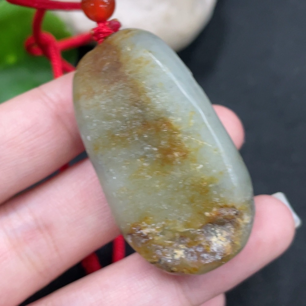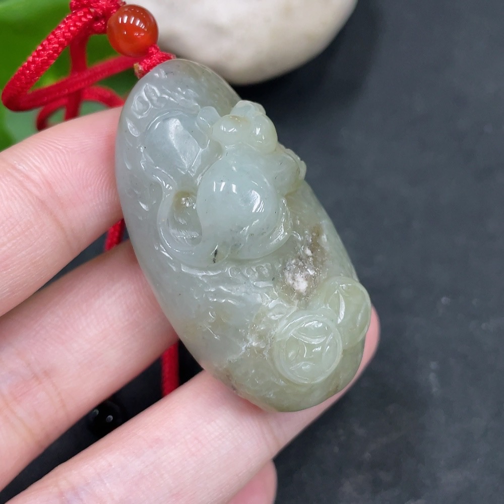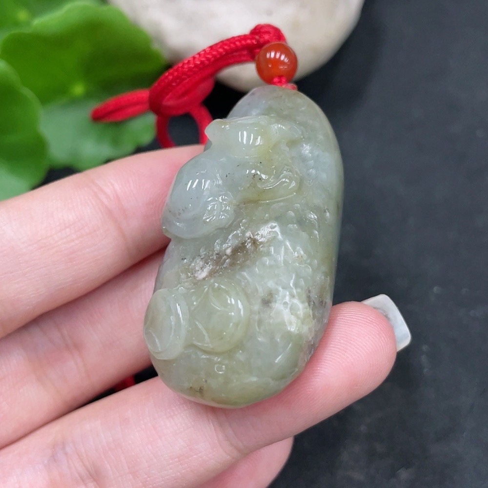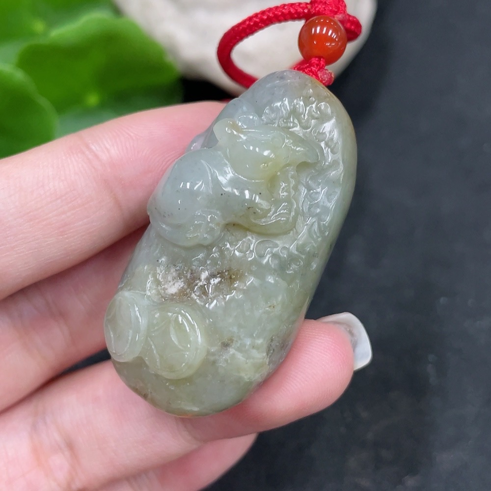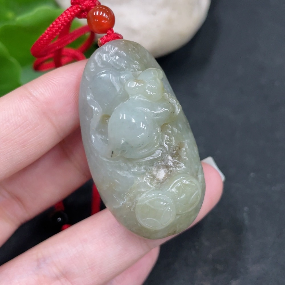 Hetian Jade Seed Material Pendant "Wealth from the Rat" with Undetermined Skin Color Formation, Total Weight Approx. (Including String) 36.3g