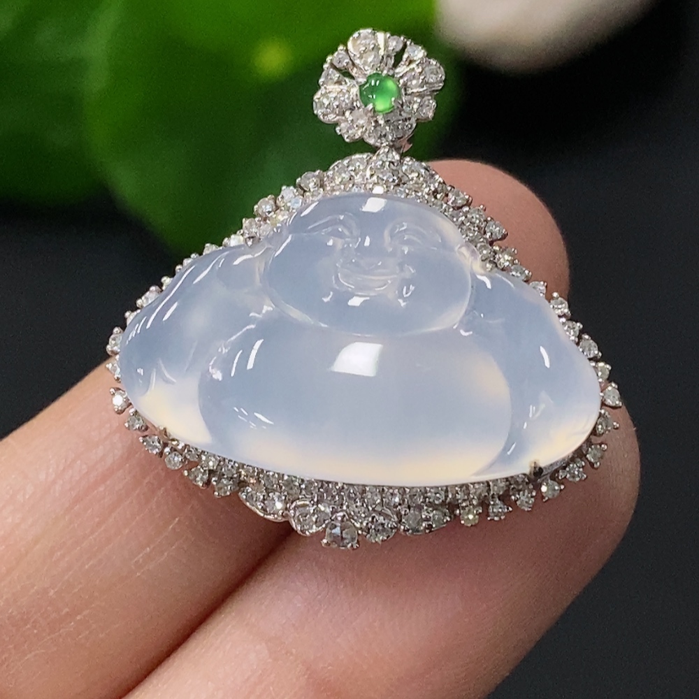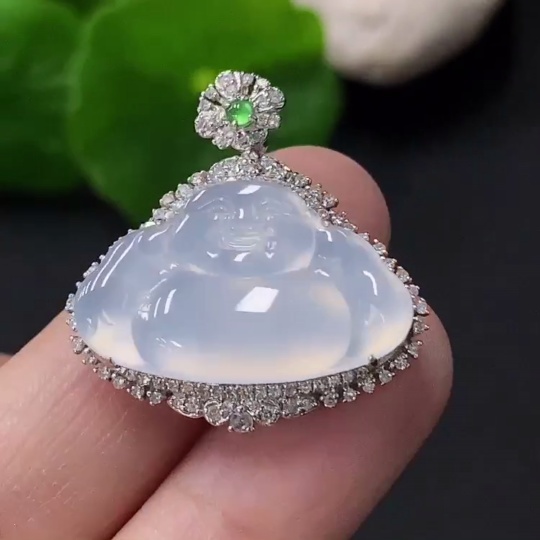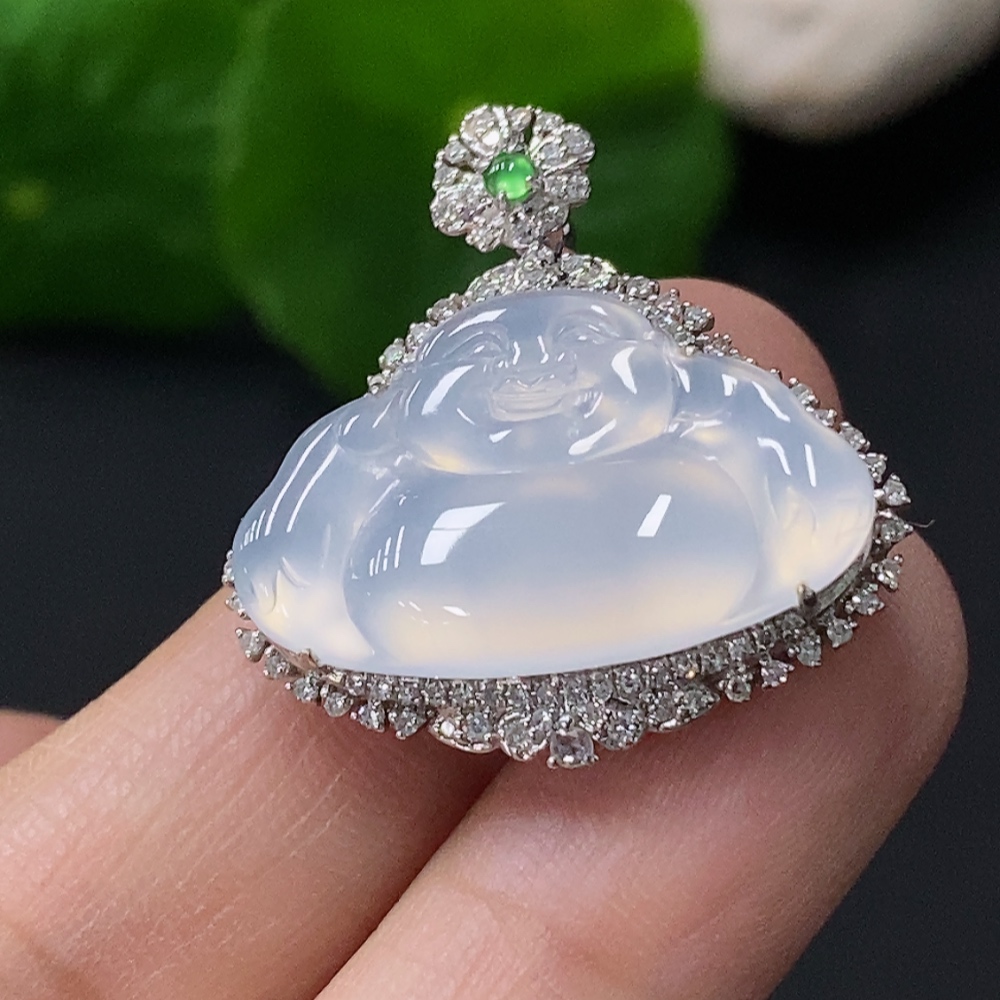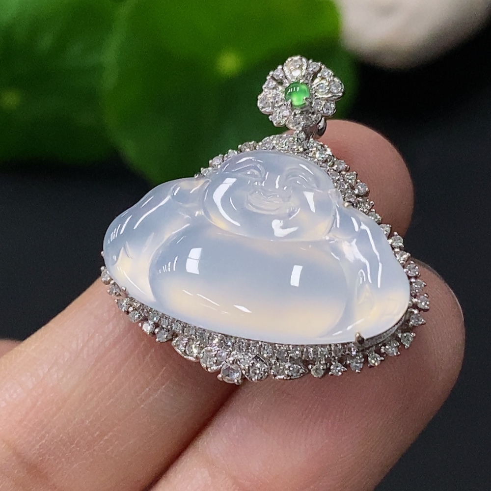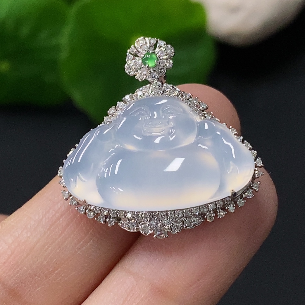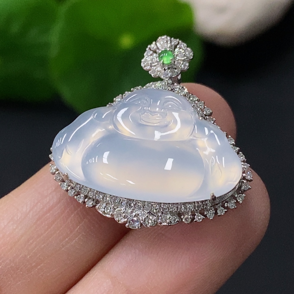 Jadeite Buddha Pendant with 18k Gold Setting, Total Weight Approx. 4.96g