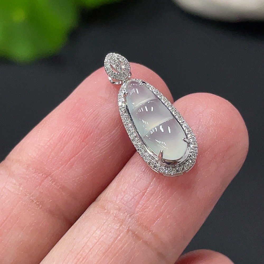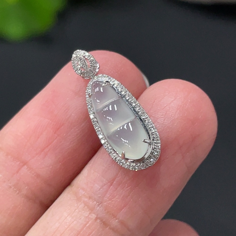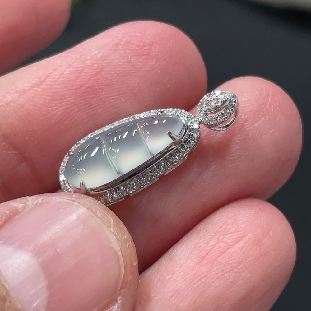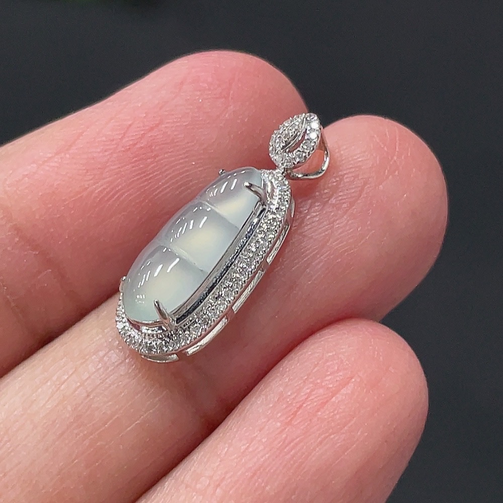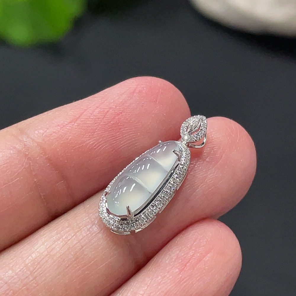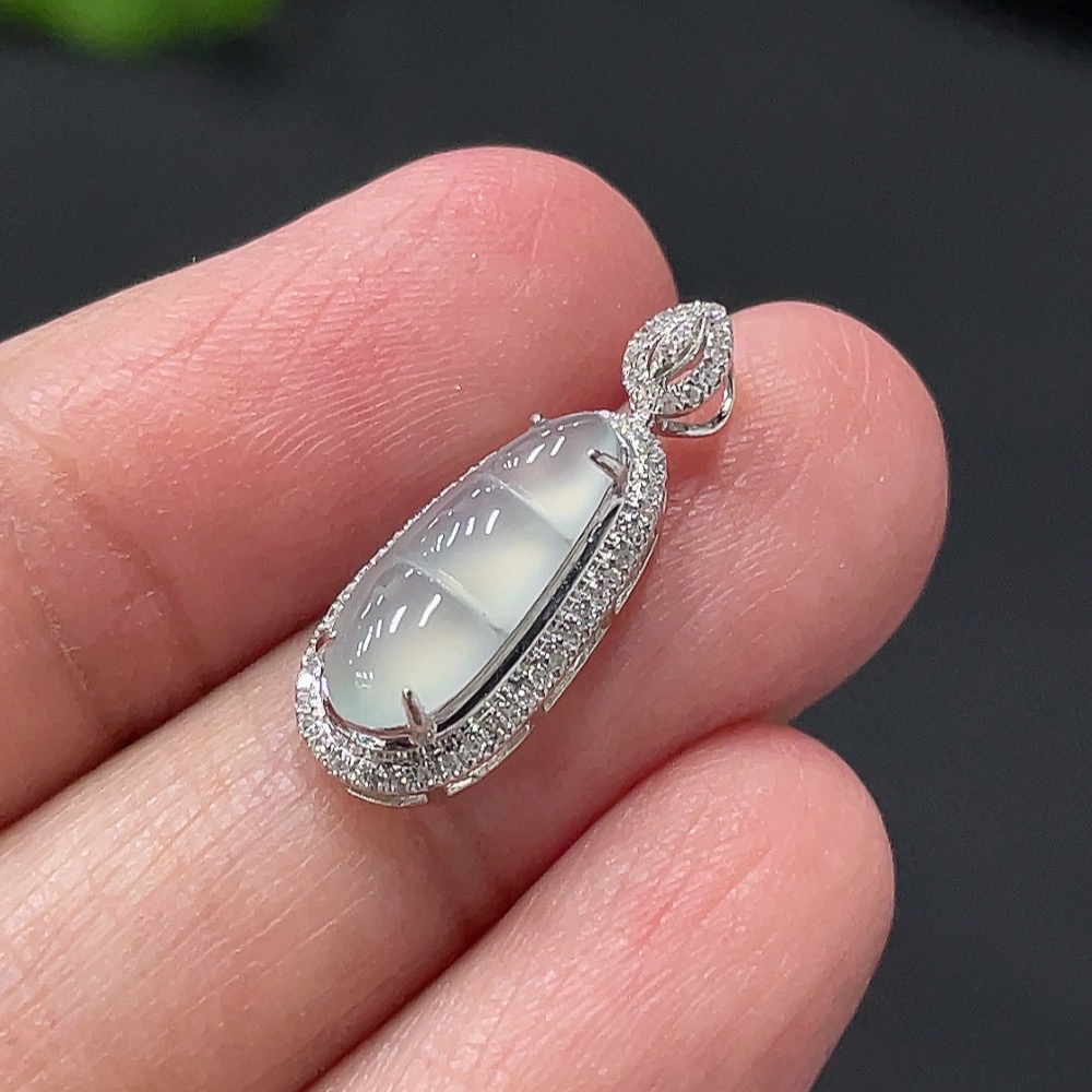 Jadeite Lucky Bean Pendant with 18K Gold Setting, Approx. 0.9g