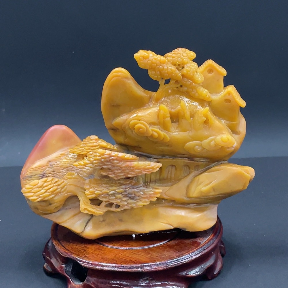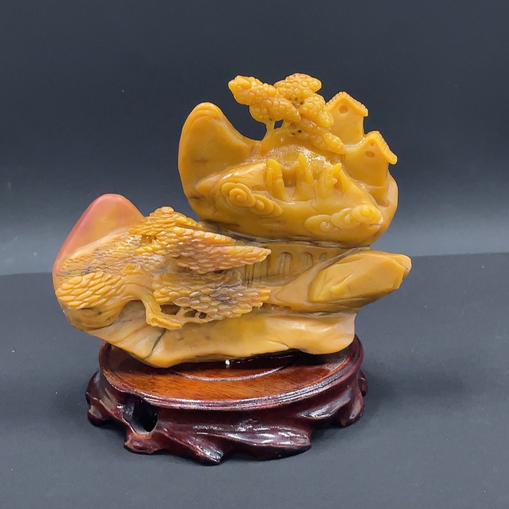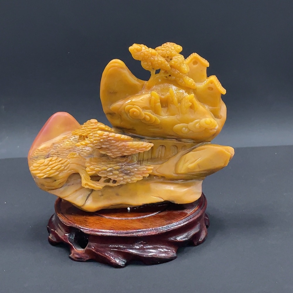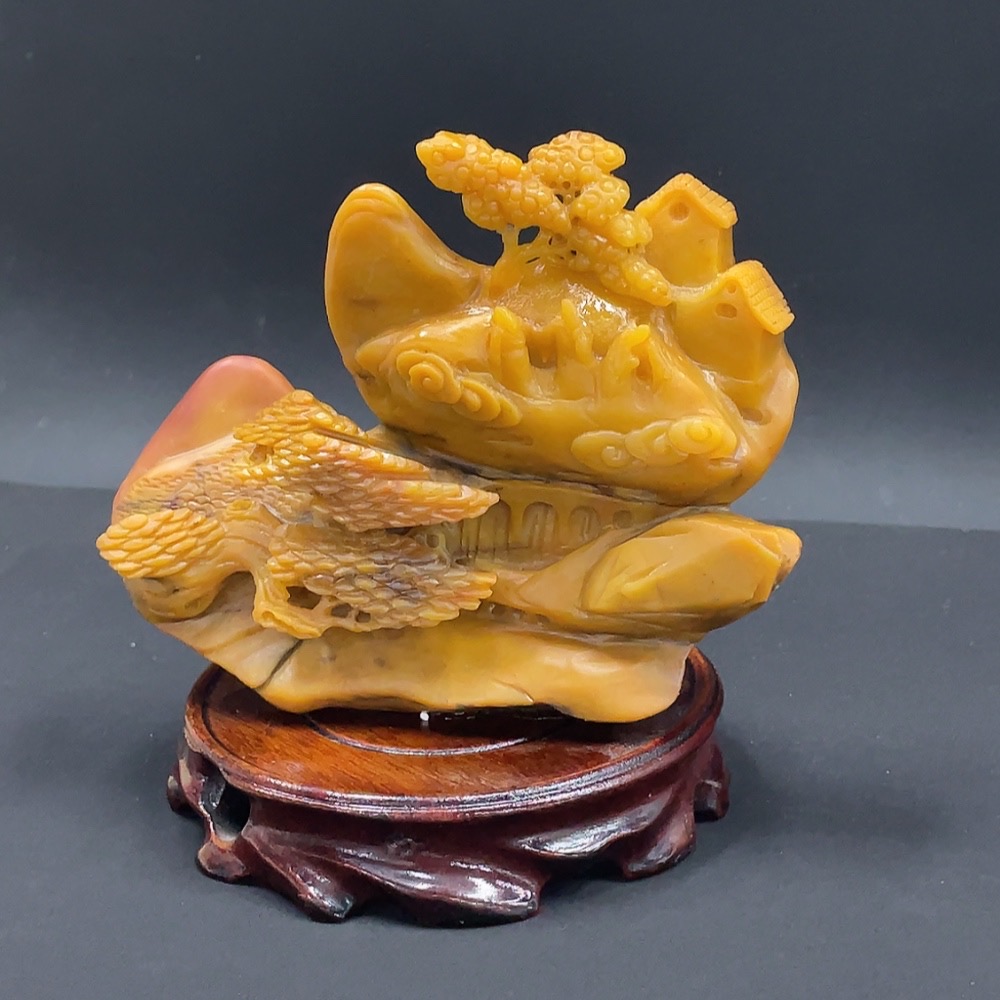 Yellow Dragon Jade Ornament - Landscape, Total Weight (Including Base) Approx. 700g