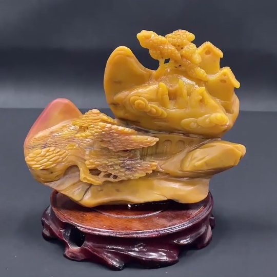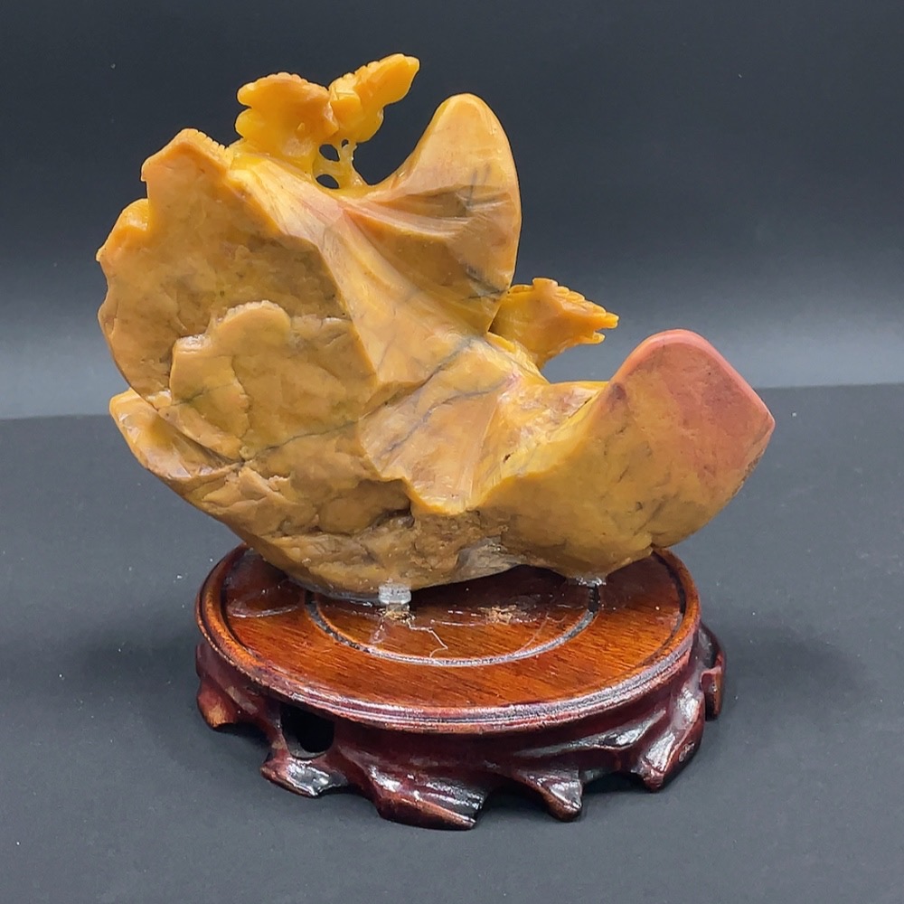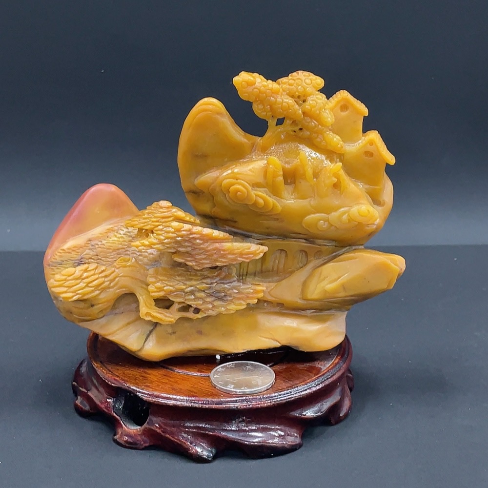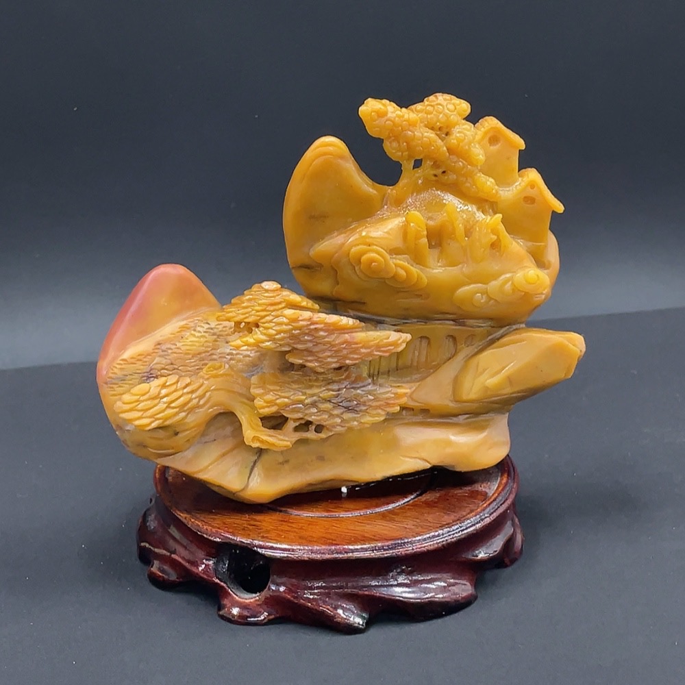 Yellow Dragon Jade Ornament - Landscape, Total Weight (Including Base) Approx. 700g