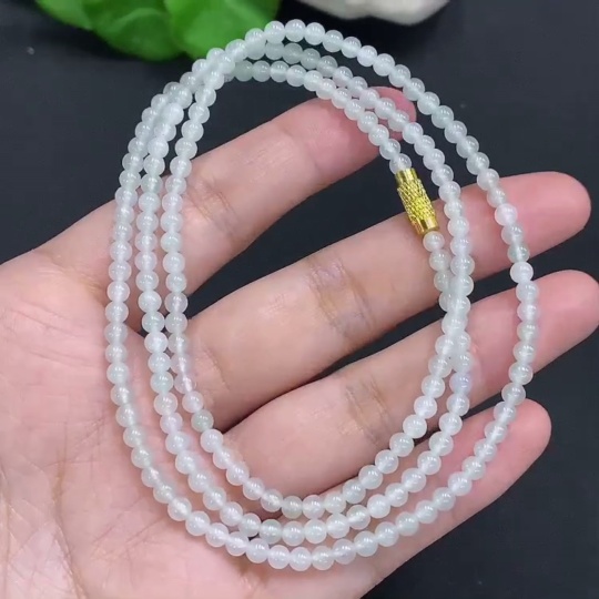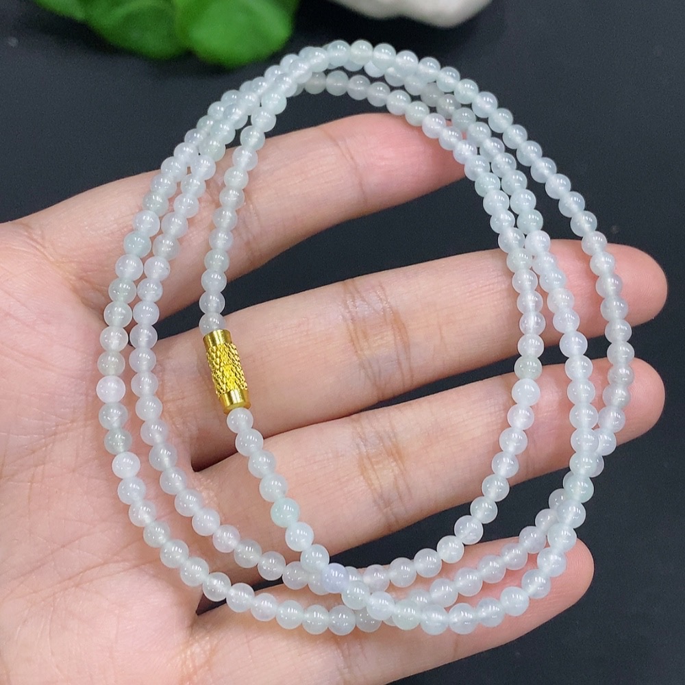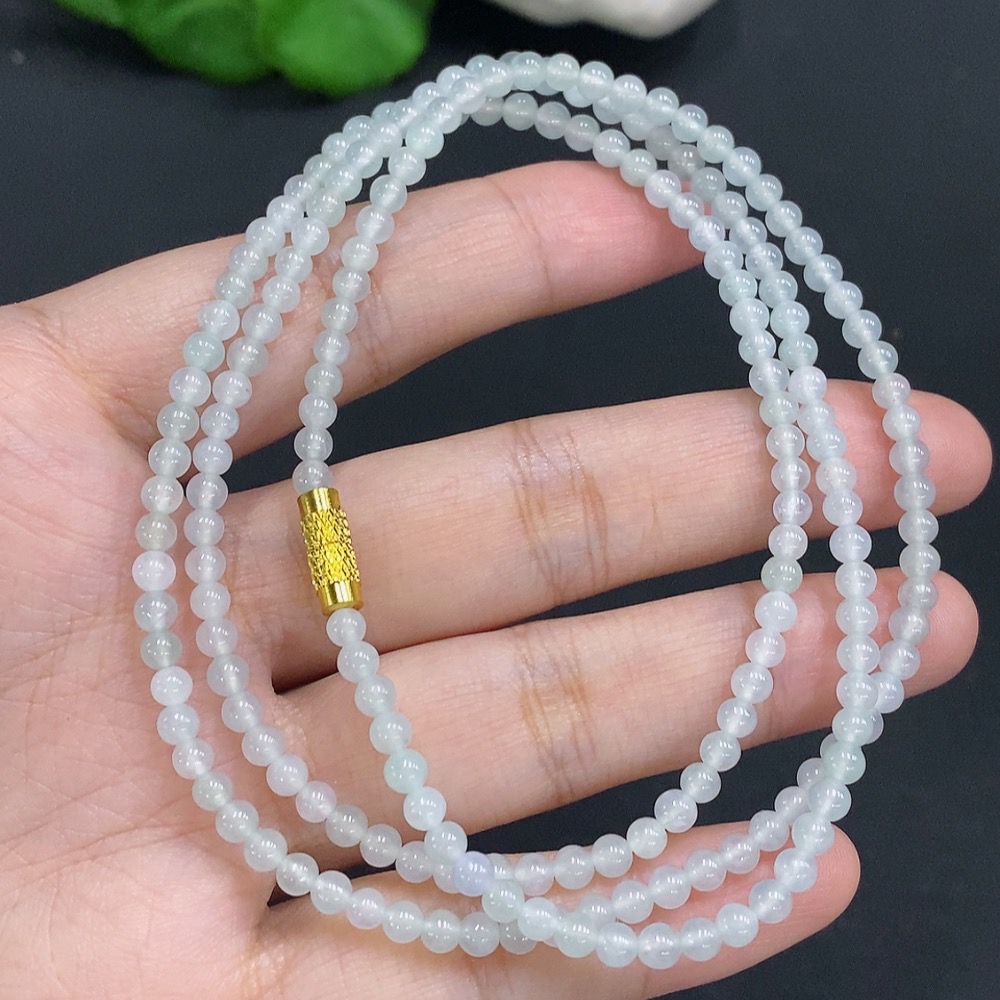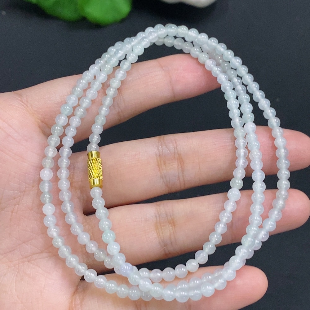 Jadeite Beaded Necklace Approx. 3.5mm Non-Gold Total Weight Approx. 15.8g