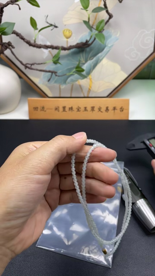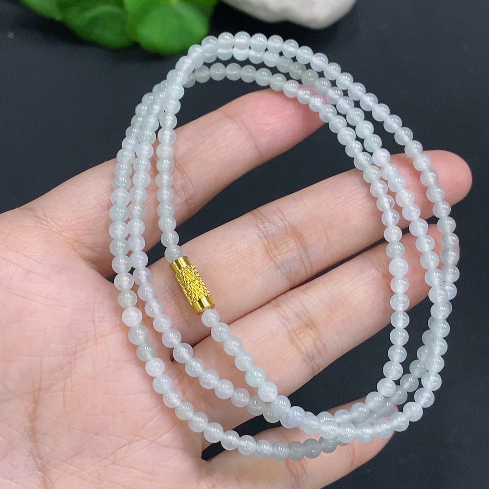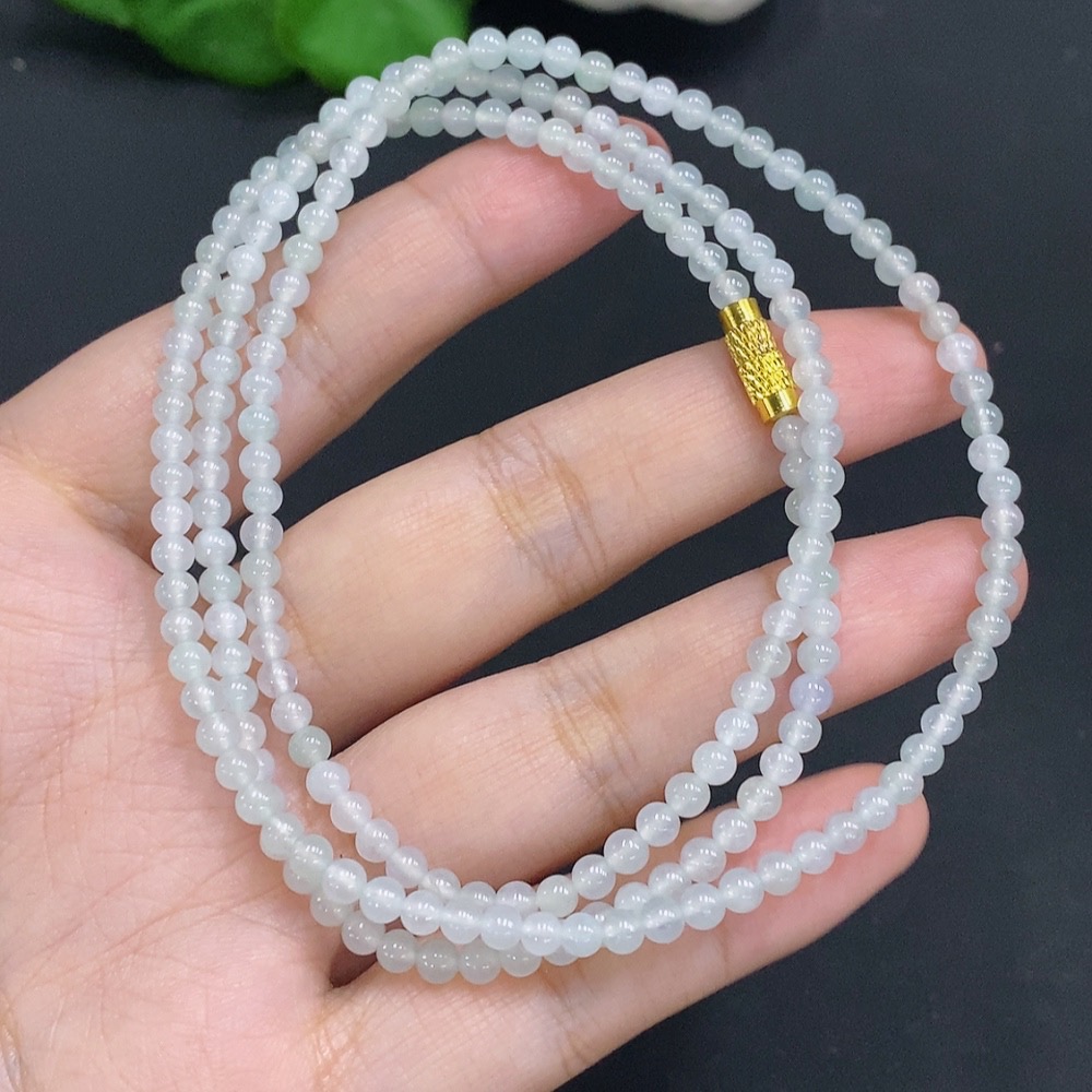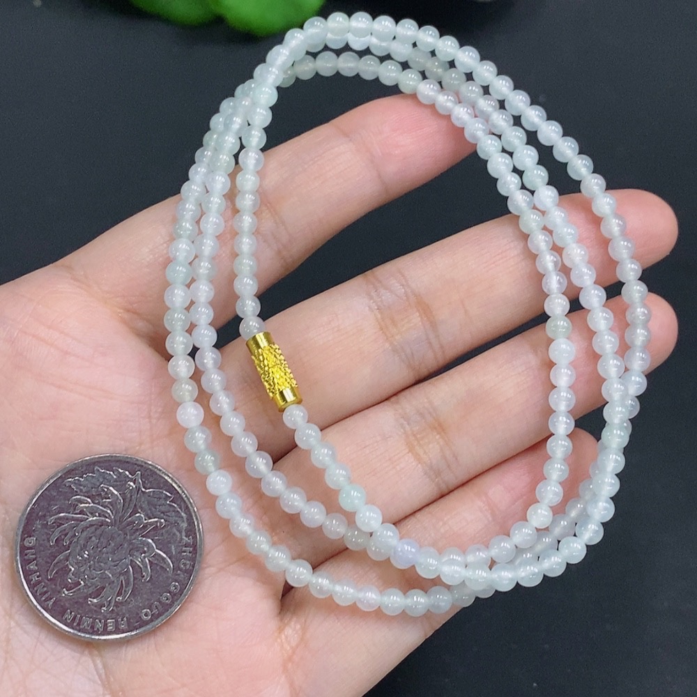 Jadeite Beaded Necklace Approx. 3.5mm Non-Gold Total Weight Approx. 15.8g