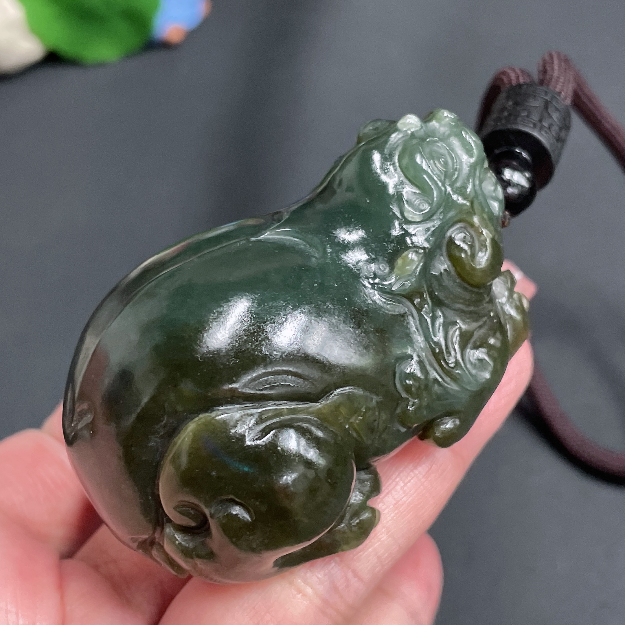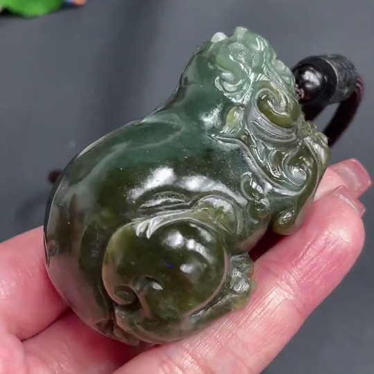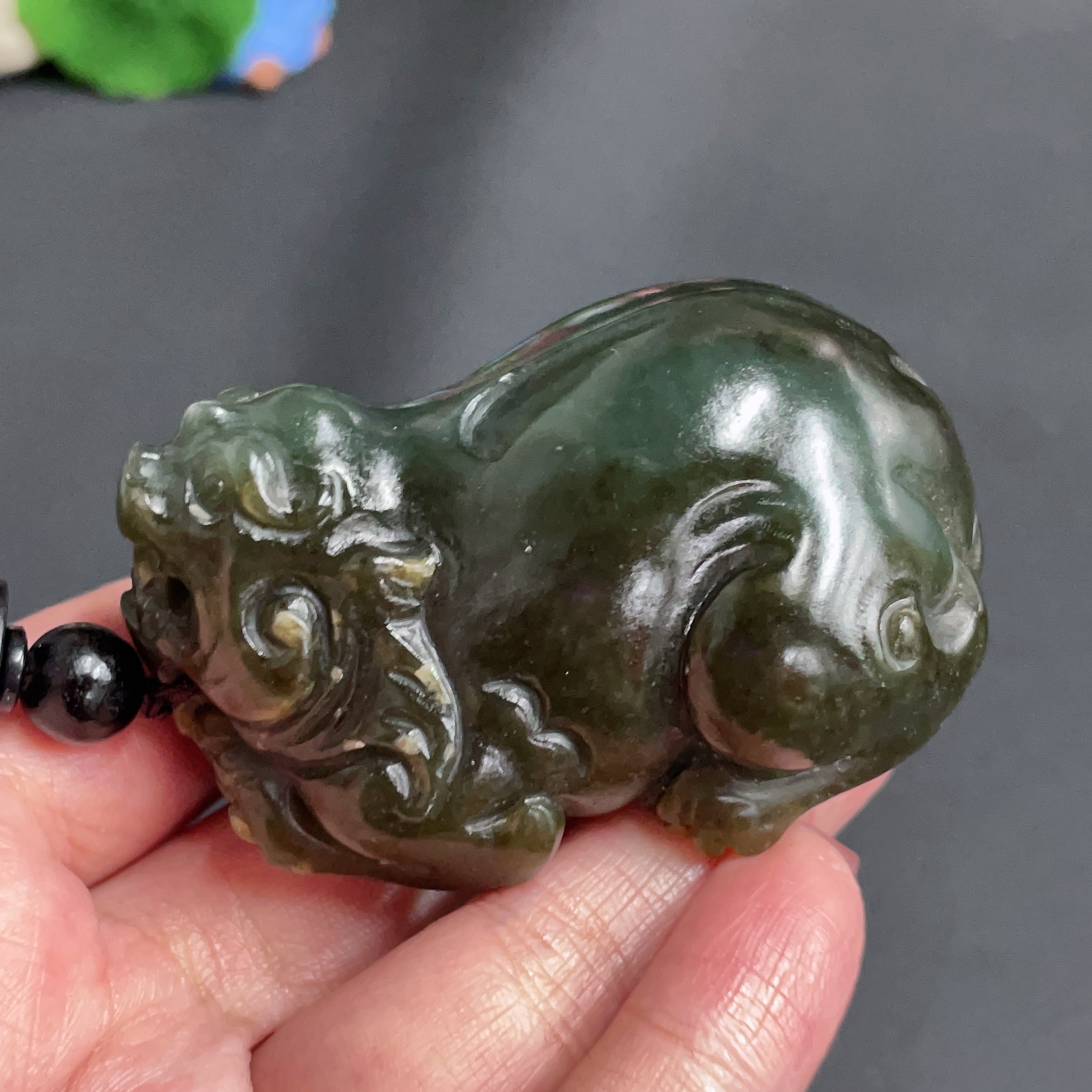 Hetian Jade Handheld Piece Auspicious Beast Gross Weight Approx. [with rope]142.8g