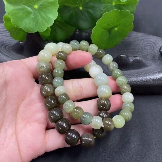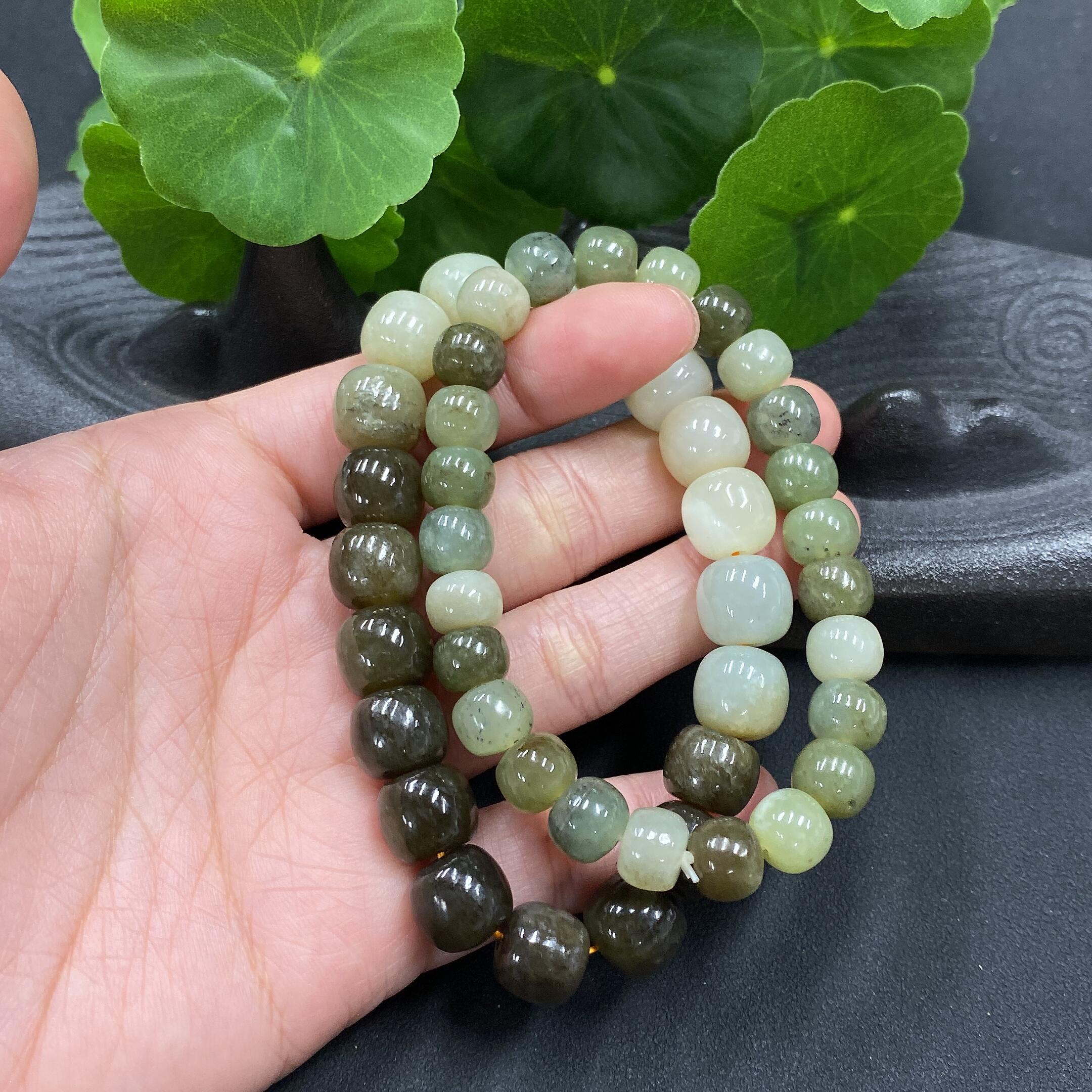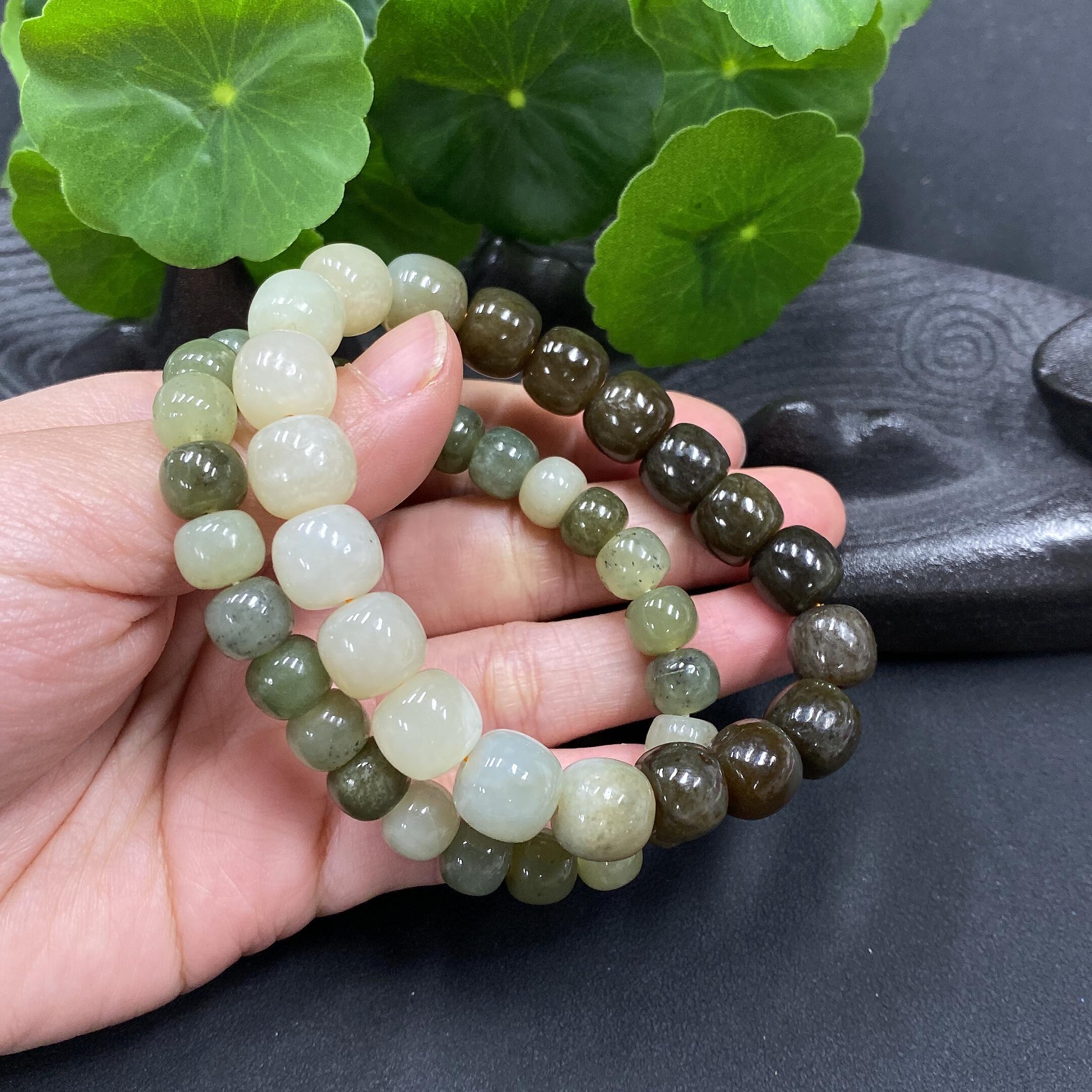 Hetian Jade Bracelet (Individual beads may have cracks, 8.2/10mm, Total weight 54.9g)