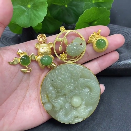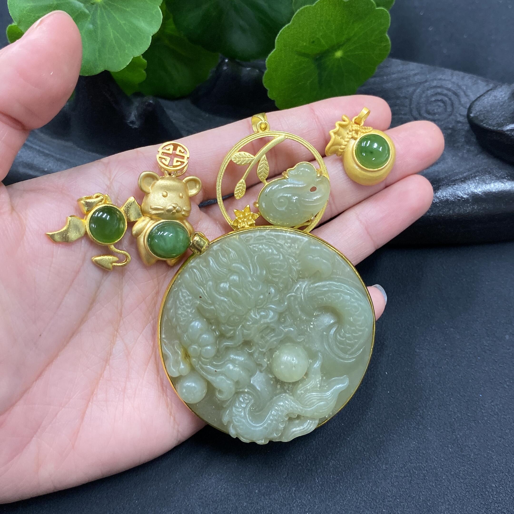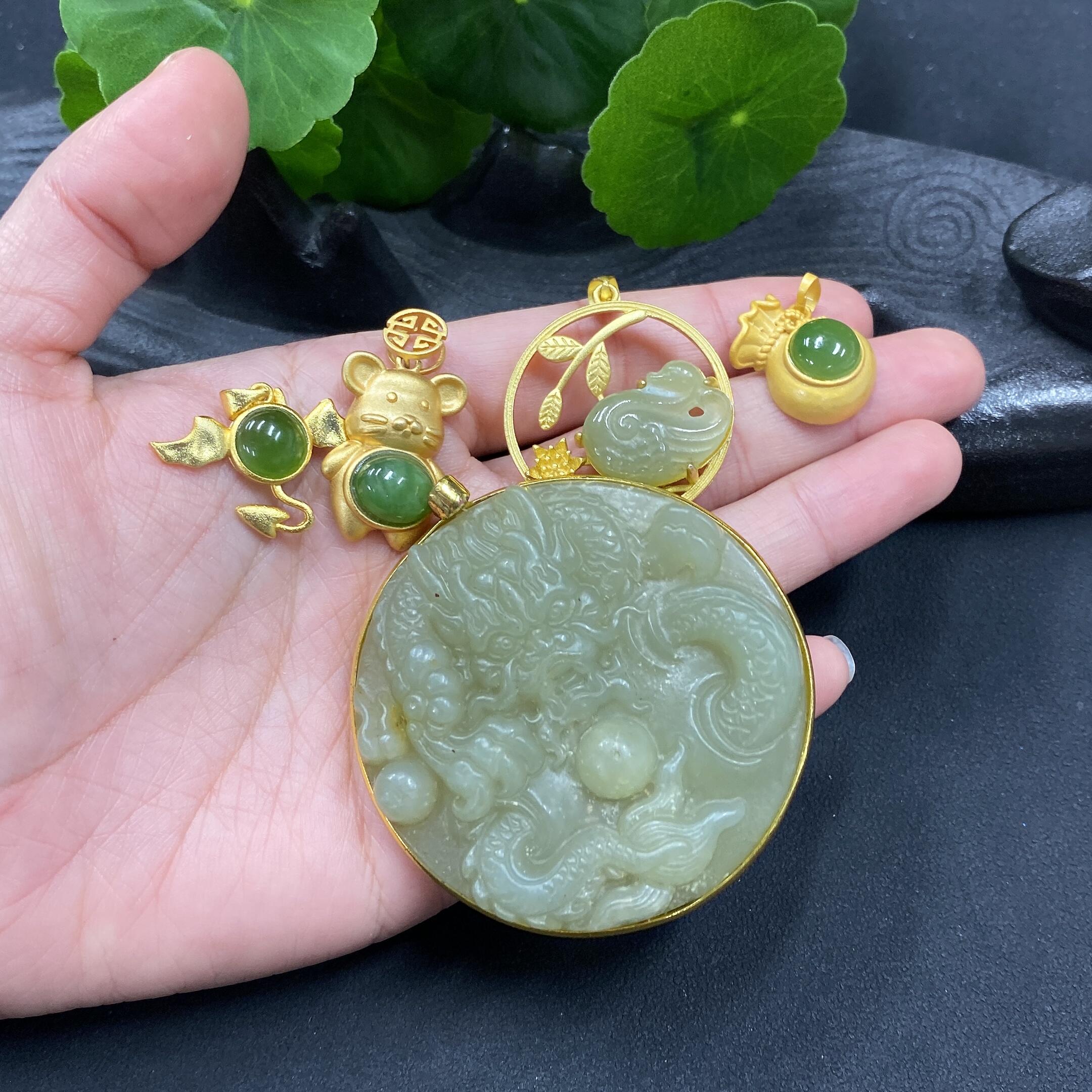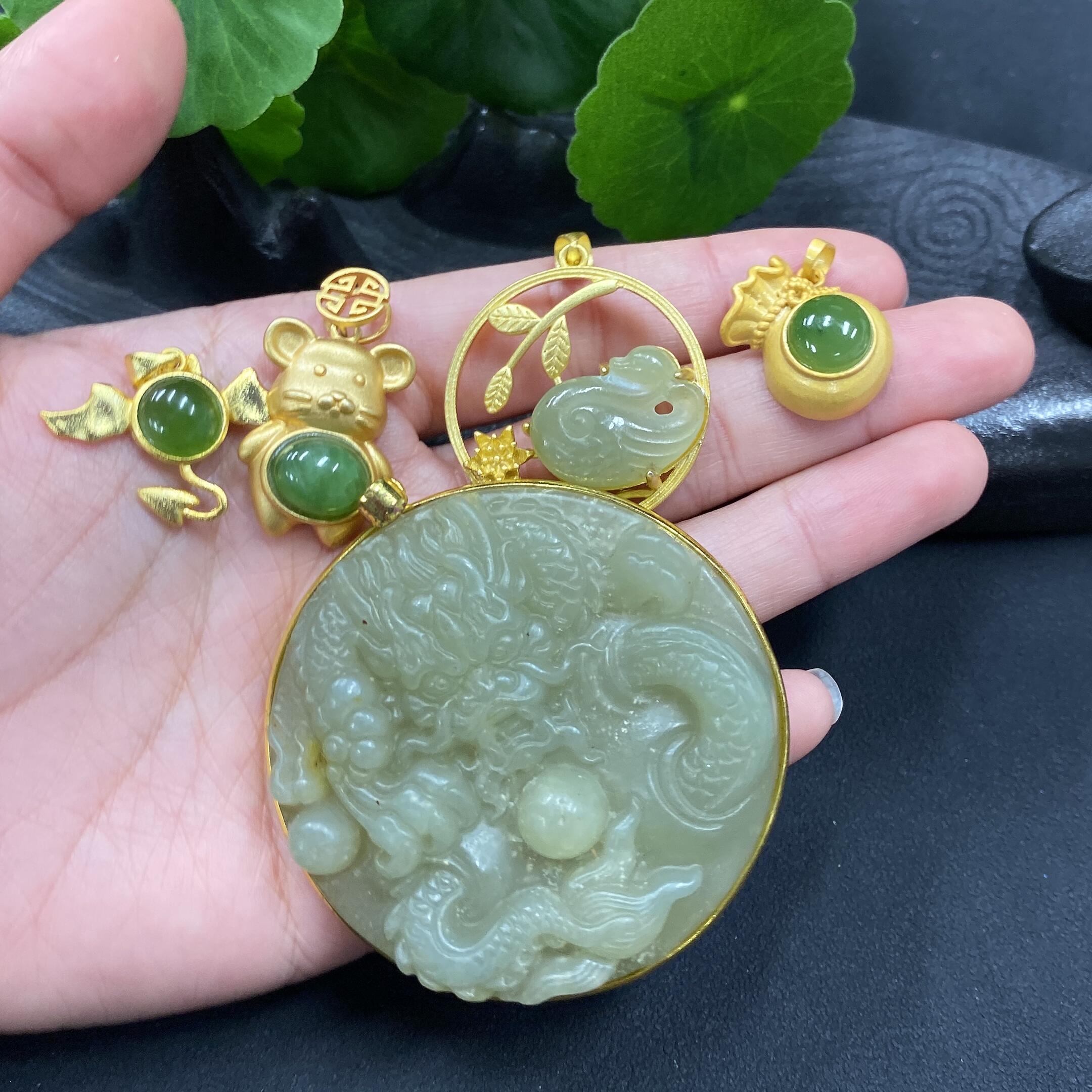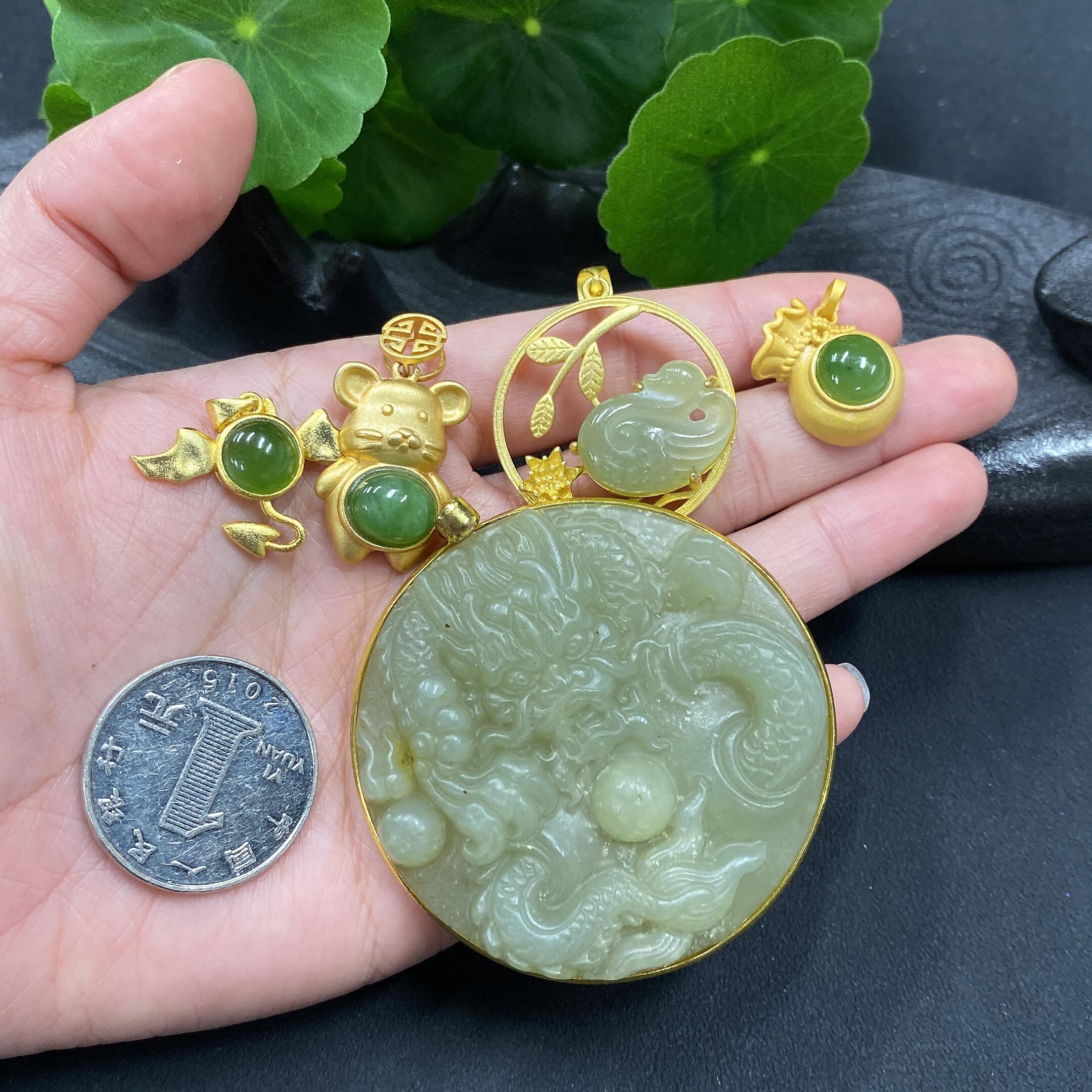 Hetian Jade Inlay, Individual with Veins/Cracks, Non-Gold Inlay, Total Weight 62g