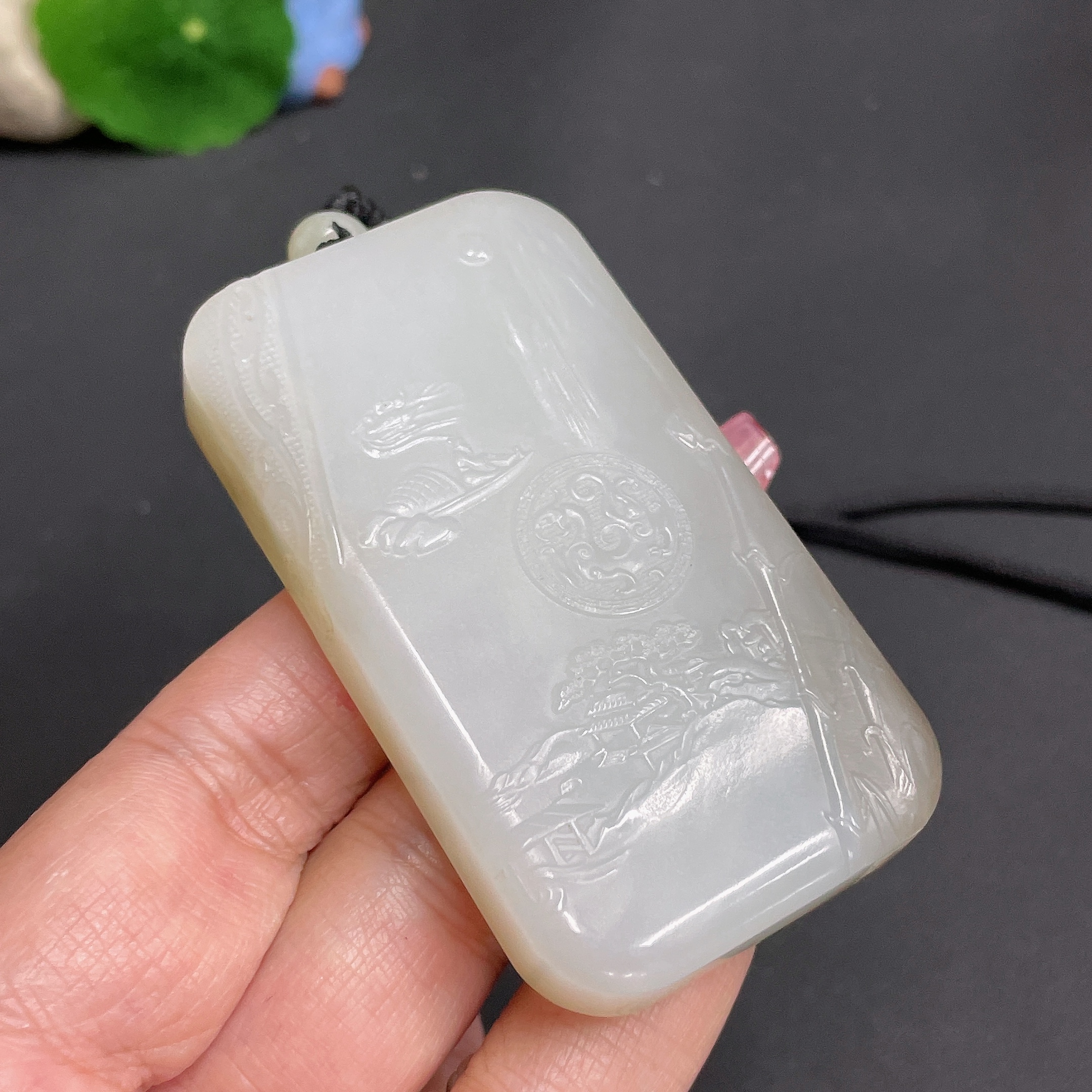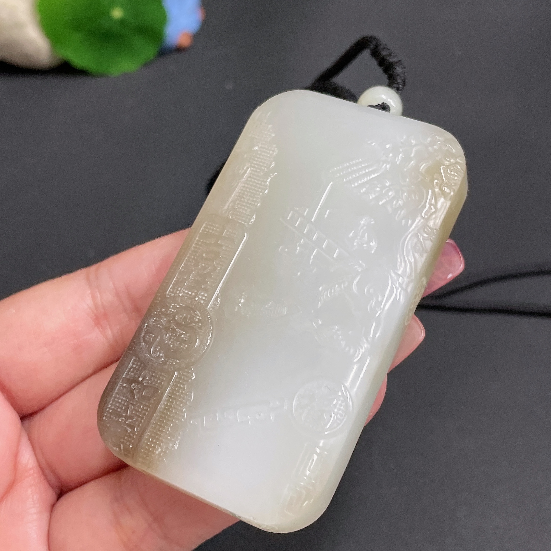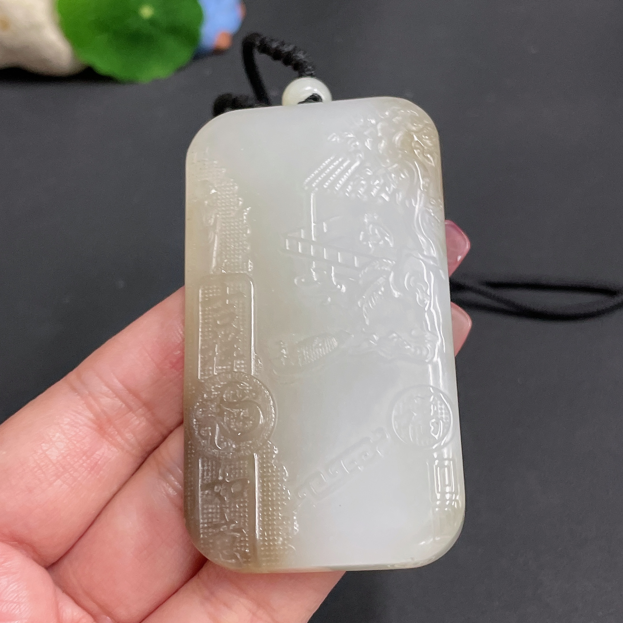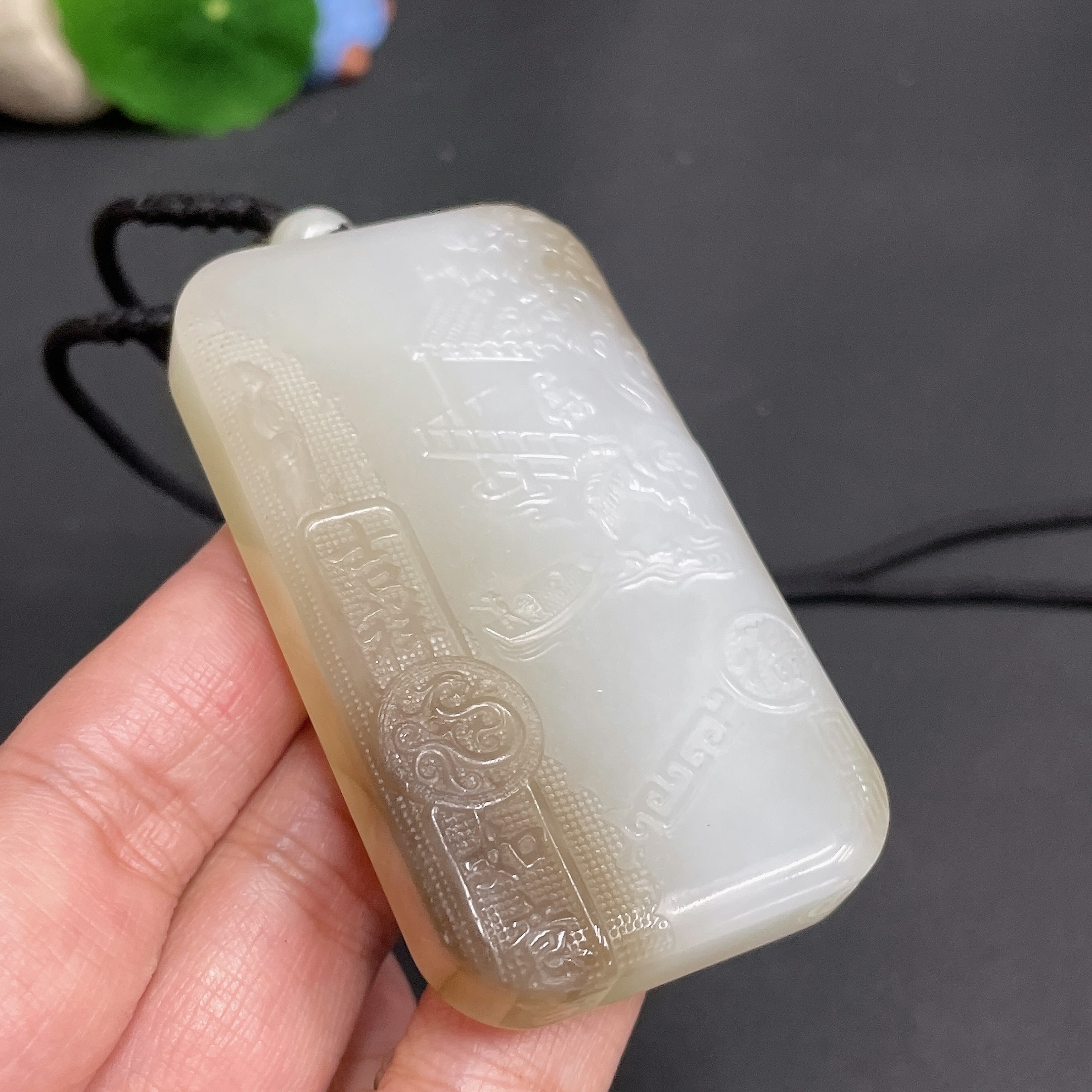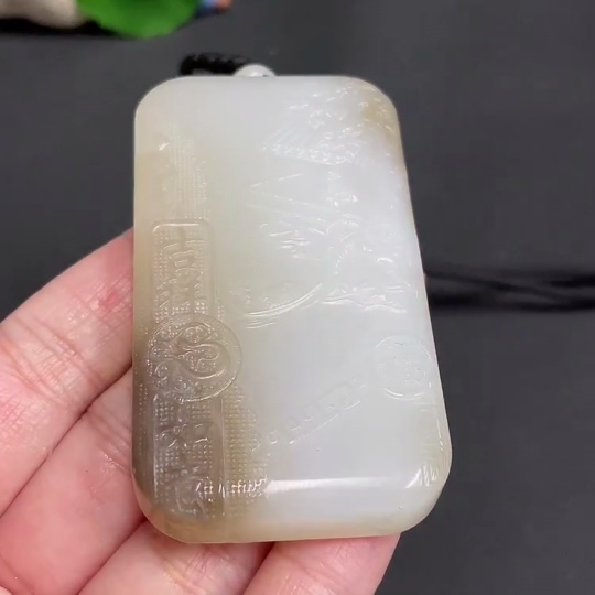 Hetian Jade Pendant - Landscape Plaque, Total Weight (Including Rope) Approx. 82.1g