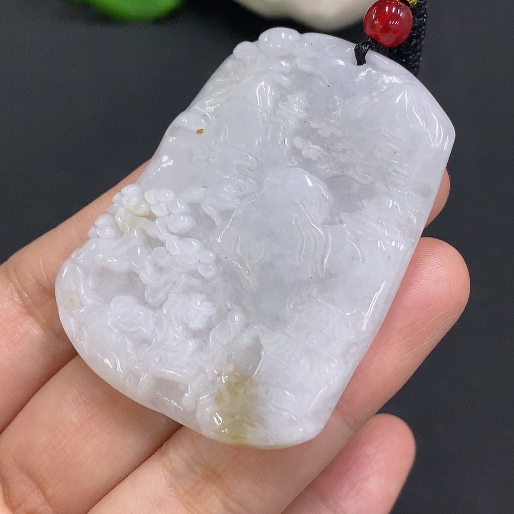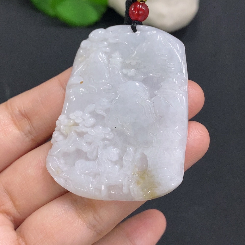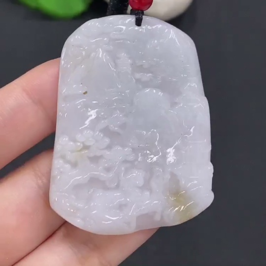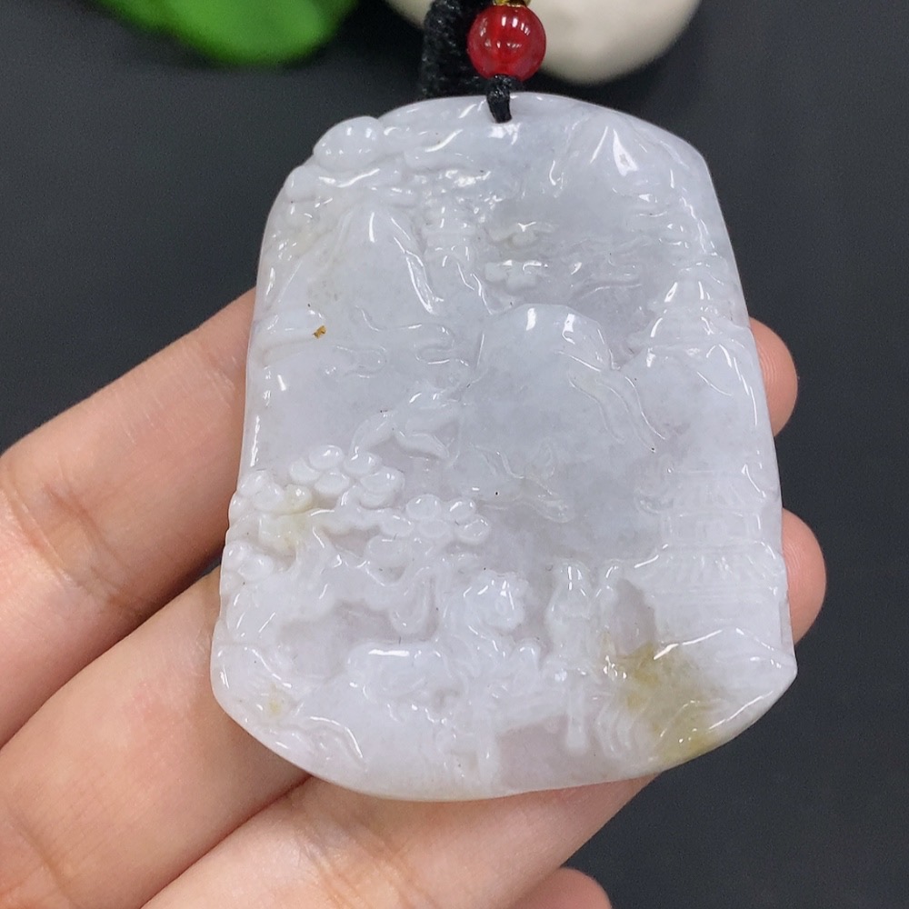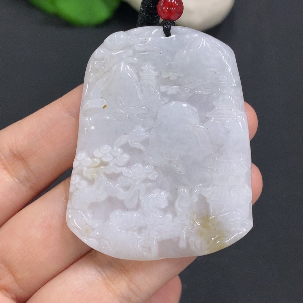 Jadeite Landscape Pendant with Cord, Total Weight Approximately 29.1g
