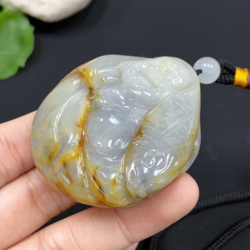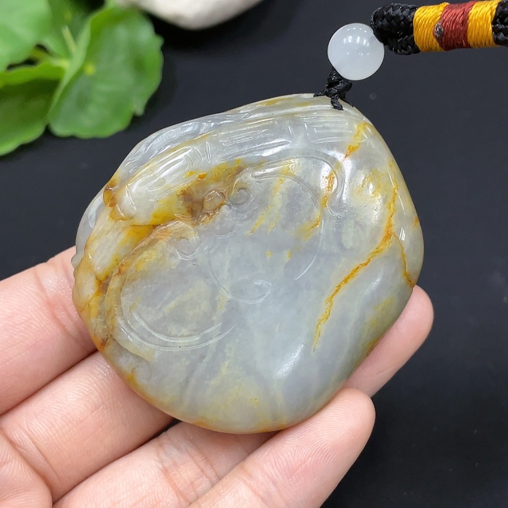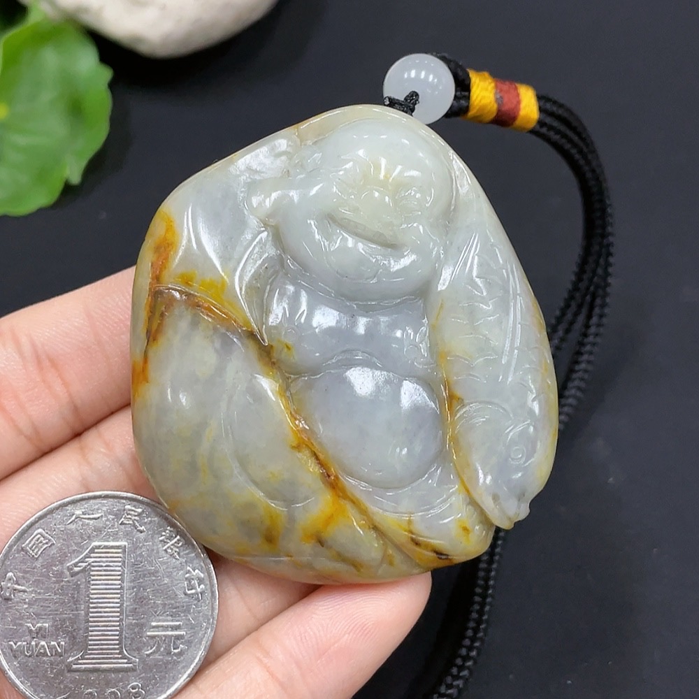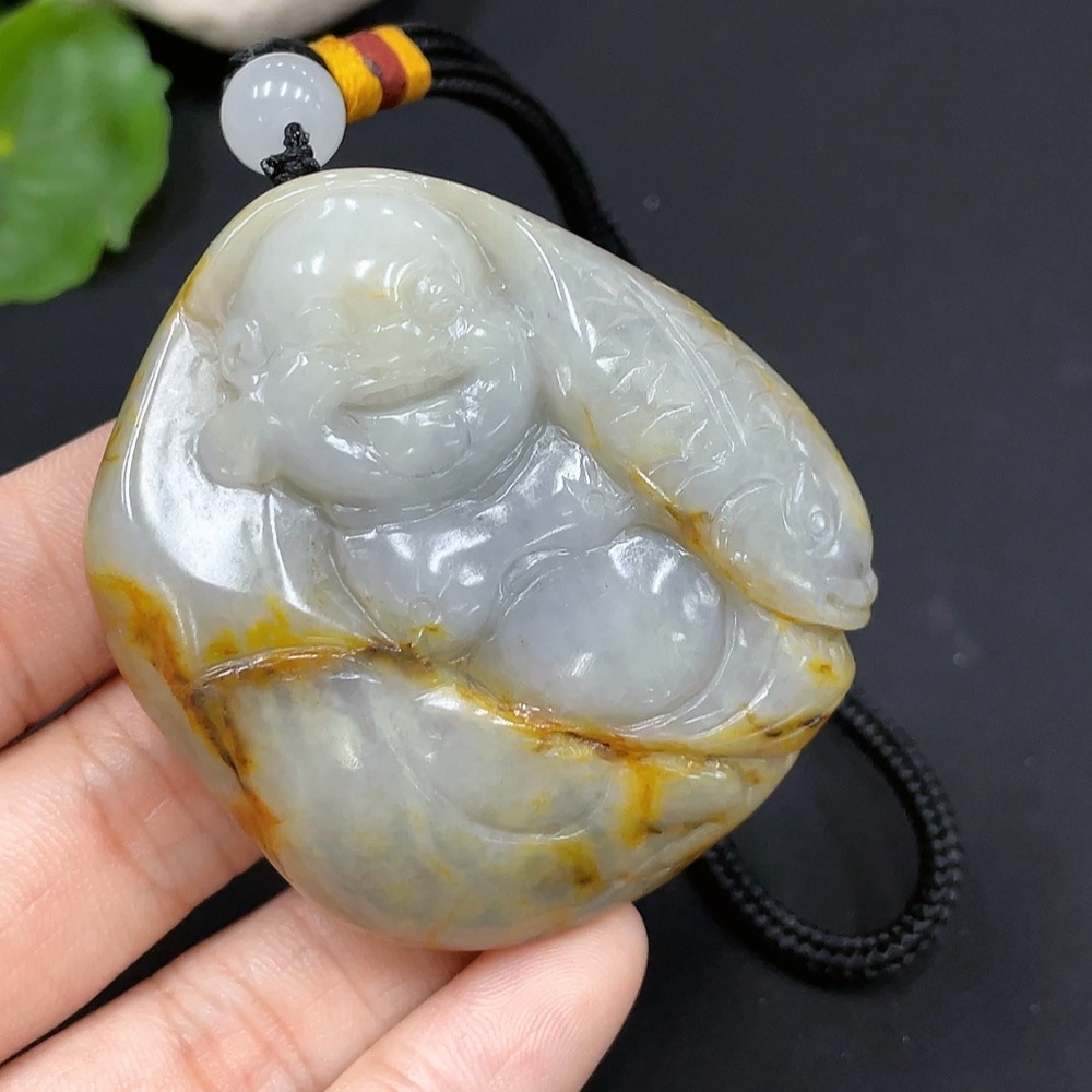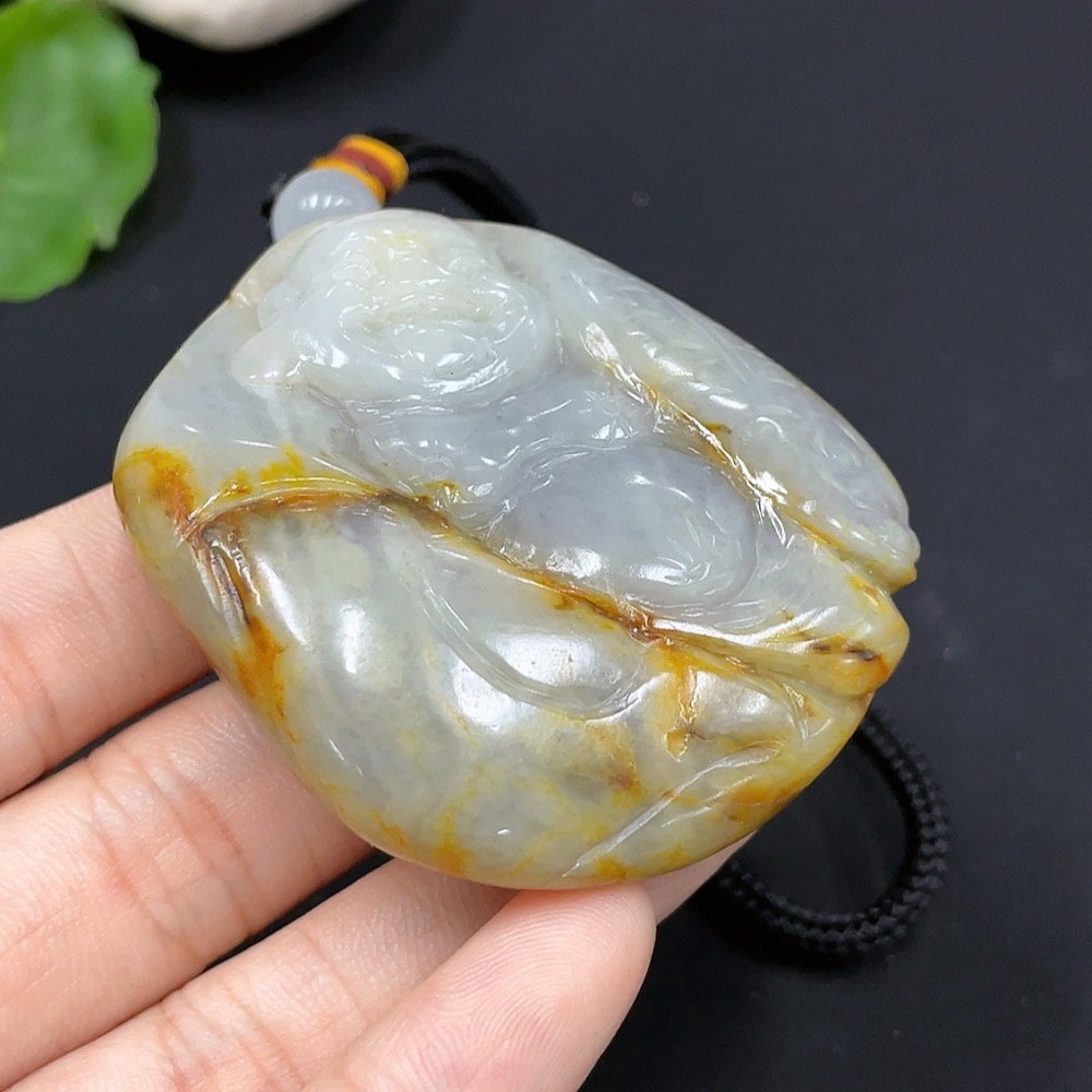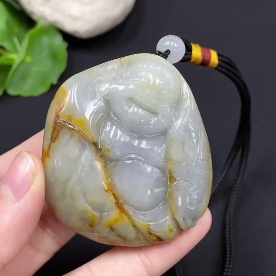 Hetian Jade Buddha Pendant, total weight approx. 74.63g (including rope), containing other mineral components, undetermined skin color origin