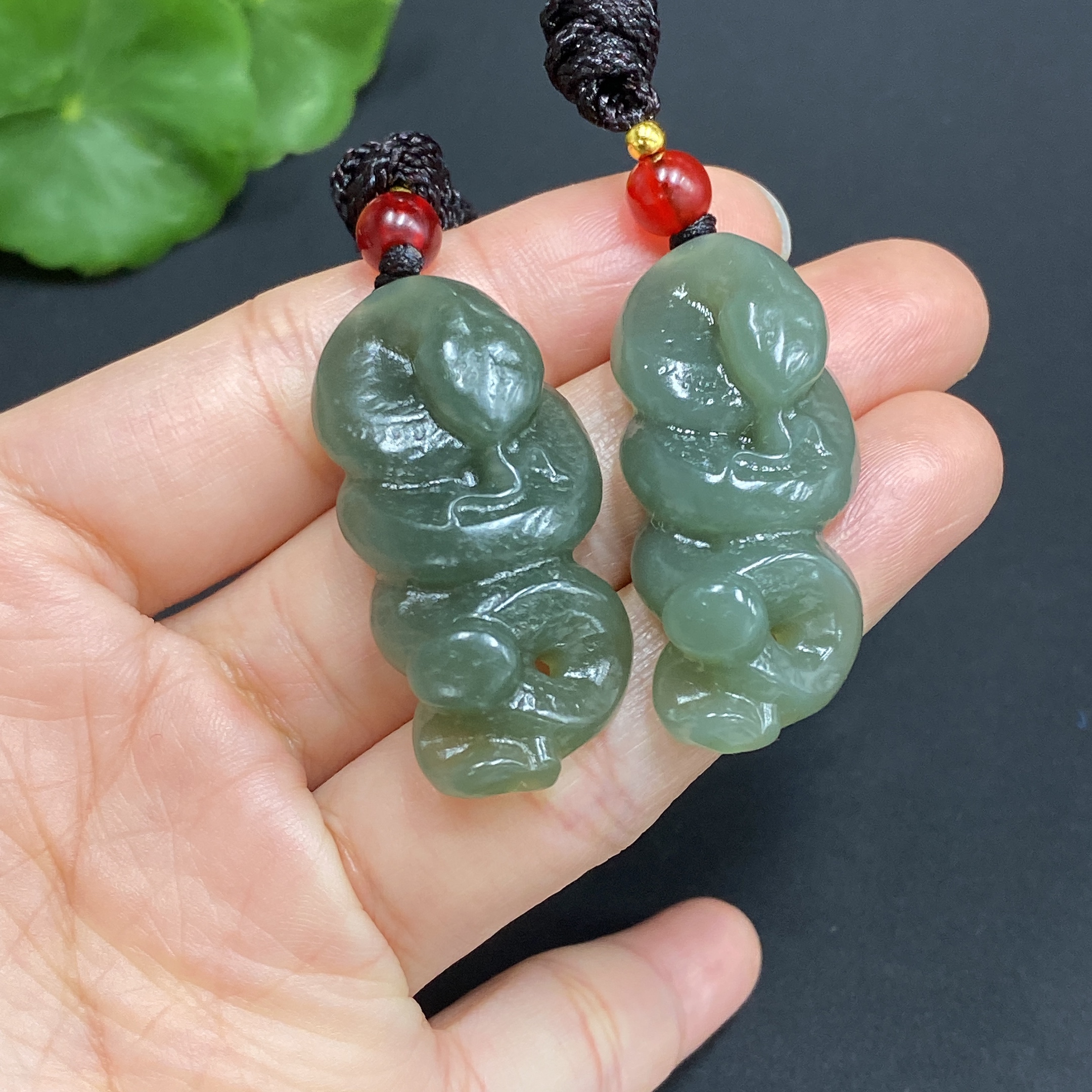 Hetian Jade Pendant Snake Total Weight Approx. (Including Rope) 17.9g