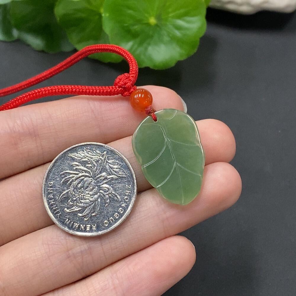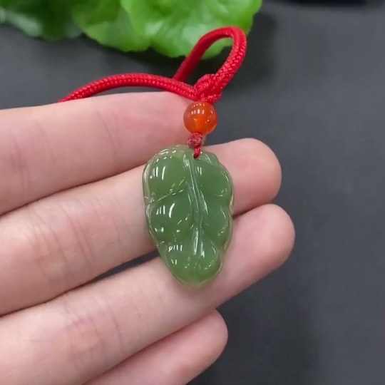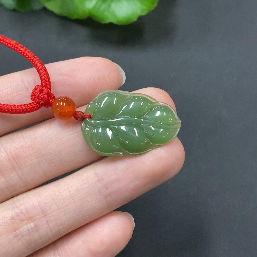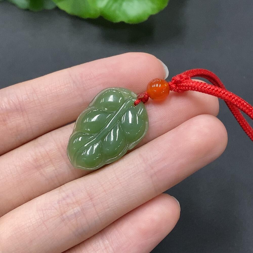 Hetian Jade Leaf Pendant with Grain, Approx. 3.24g