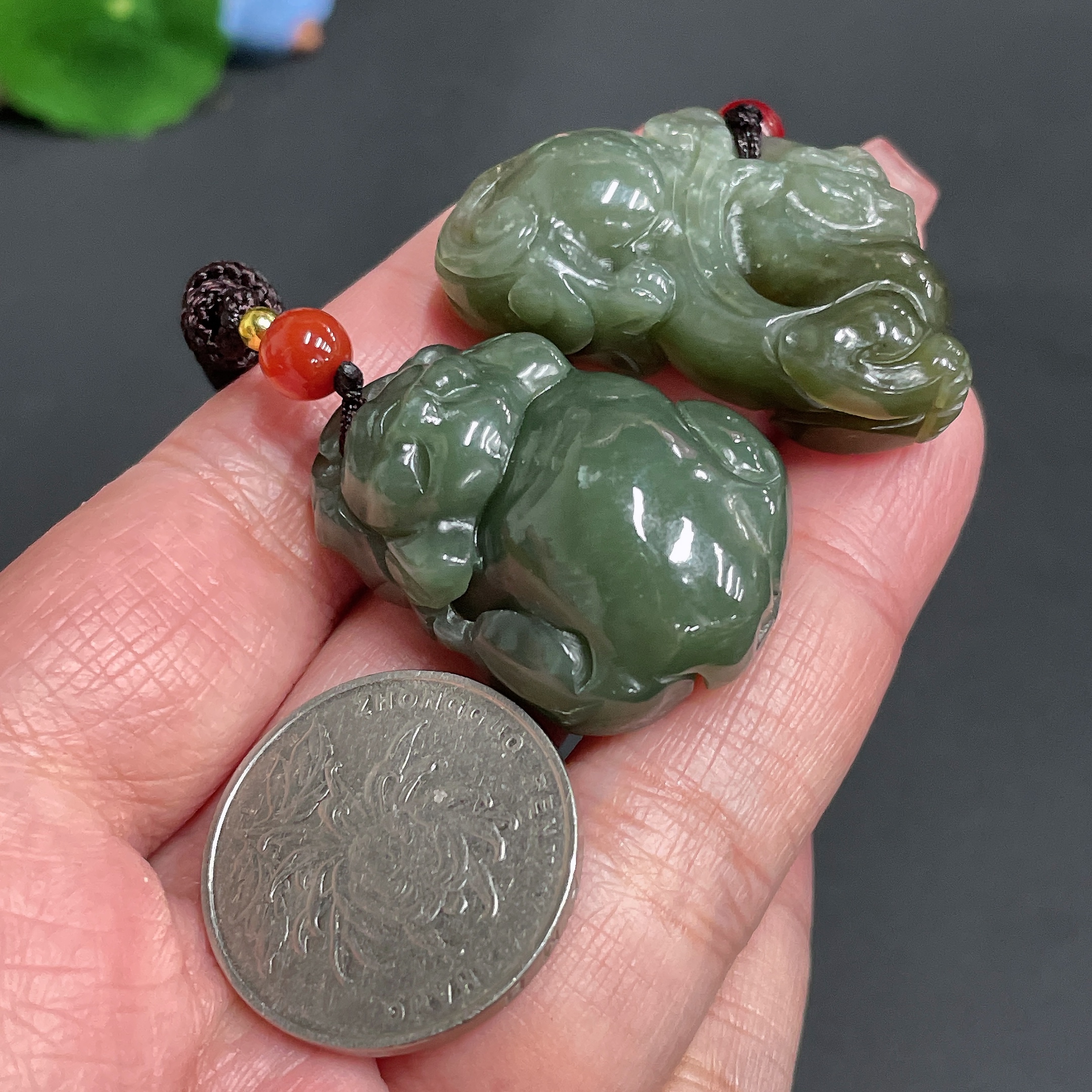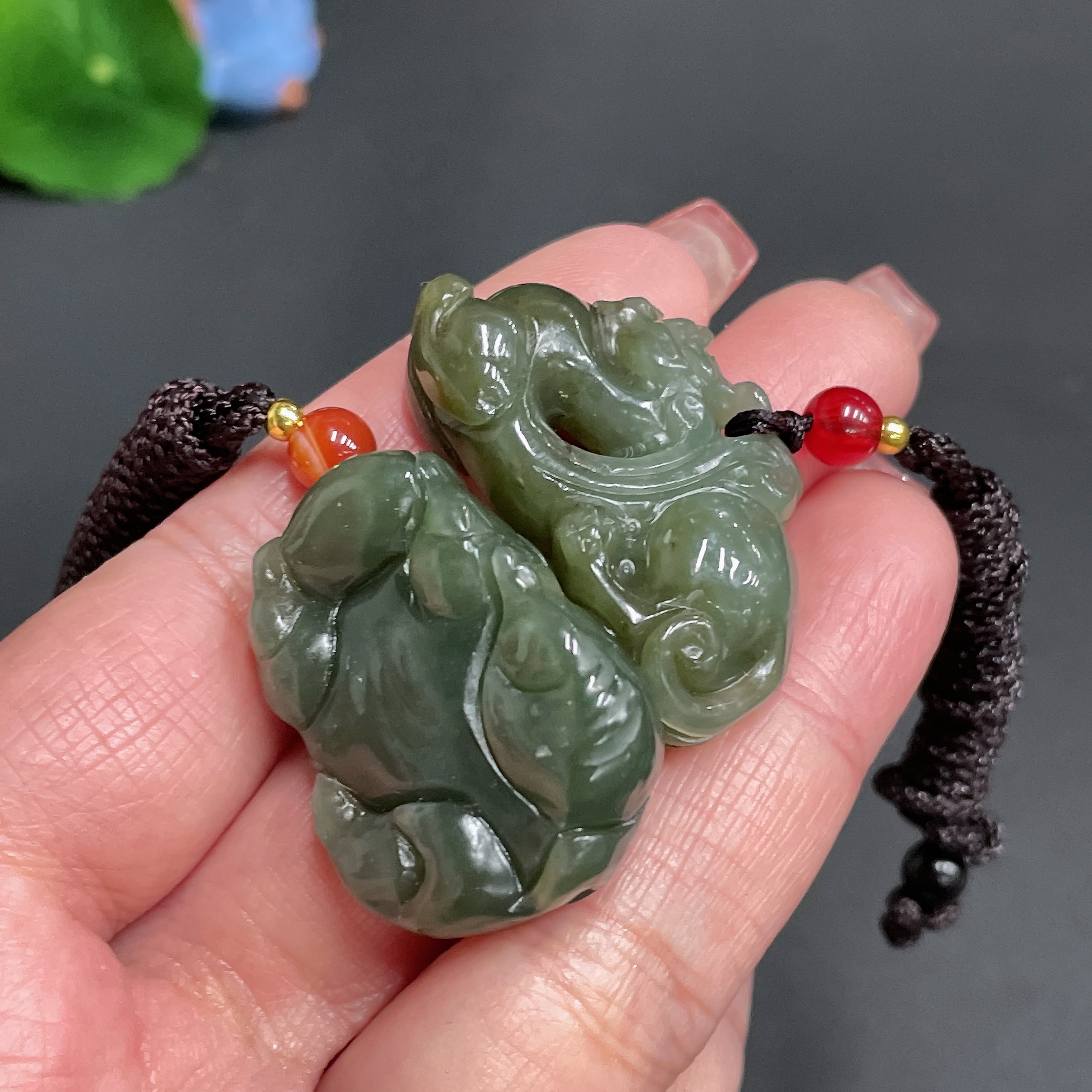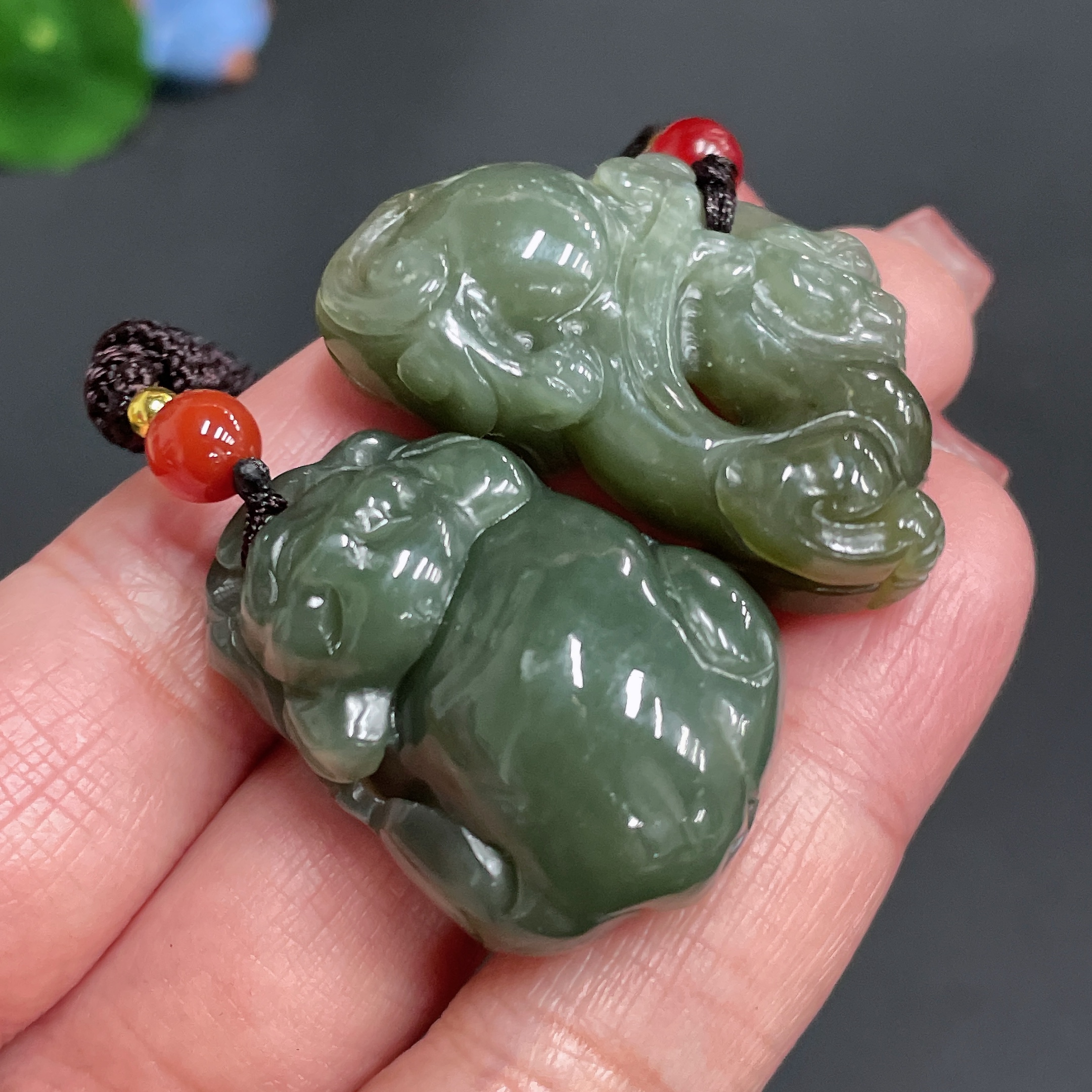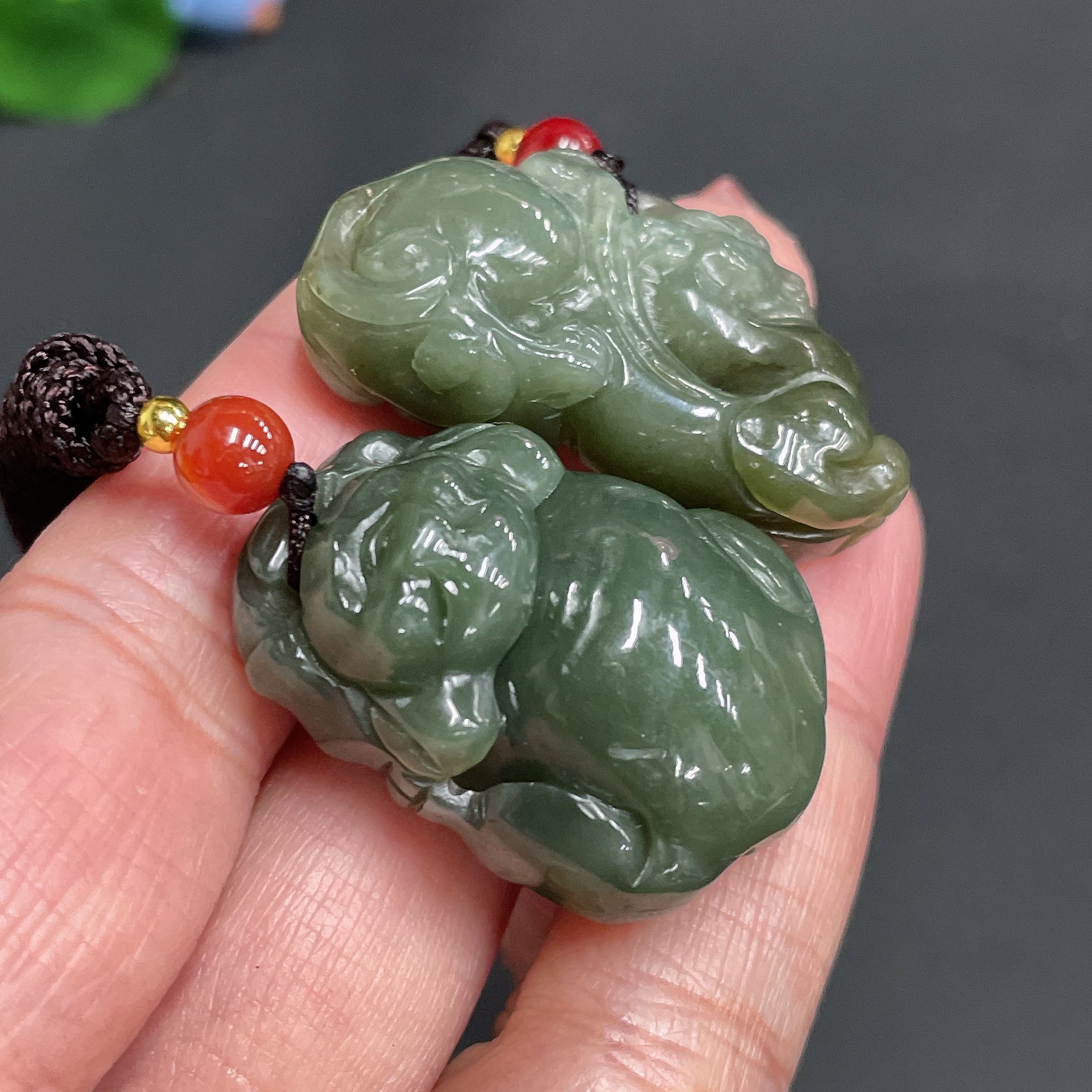 Hetian Jade Pendant Pig Antique Style Total Weight Approx. [with Rope]34.1g Matching Beads Not Hetian Jade
